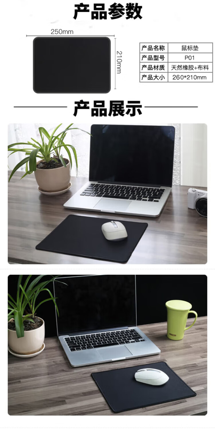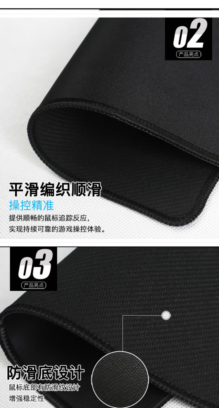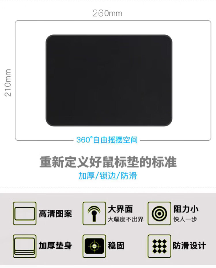 灵蛇(LINGSHE)鼠标垫 260*210*3mm家用办公游戏电脑桌垫 精密包边防滑 可水洗 黑色