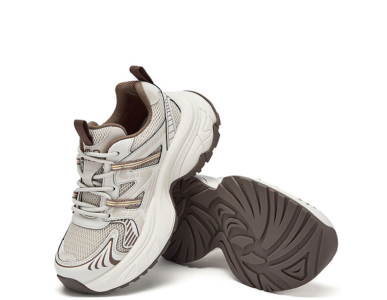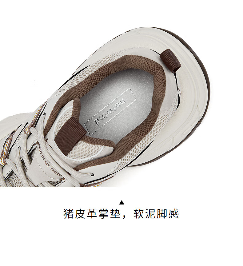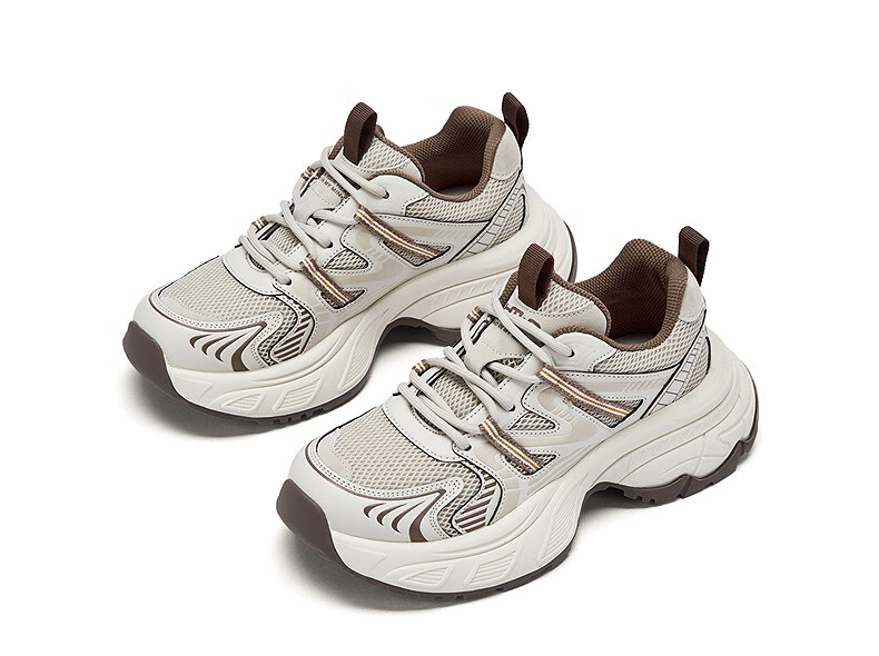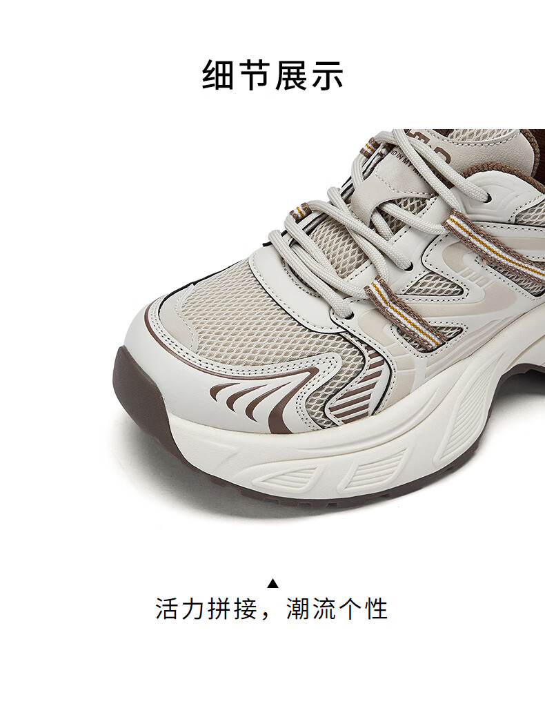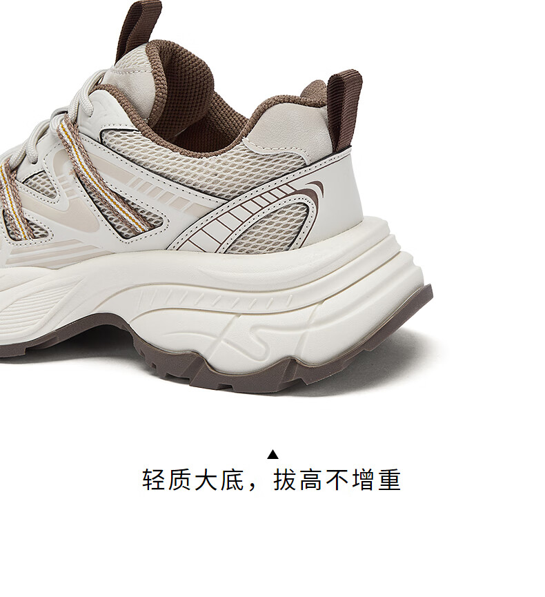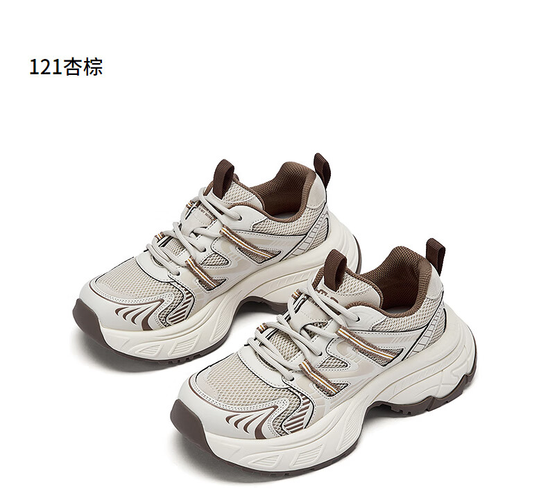 热风【商场同款】女鞋复古增高老爹鞋2025年秋新款女士时尚轻质运动鞋 121杏棕 37