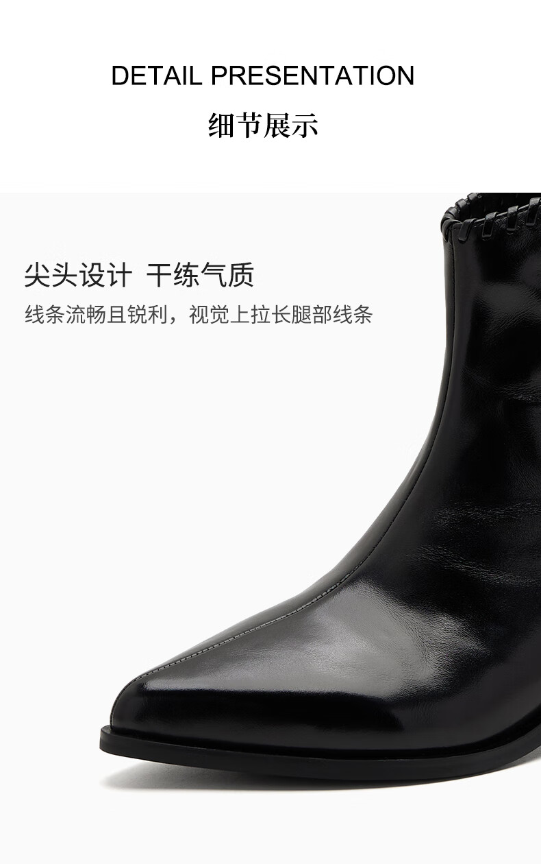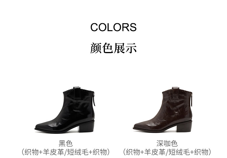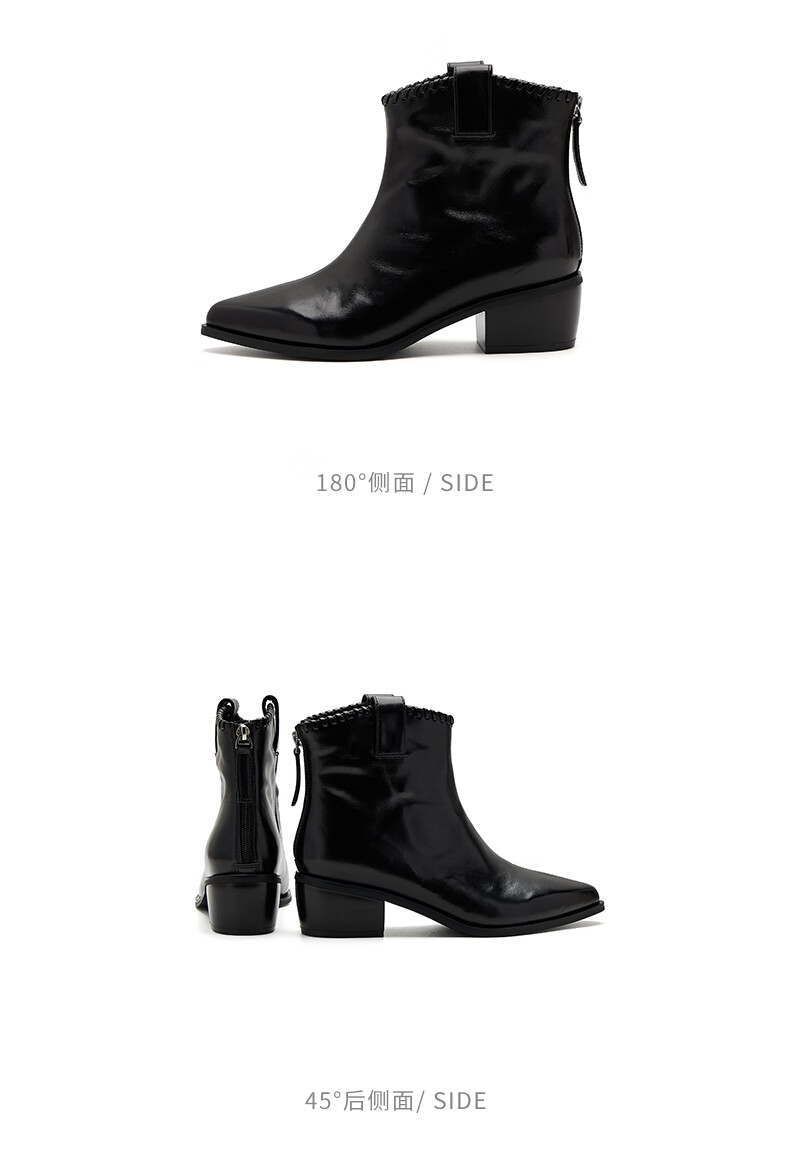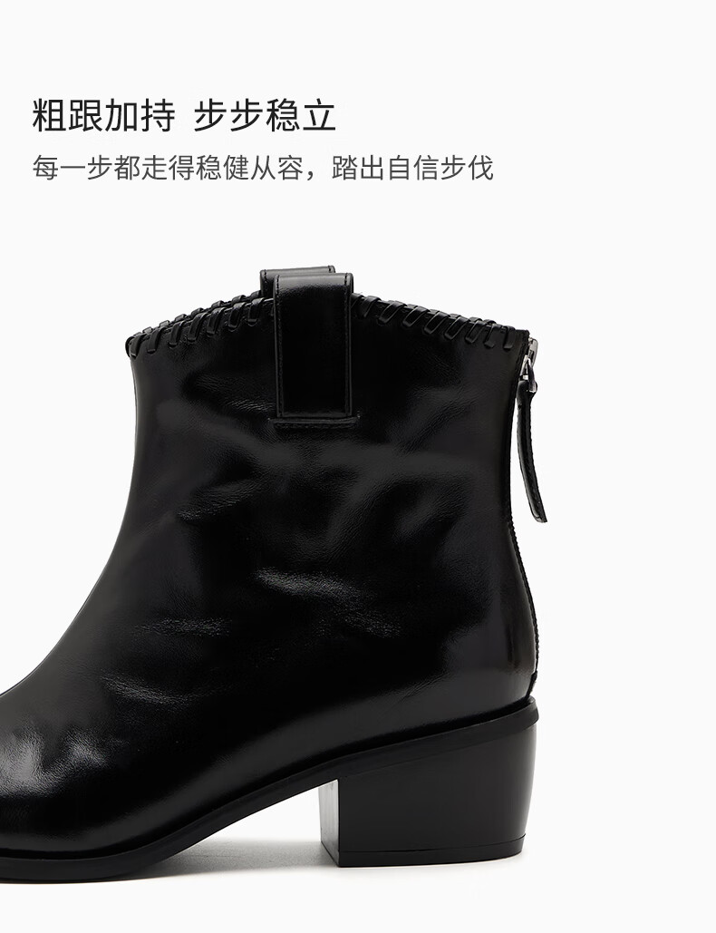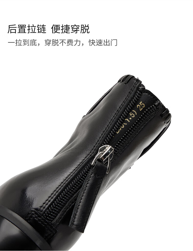 哈森(Harson)时装靴女2025冬季新款法式复古潮流街头时尚尖头粗跟短靴HA253415 黑色 牛皮革 34