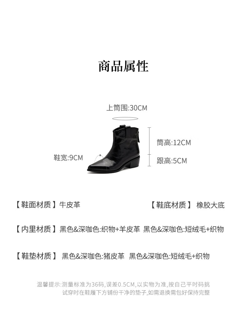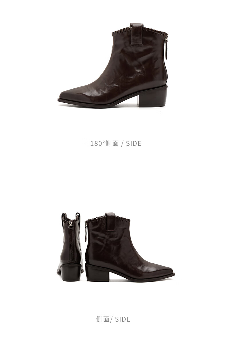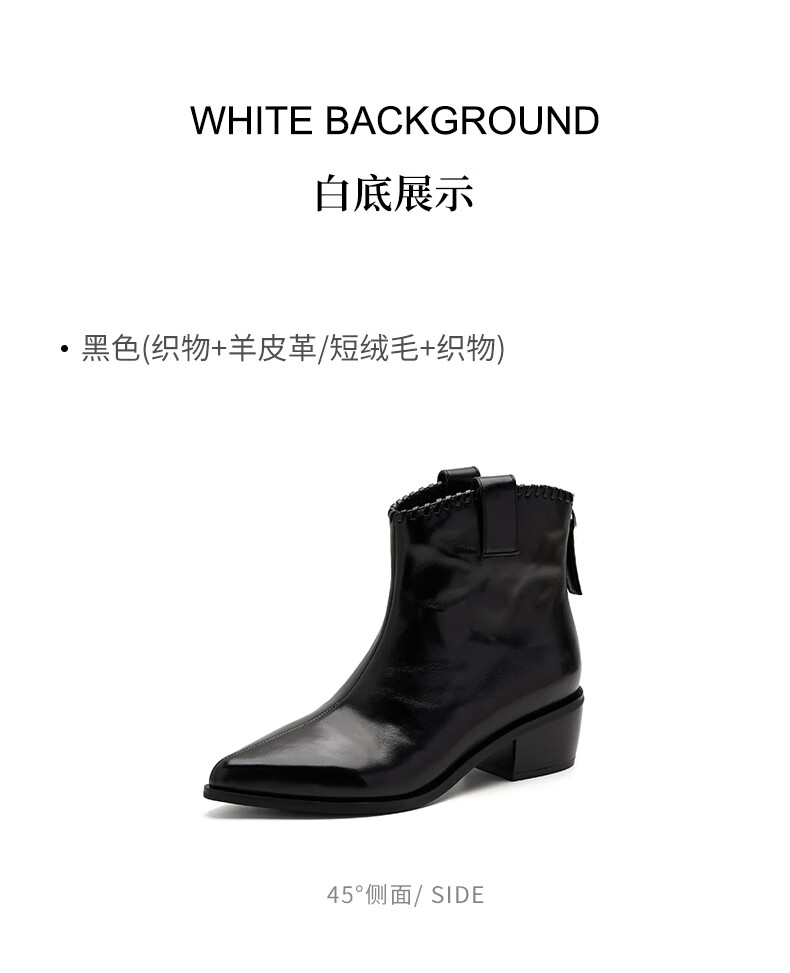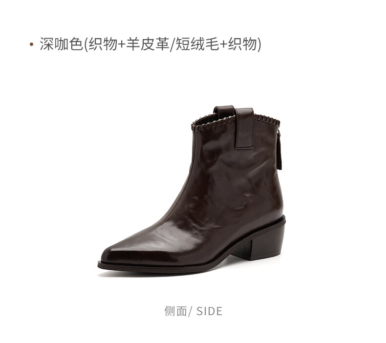 哈森(Harson)时装靴女2025冬季新款法式复古潮流街头时尚尖头粗跟短靴HA253415 黑色 牛皮革 34