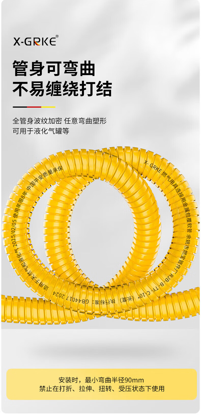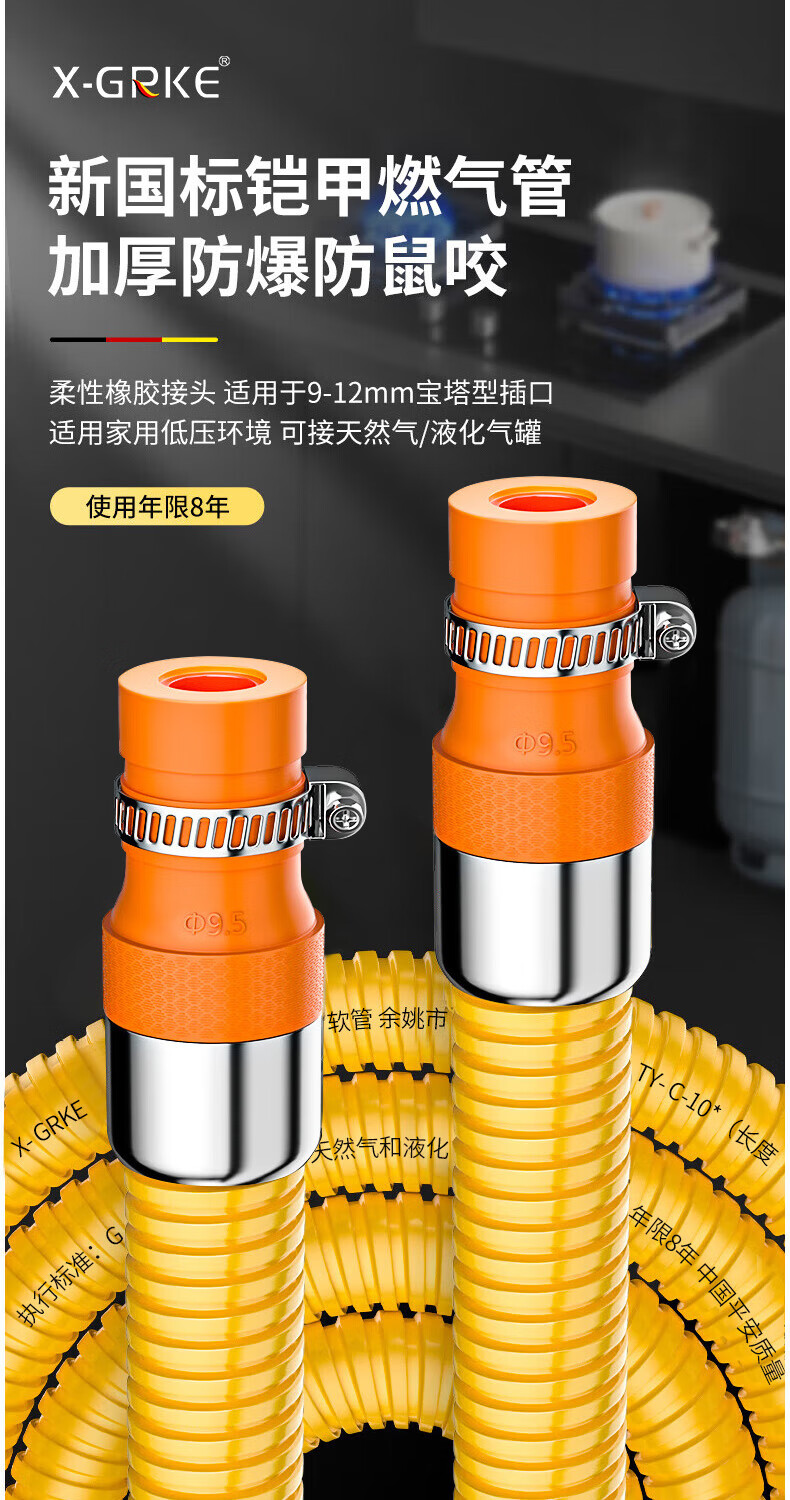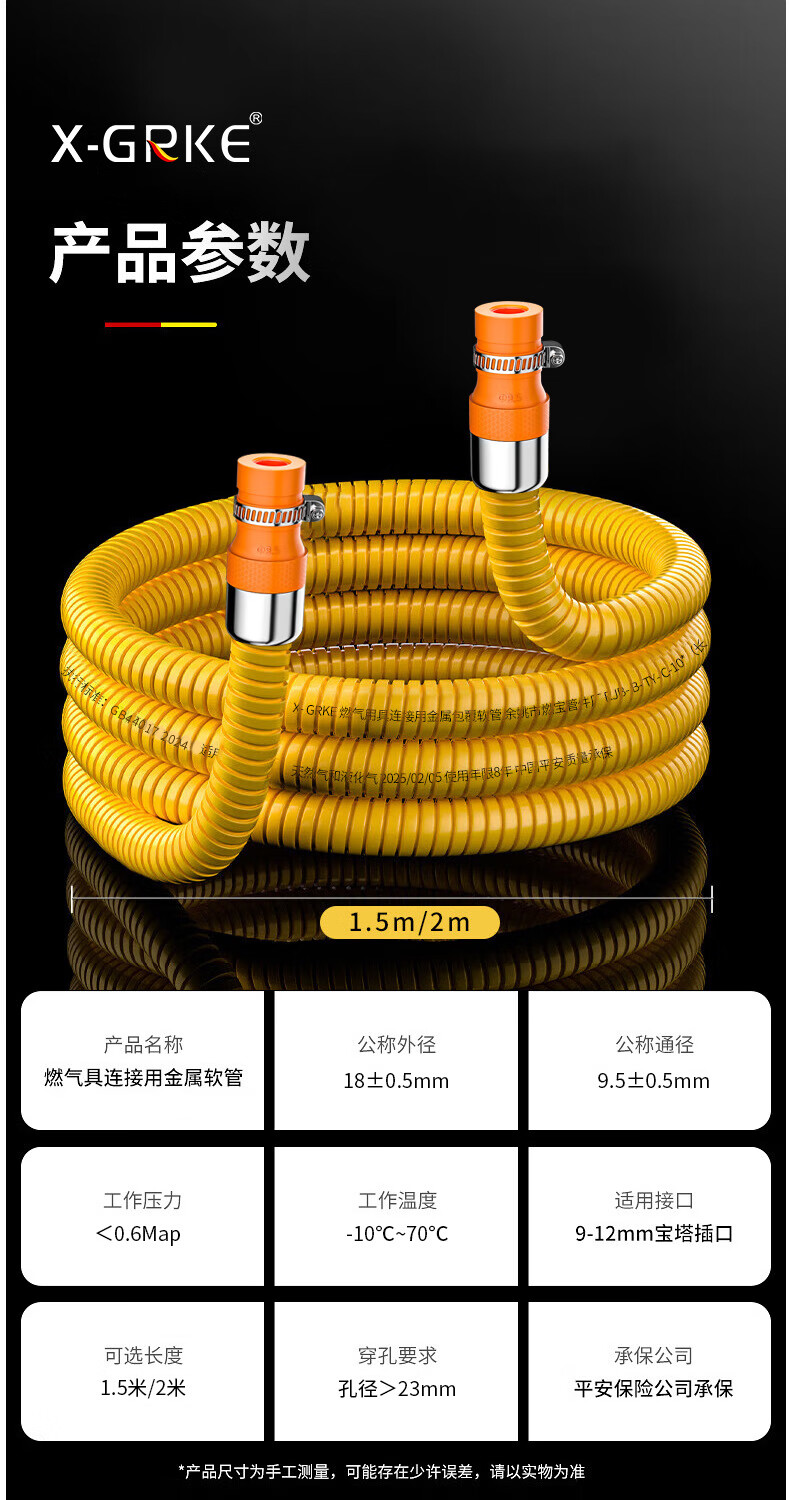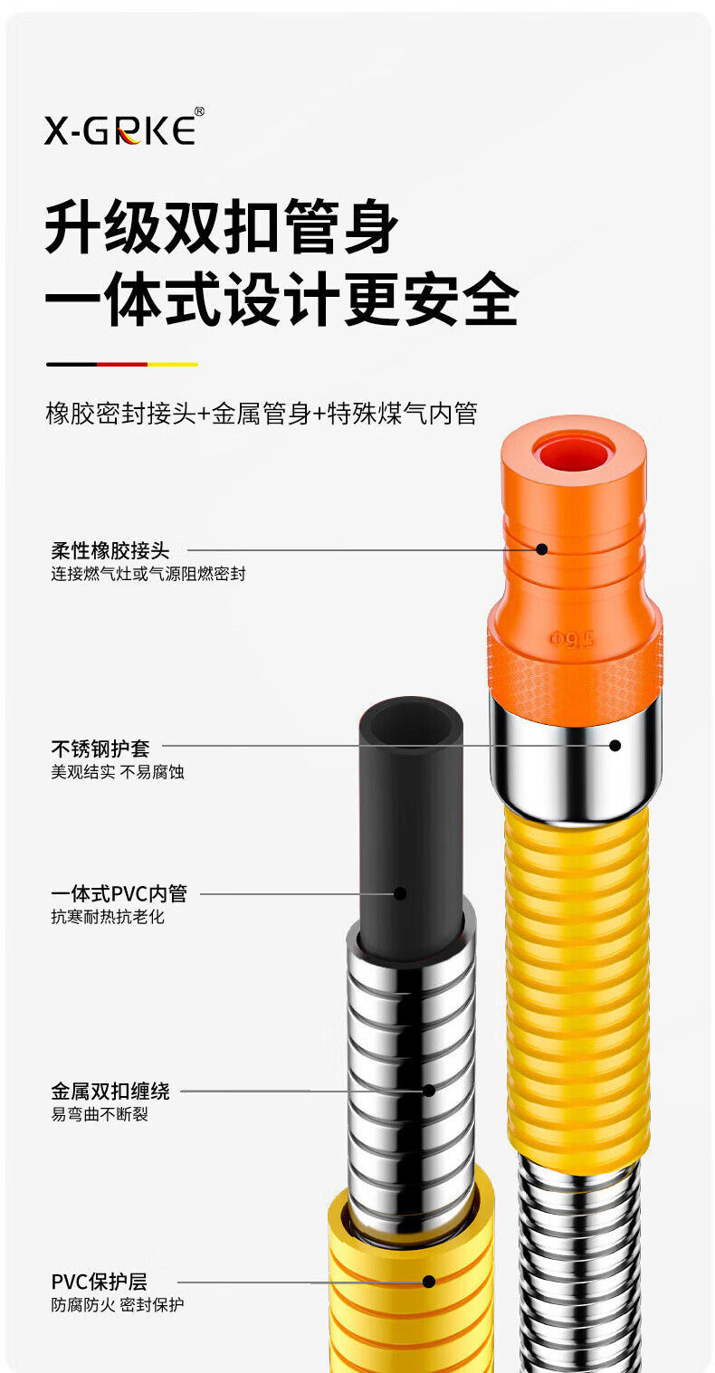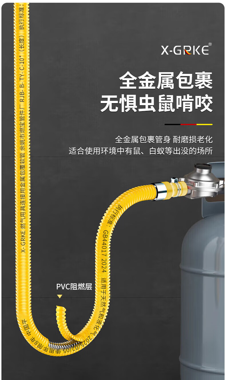 X-GRKE【德国】燃气管煤气管天然气液化气专用新国标金属防爆家用波纹管 1.5米丨新国标煤/燃气管 质保10年丨全新升级加厚防爆
