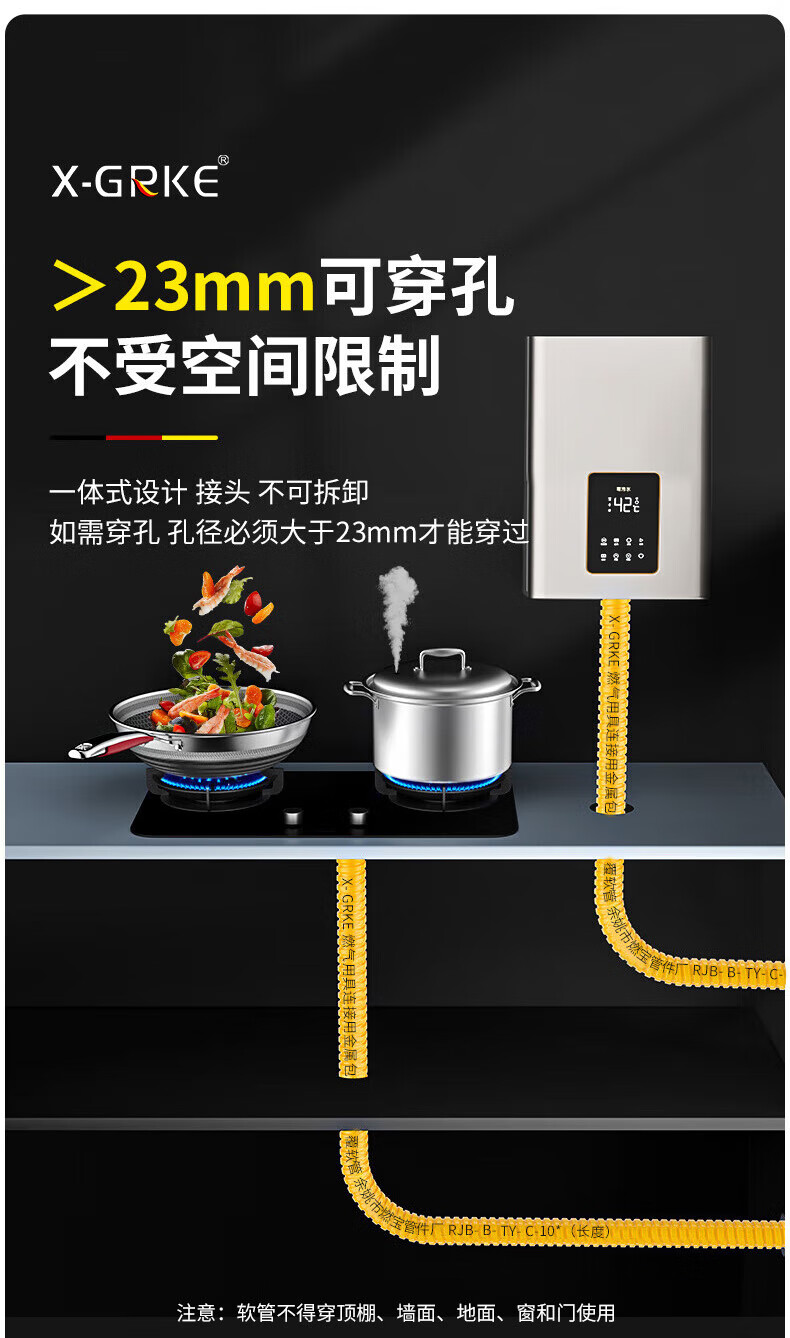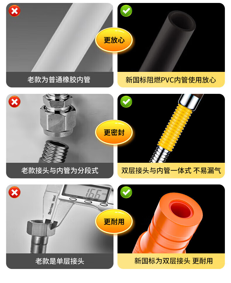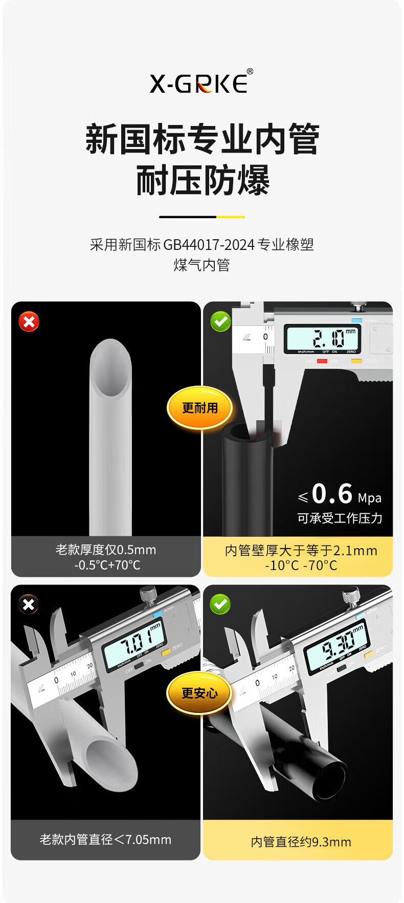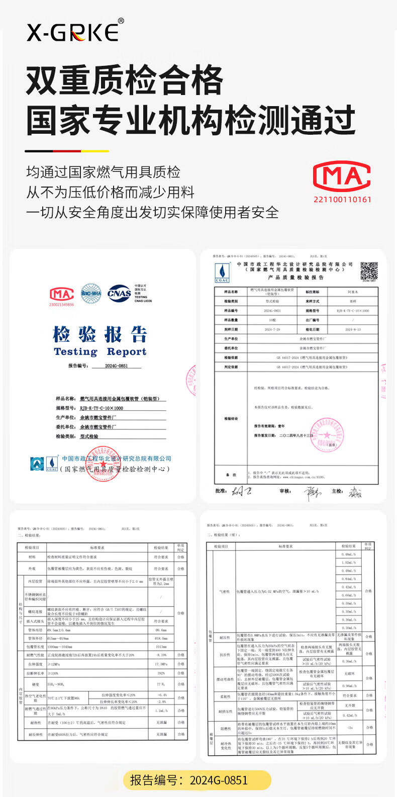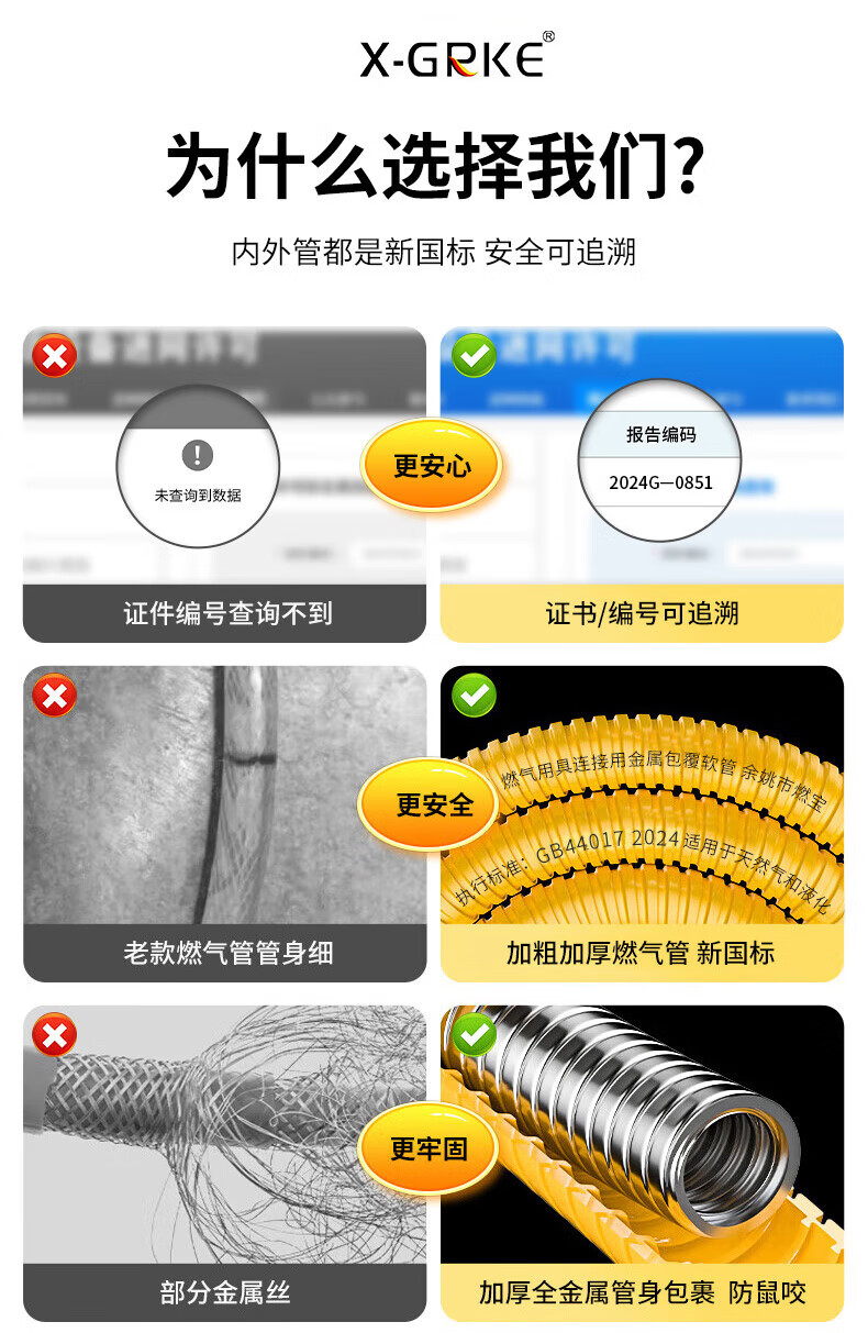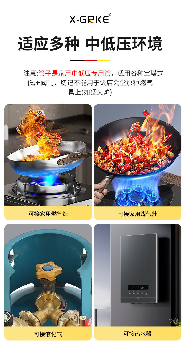 X-GRKE【德国】燃气管煤气管天然气液化气专用新国标金属防爆家用波纹管 1.5米丨新国标煤/燃气管 质保10年丨全新升级加厚防爆