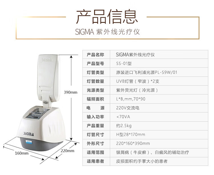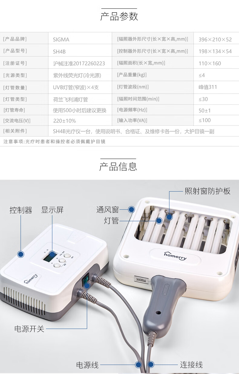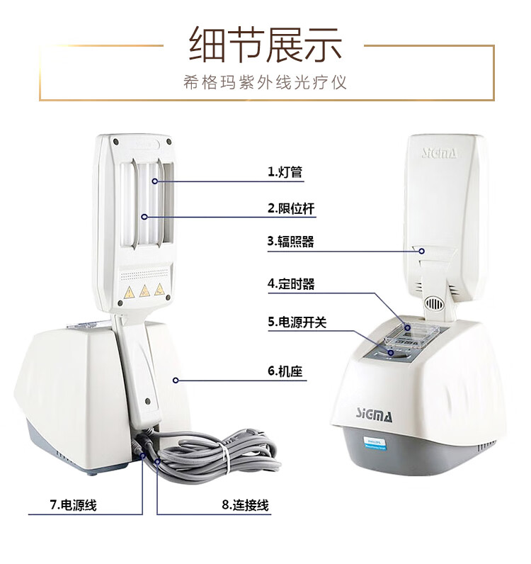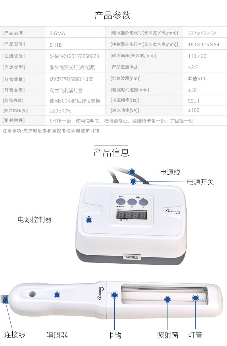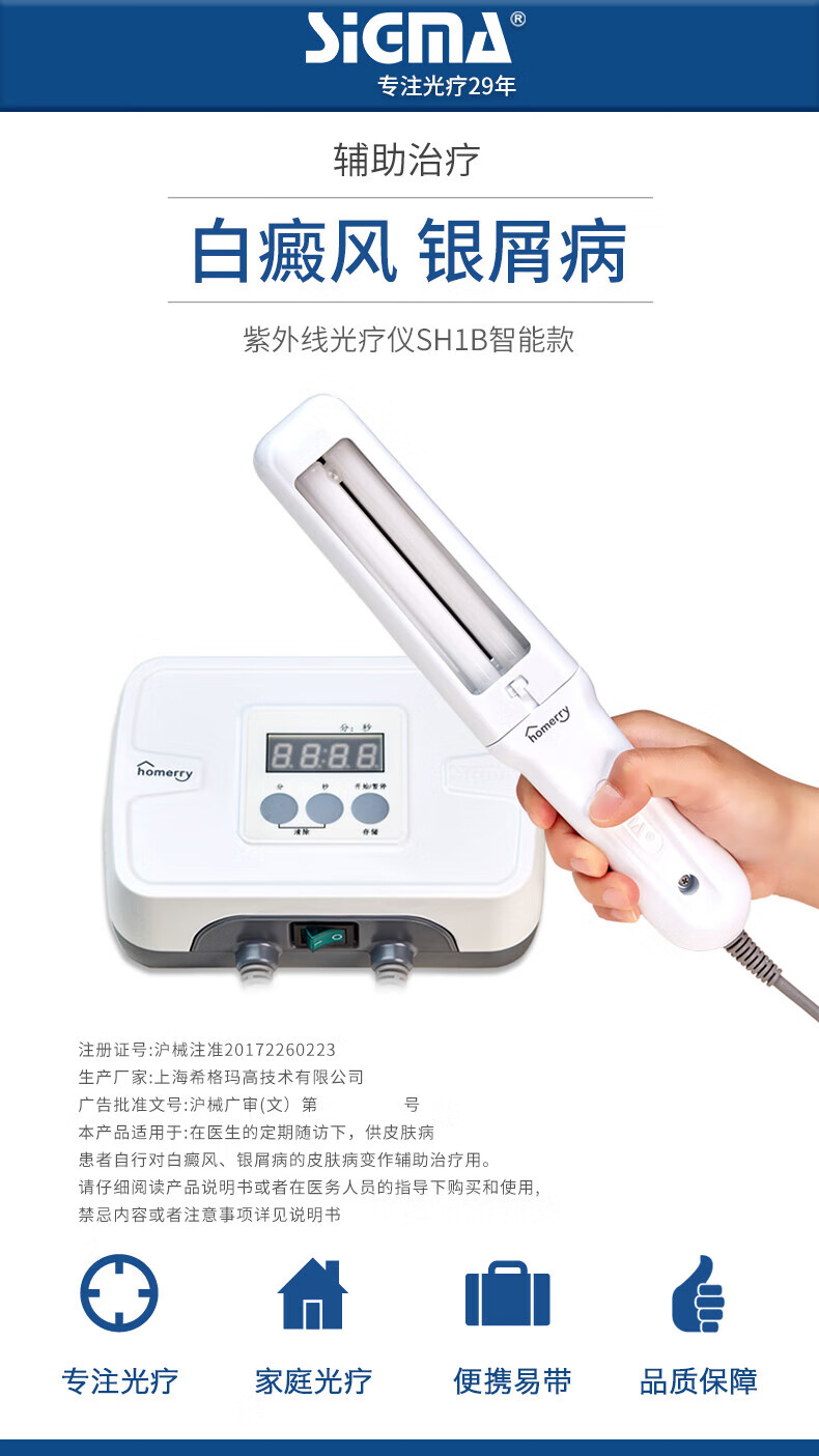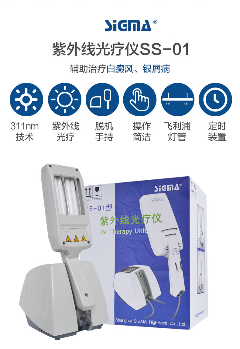 希格玛(SIGMA)308白癜风治疗仪紫外线光疗仪医院家用激光理疗仪西格玛银屑病 311窄谱UVB智能单管SH10B【适用躯干四肢】