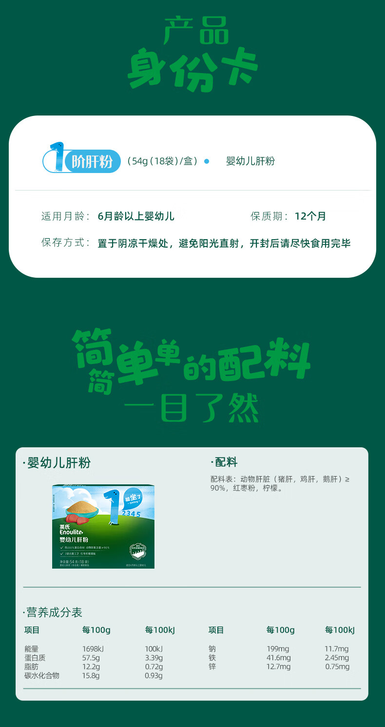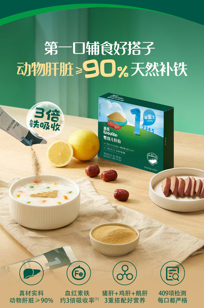 英氏婴幼儿强化铁猪肝粉54g宝宝辅食调味拌饭料6个月以上补铁不含盐