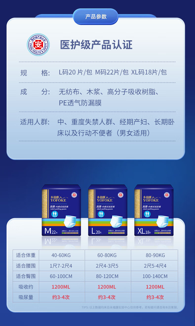 永福康金装加厚成人拉拉裤L20片 臀围80-120cm 老人孕妇内裤型纸尿裤