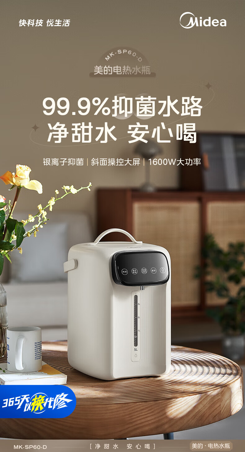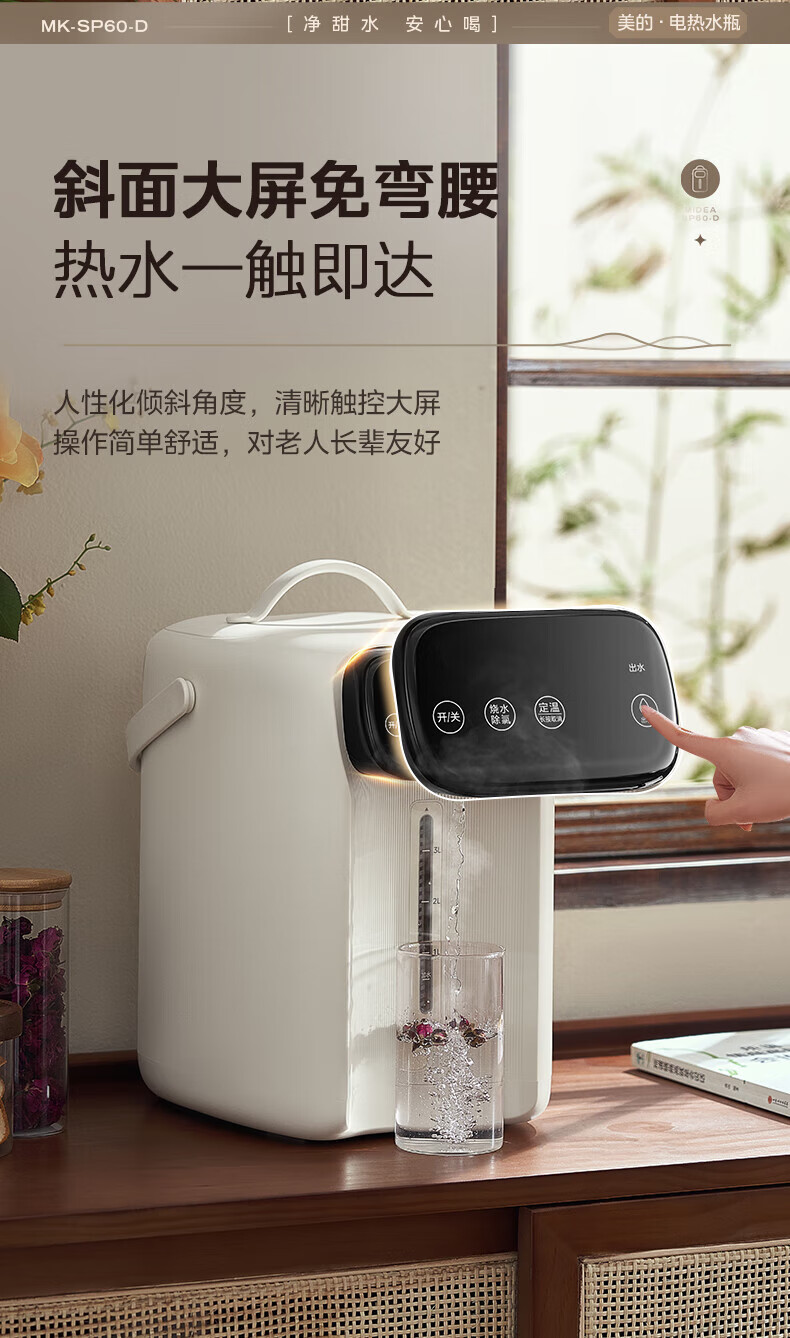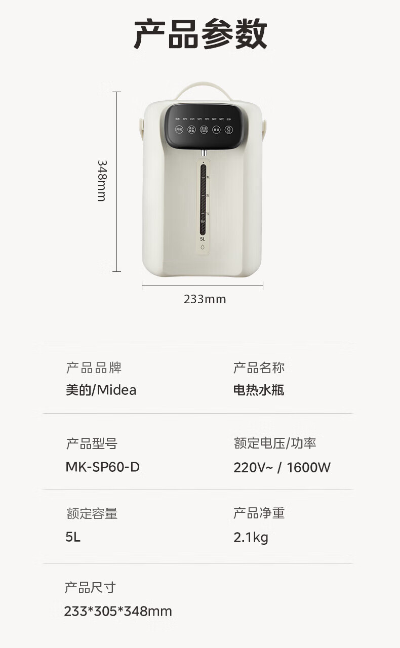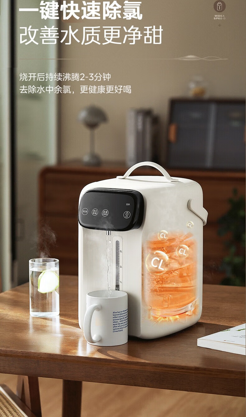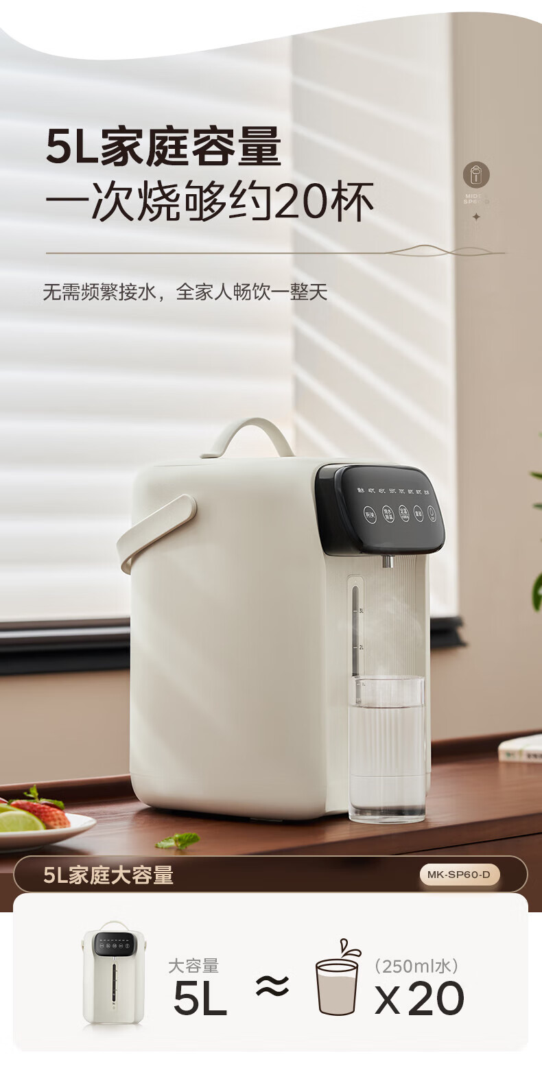 美的(Midea)电热水瓶 家用5L大容量恒温电热水壶多段保温烧水壶大功率开水壶 一键快速除氯MK-SP60-D 5L