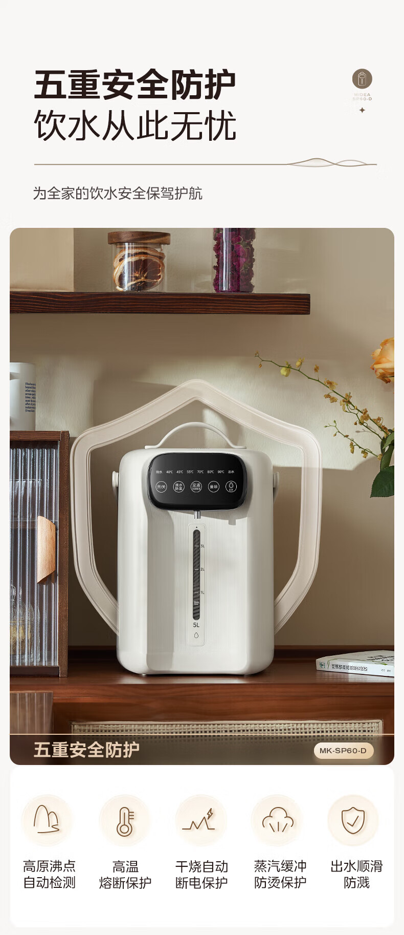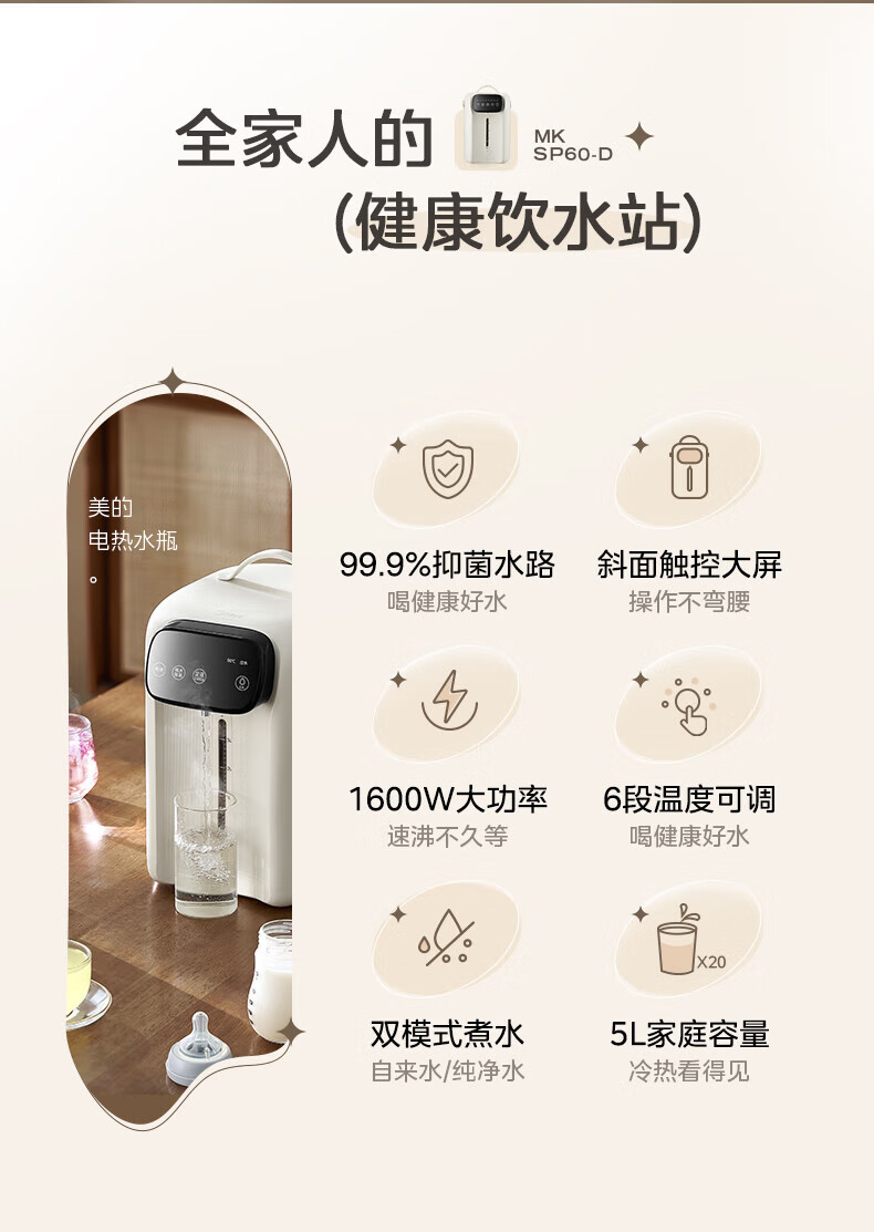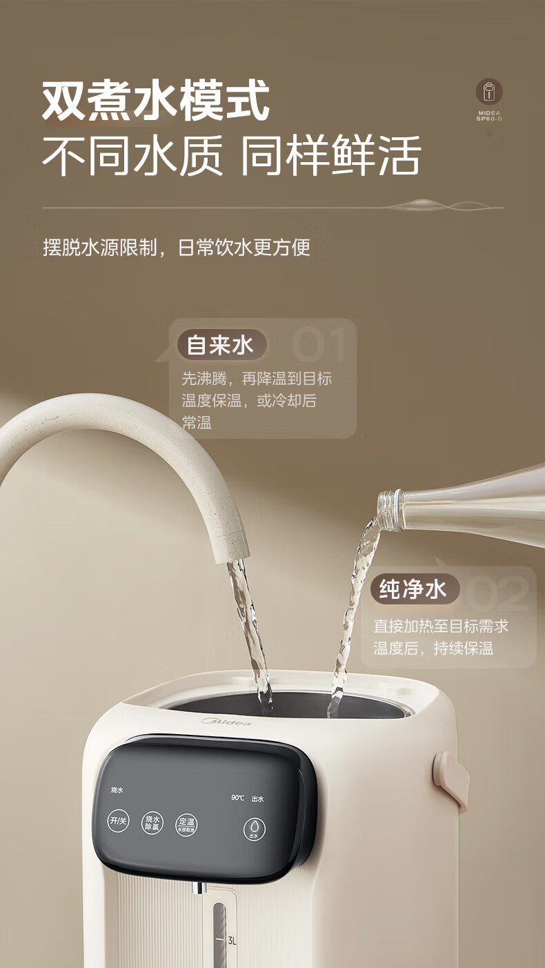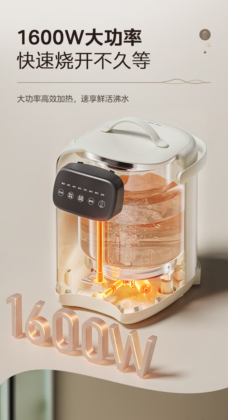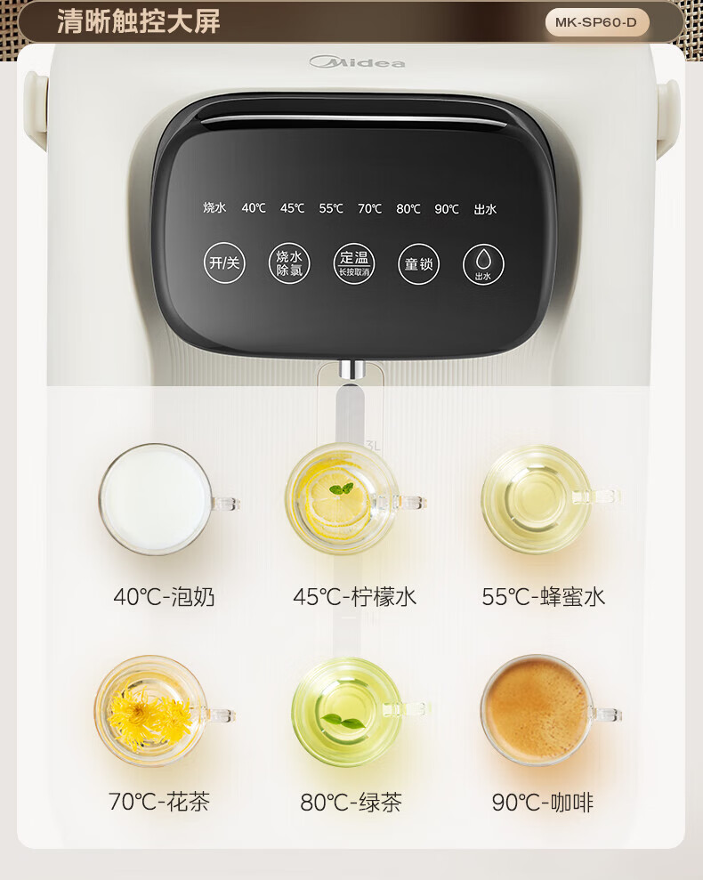 美的(Midea)电热水瓶 家用5L大容量恒温电热水壶多段保温烧水壶大功率开水壶 一键快速除氯MK-SP60-D 5L