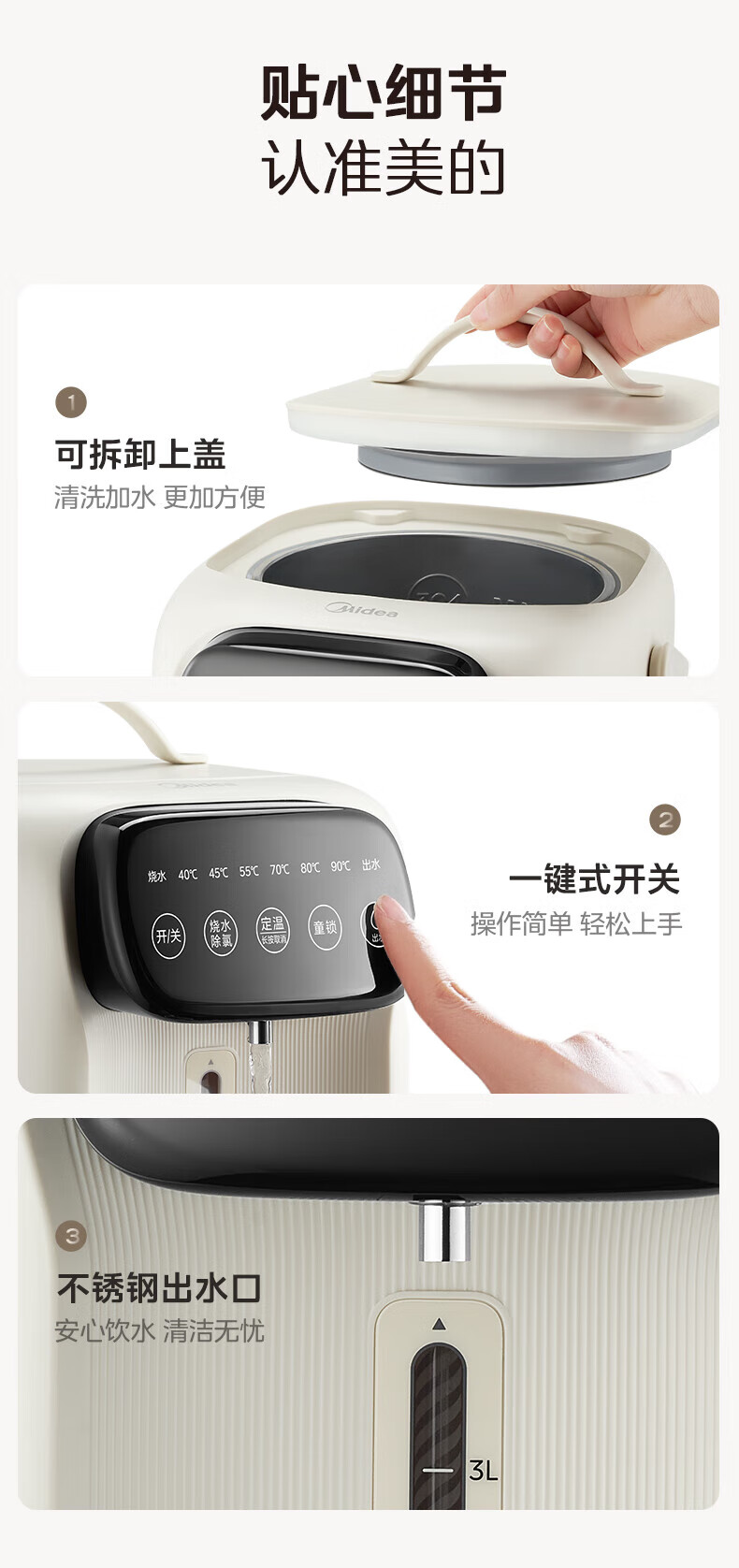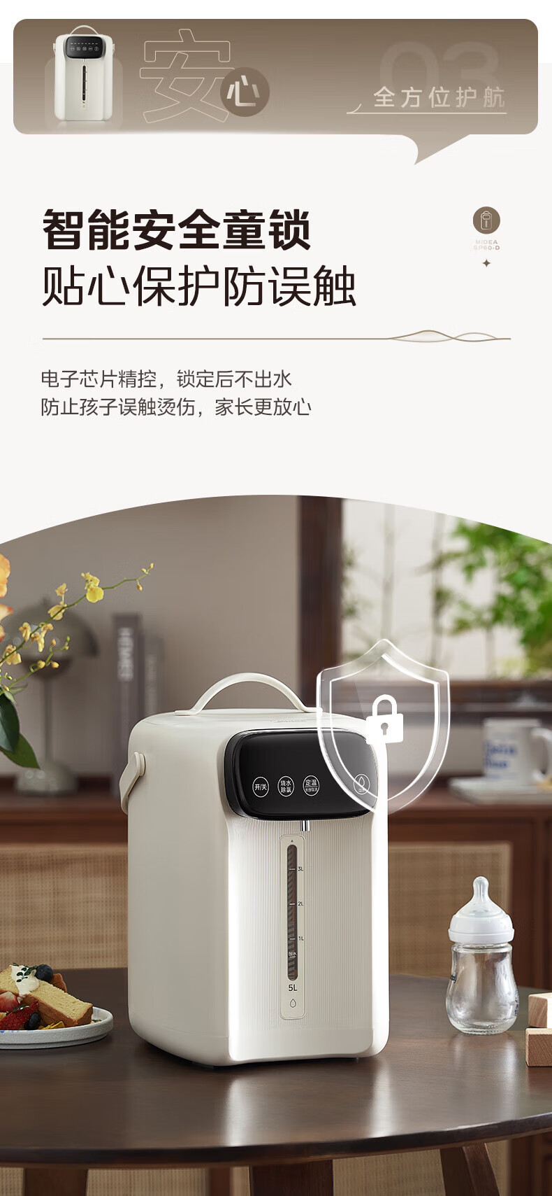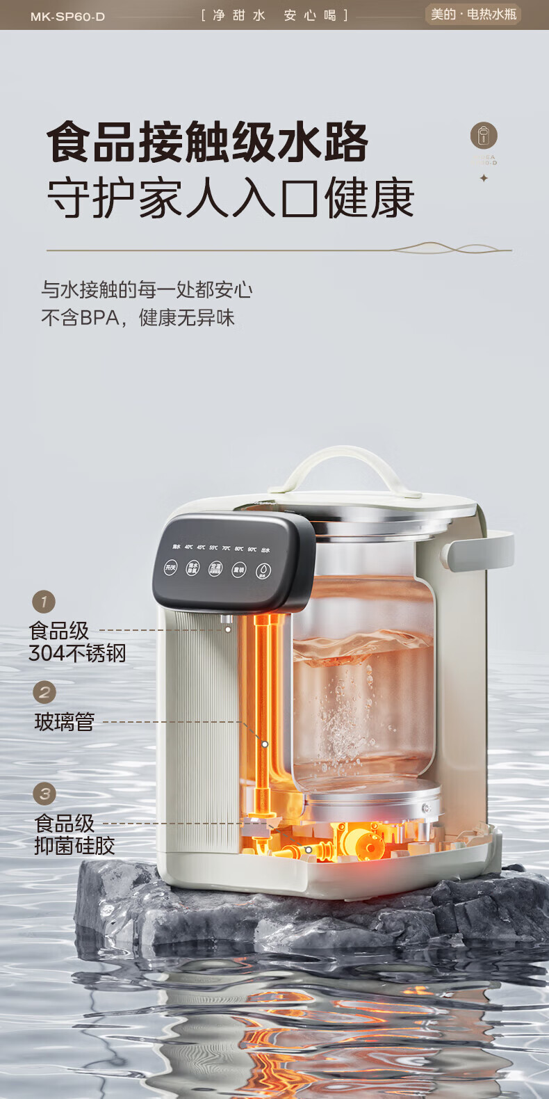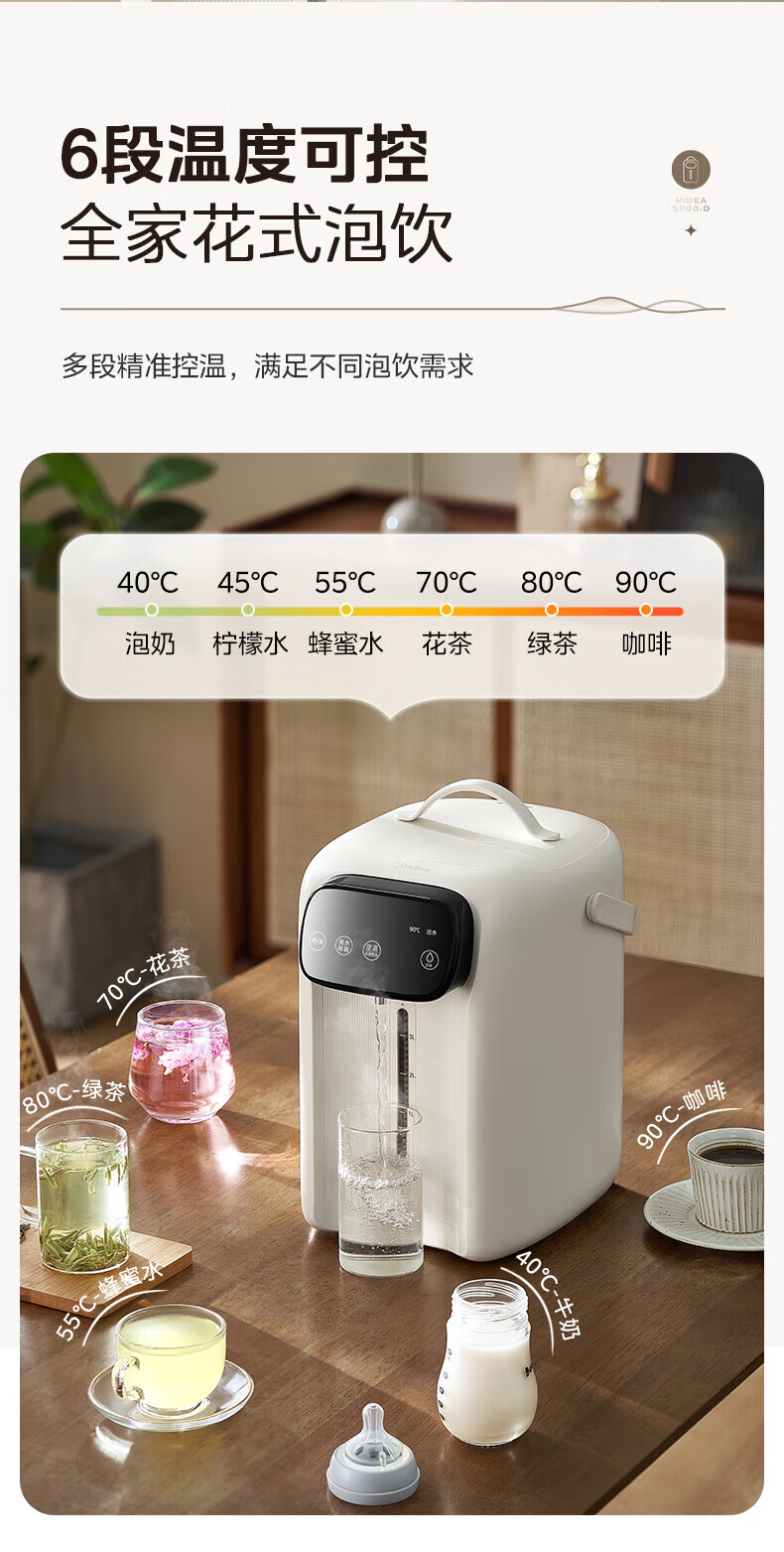 美的(Midea)电热水瓶 家用5L大容量恒温电热水壶多段保温烧水壶大功率开水壶 一键快速除氯MK-SP60-D 5L