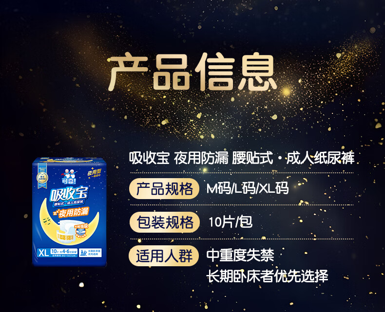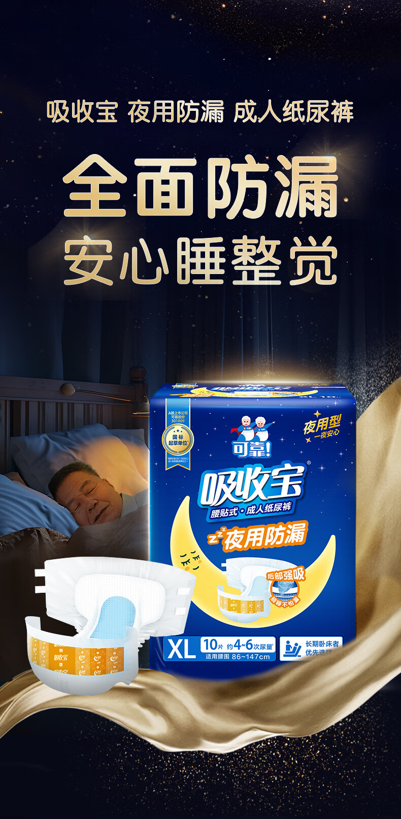 可靠(COCO)吸收宝夜用成人纸尿裤XL10片 臀围≥110cm 加大加厚老年人尿不湿