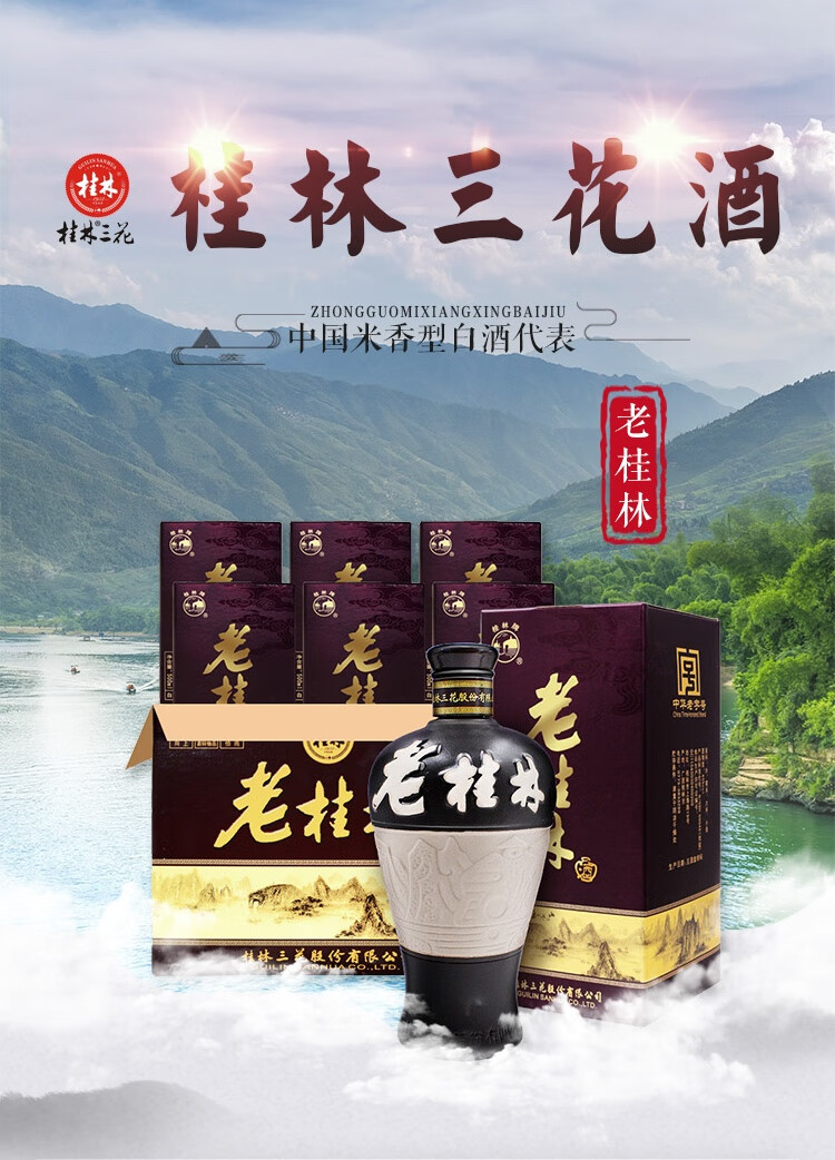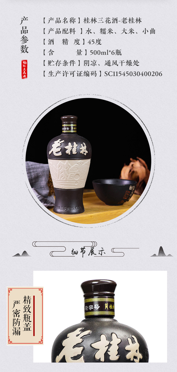 桂林三花酒 老桂林陶瓷瓶 米香型白酒 45度 500ml*6瓶 整箱装 送礼
