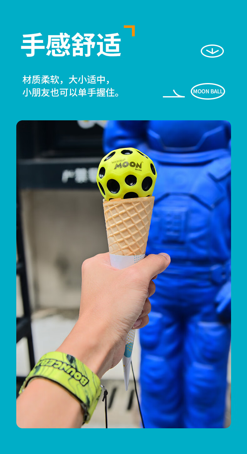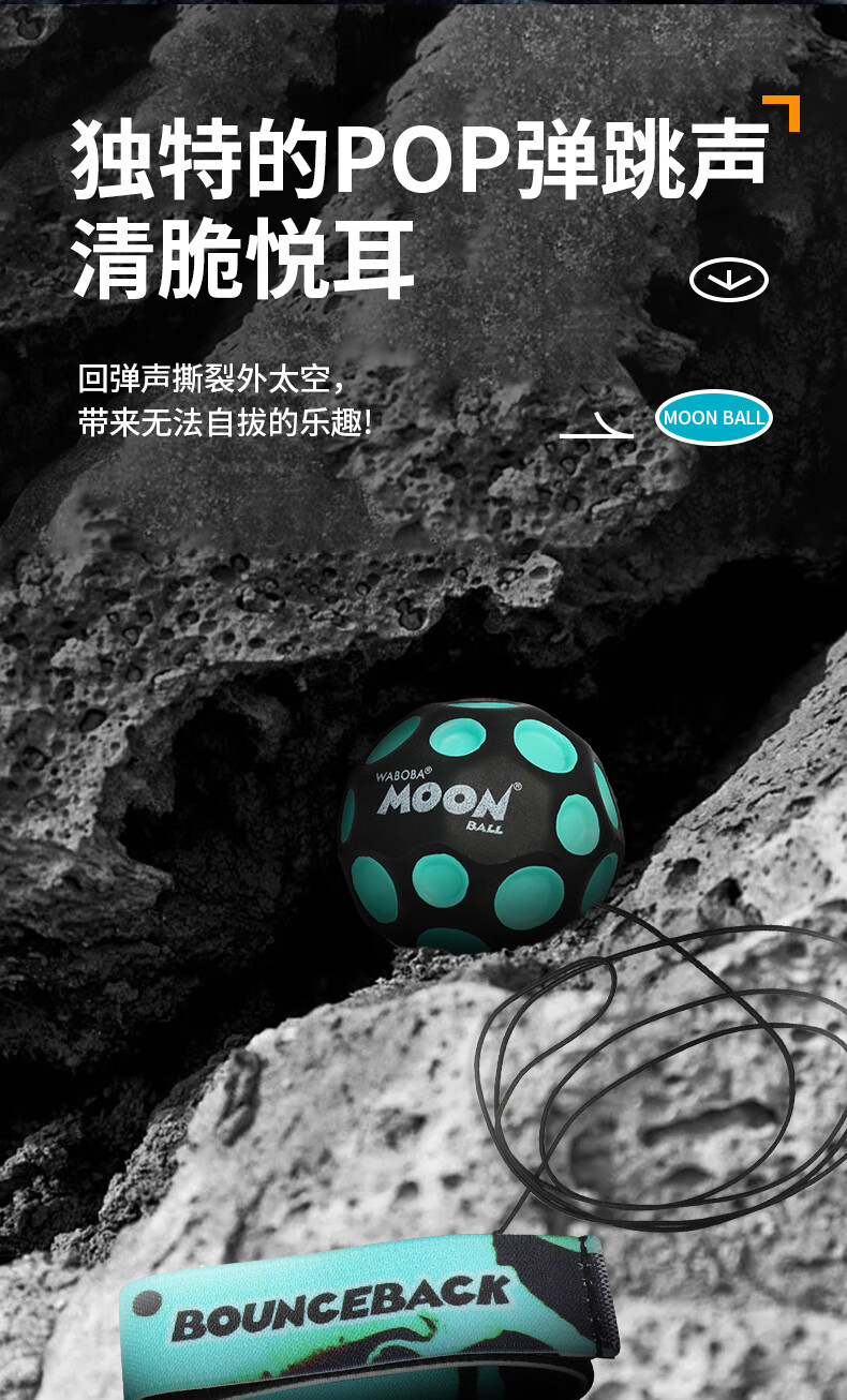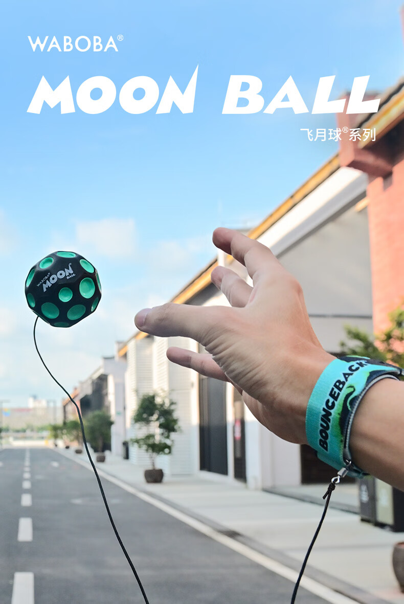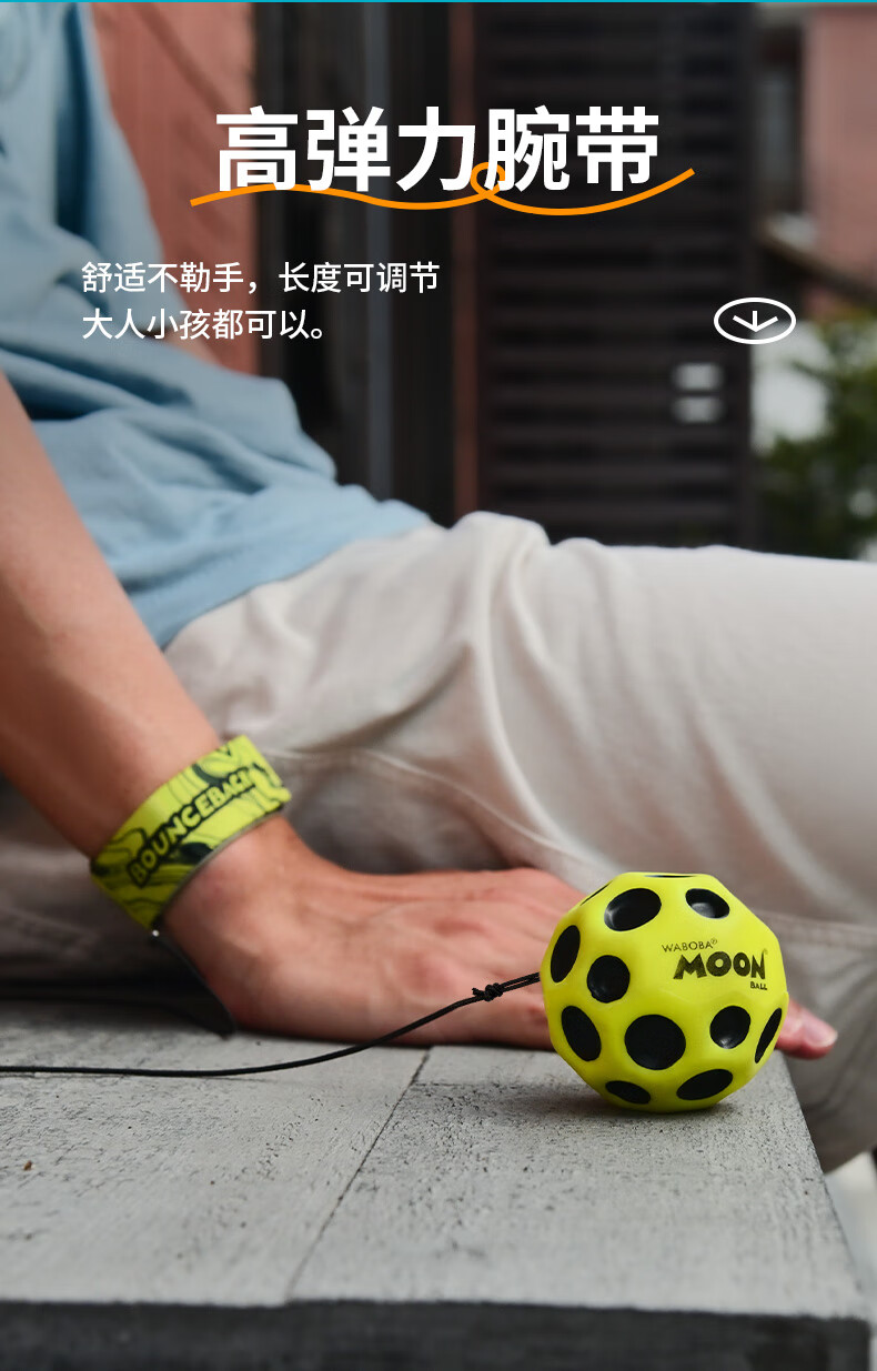 WABOBA手腕带绳飞月球可回收训练高弹力球月球石儿童成人解压实心玩具球 荧光黄/经典黑+荧光黄/经典黑