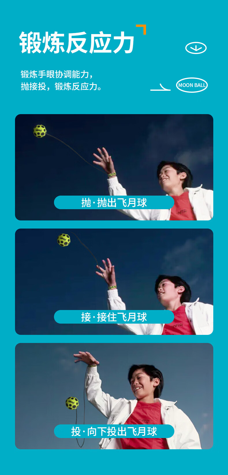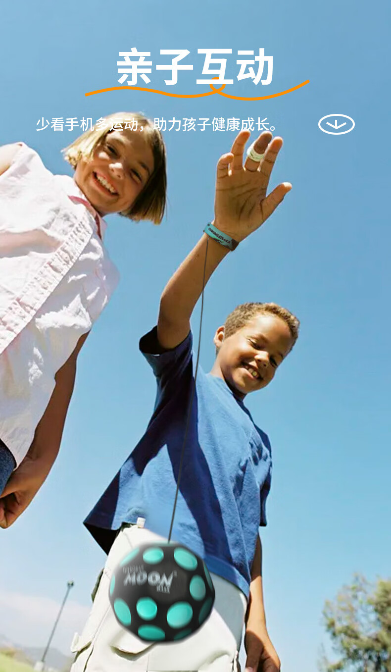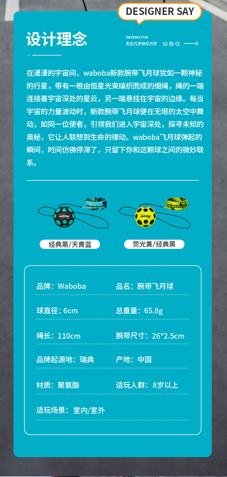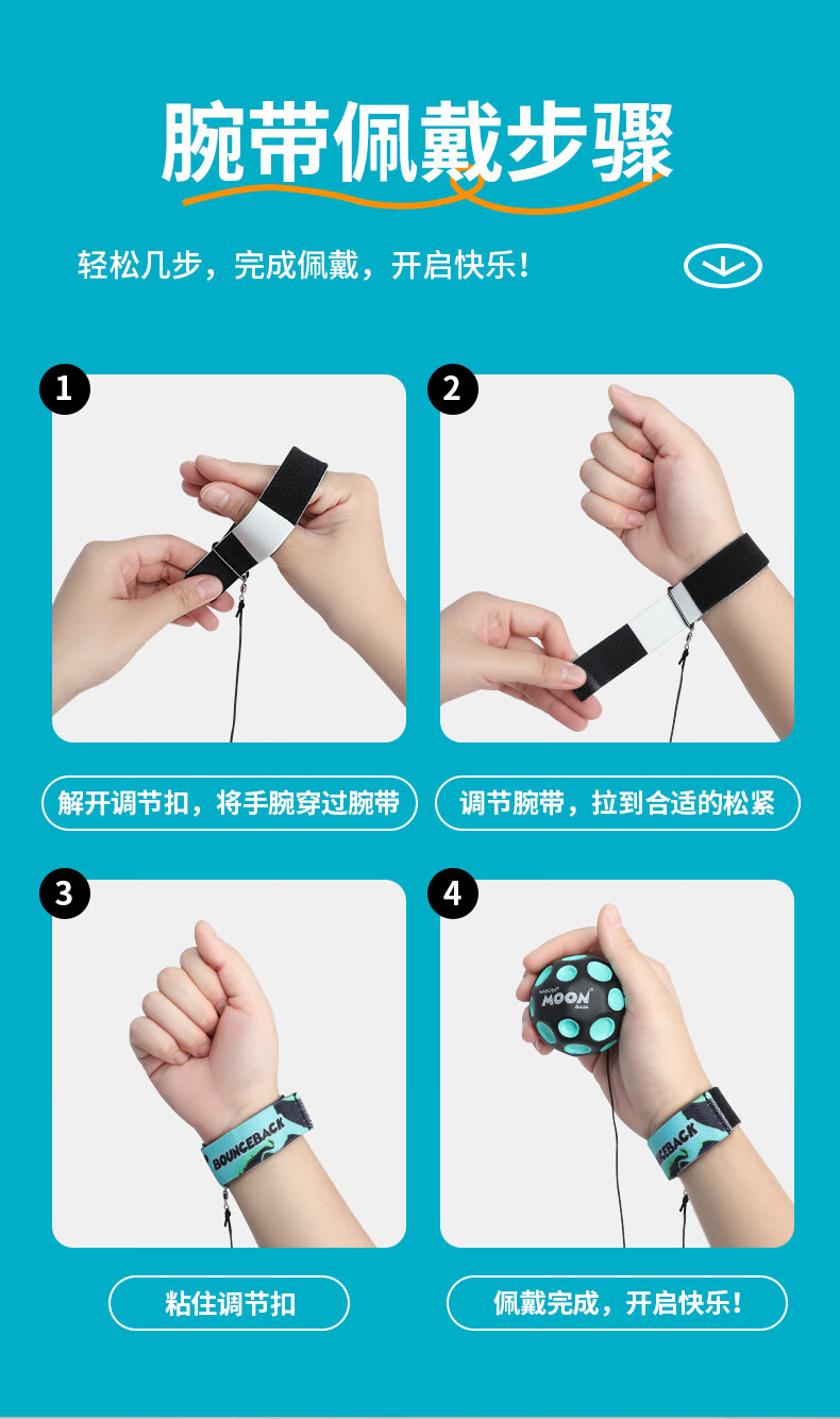 WABOBA手腕带绳飞月球可回收训练高弹力球月球石儿童成人解压实心玩具球 荧光黄/经典黑+荧光黄/经典黑