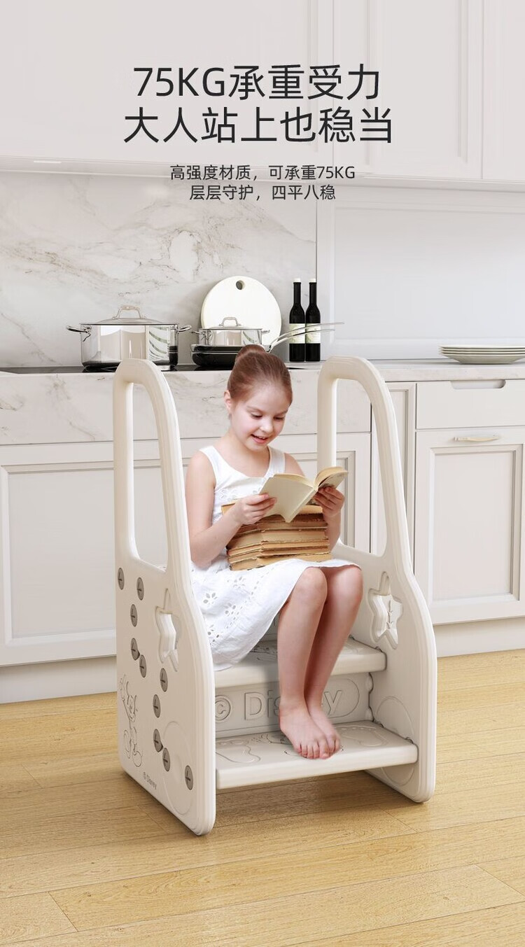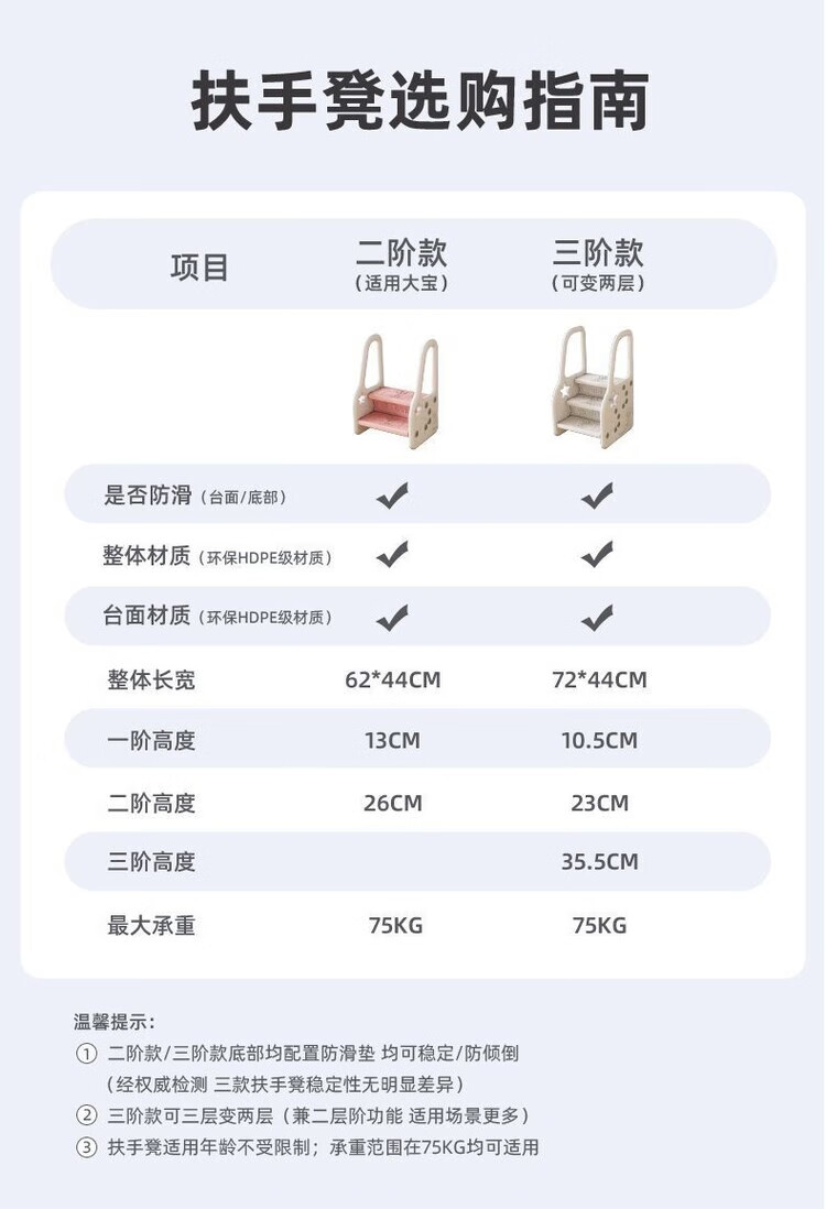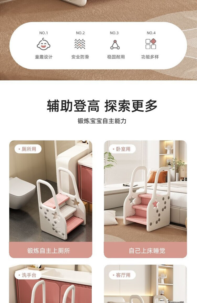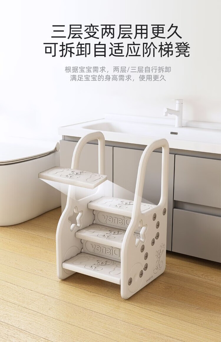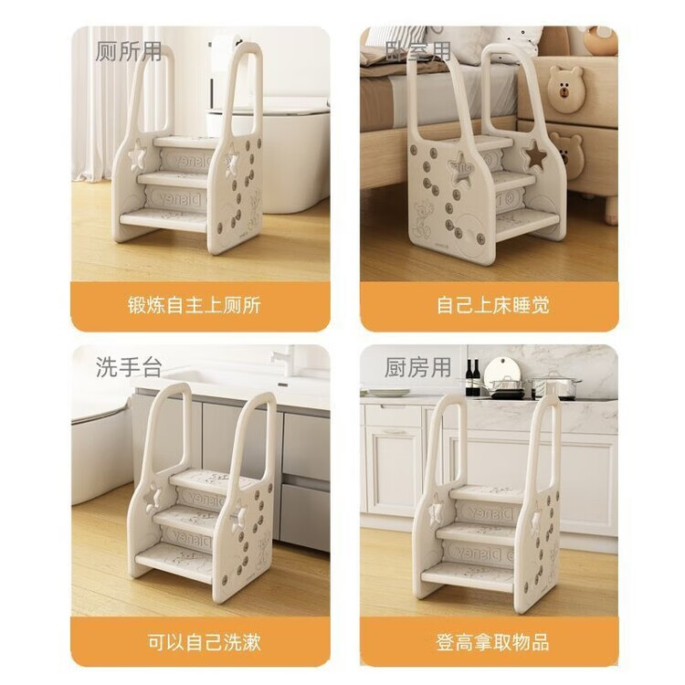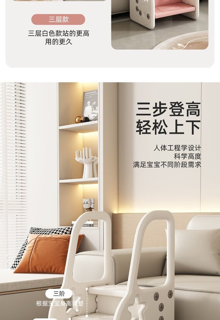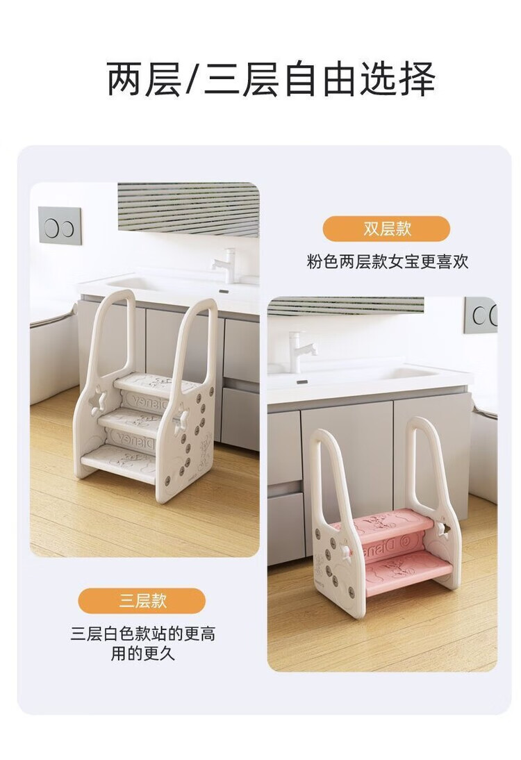 海诗圣堡儿童洗漱台踩凳垫脚凳宝宝洗手台阶凳刷牙洗脸阶梯马桶脚踏踩脚凳 奶酪色基础款2层-环保无异味