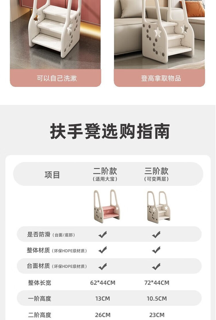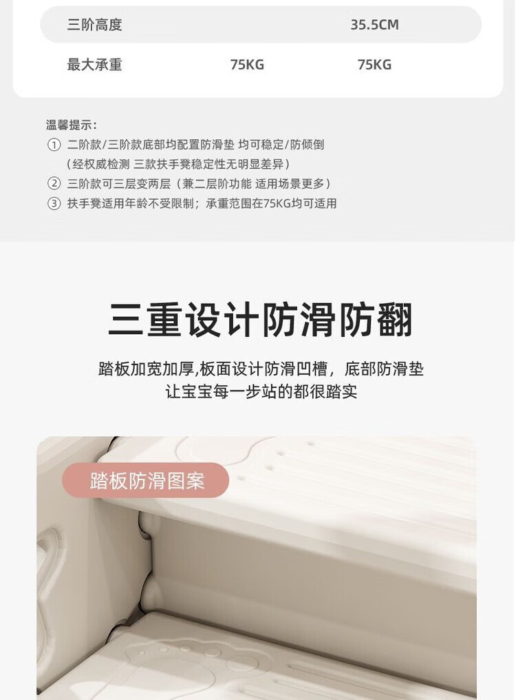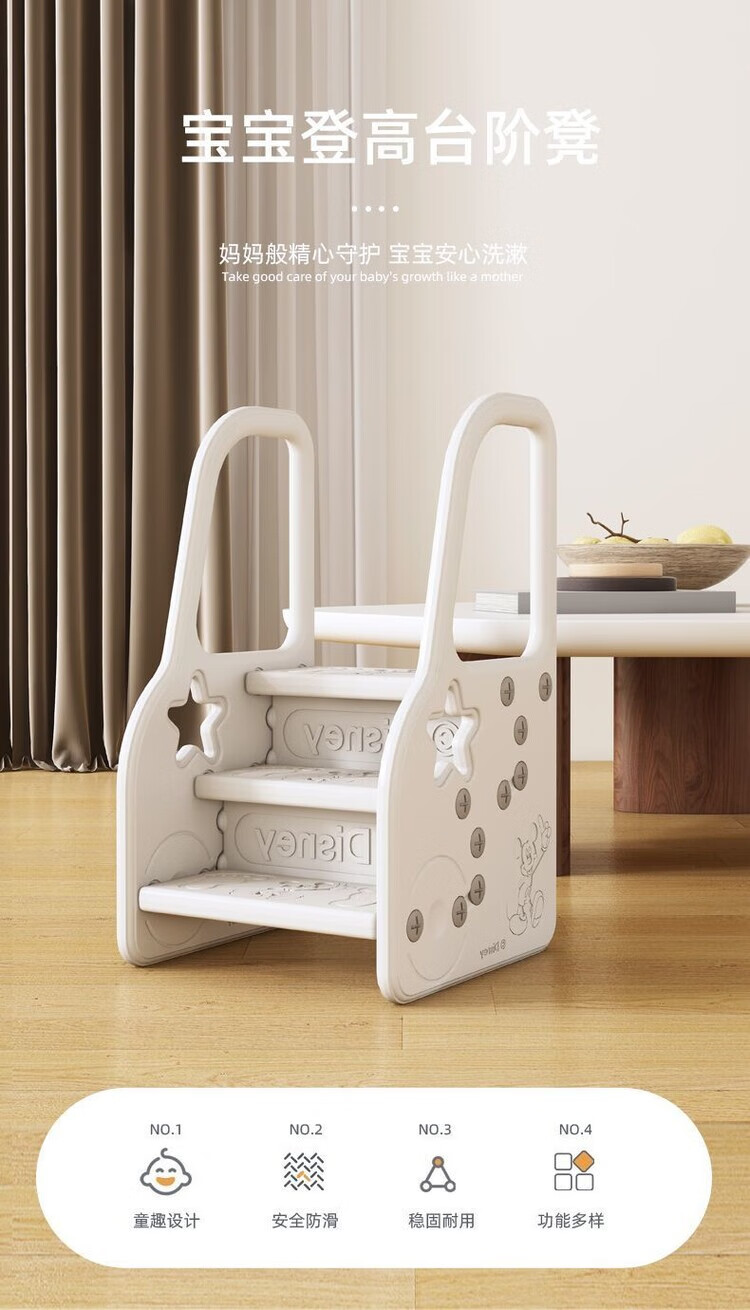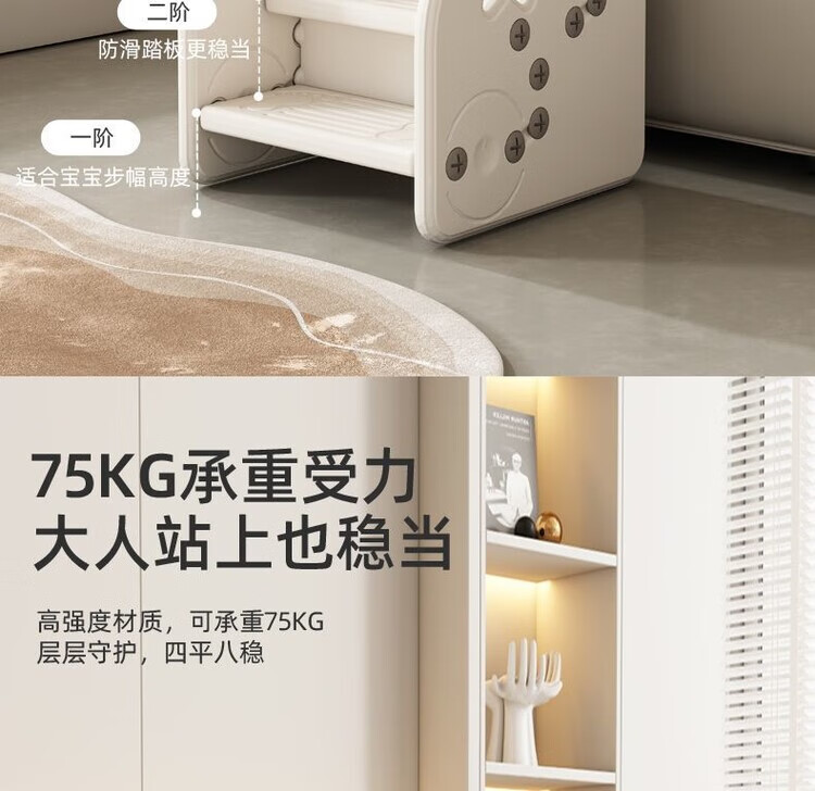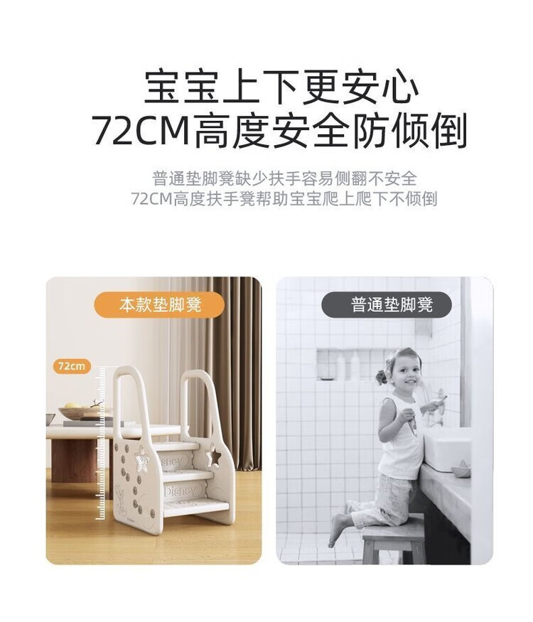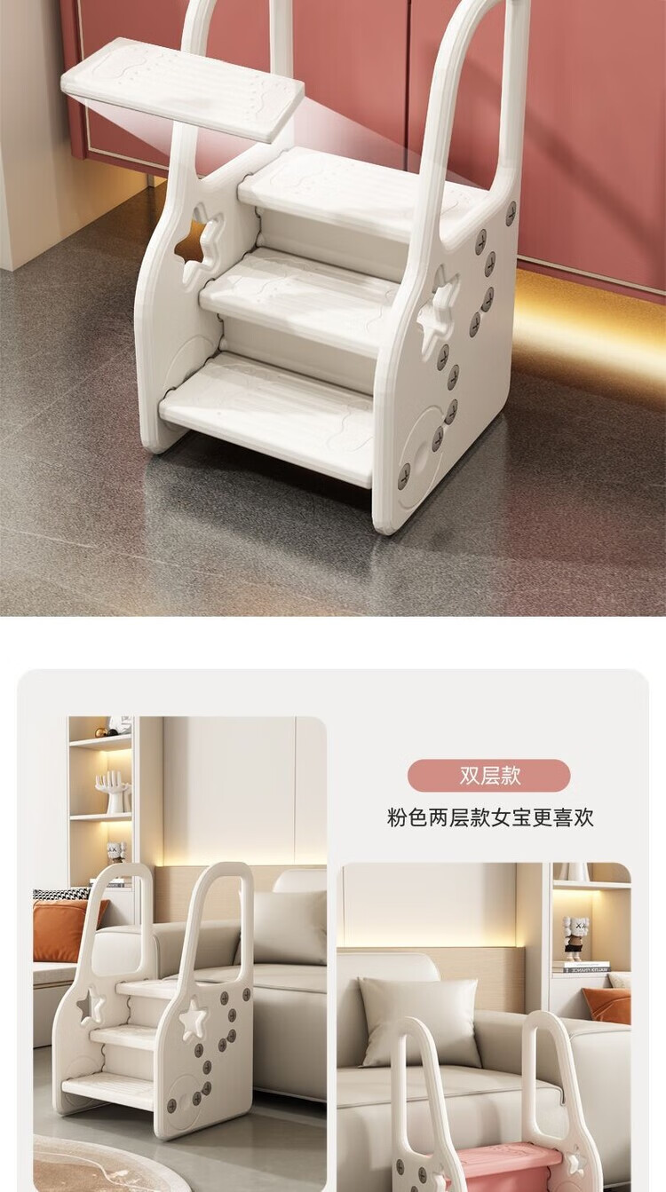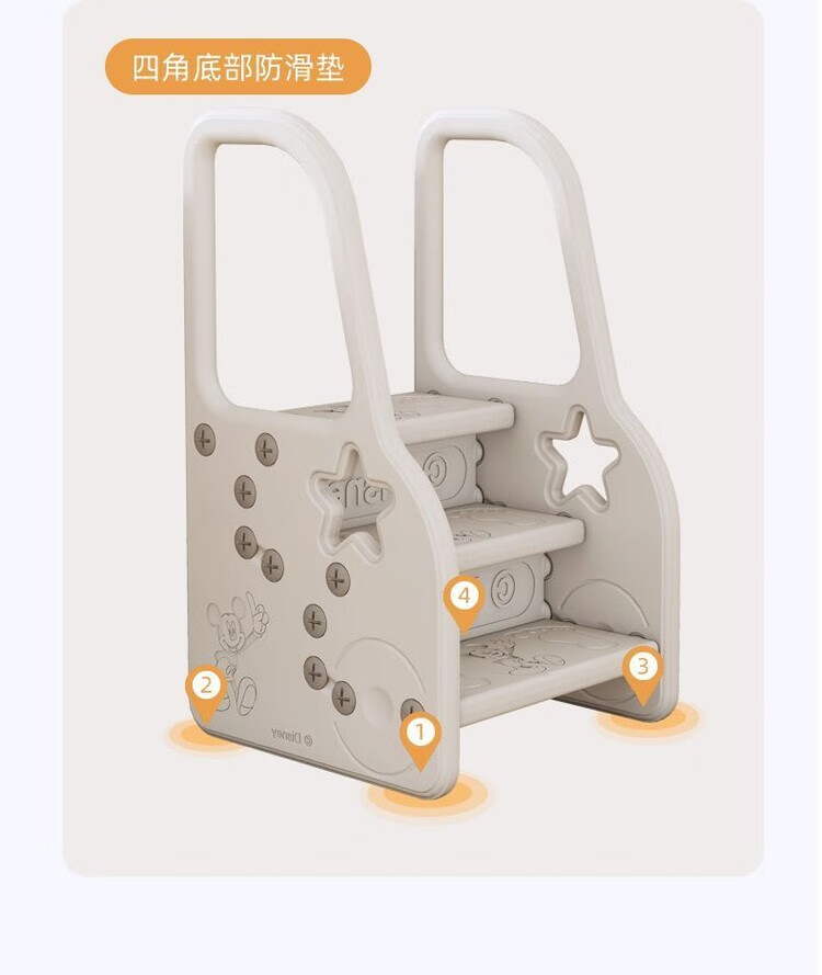海诗圣堡儿童洗漱台踩凳垫脚凳宝宝洗手台阶凳刷牙洗脸阶梯马桶脚踏踩脚凳 奶酪色基础款2层-环保无异味