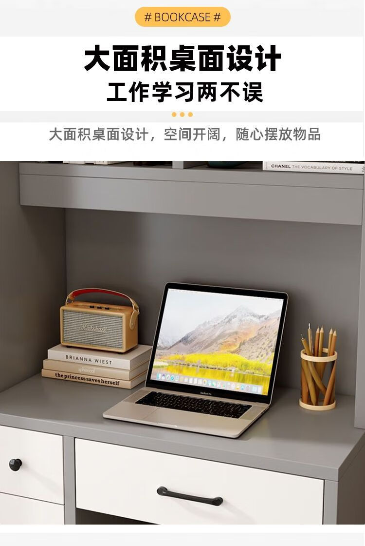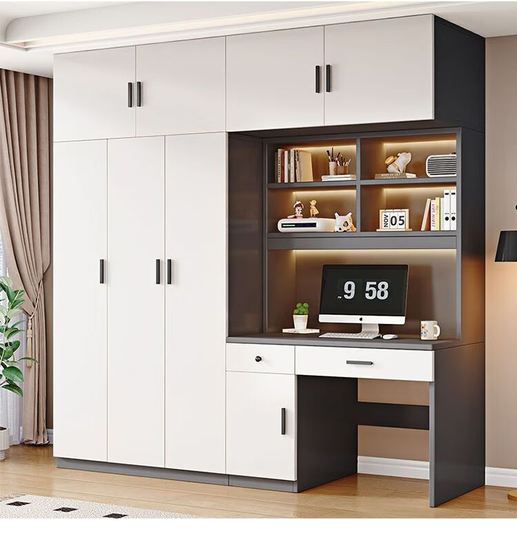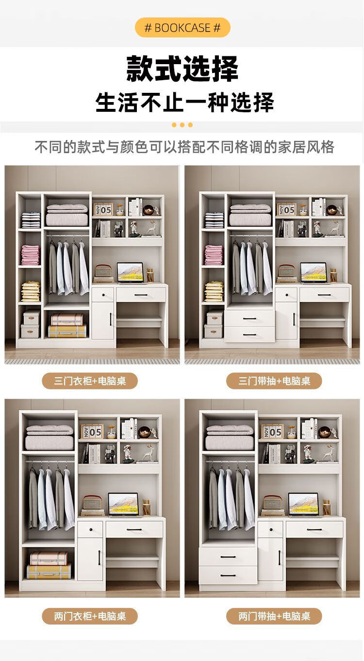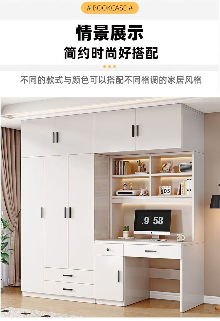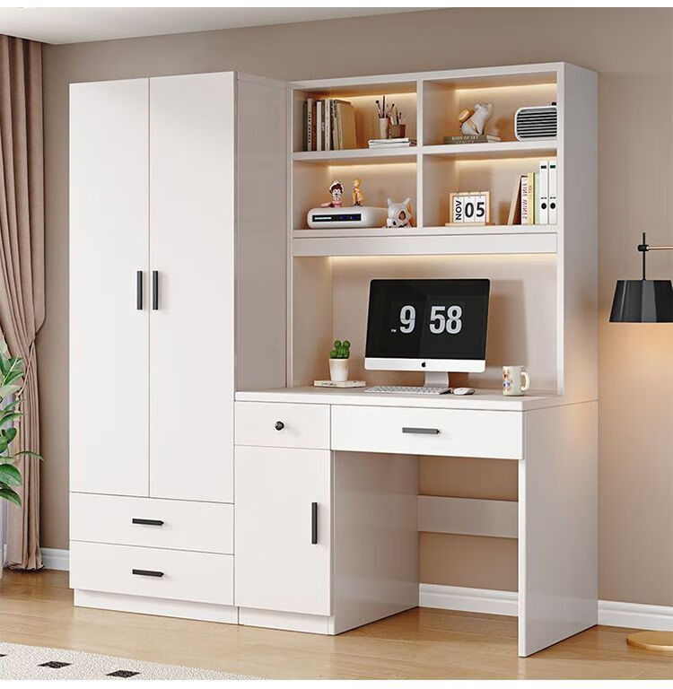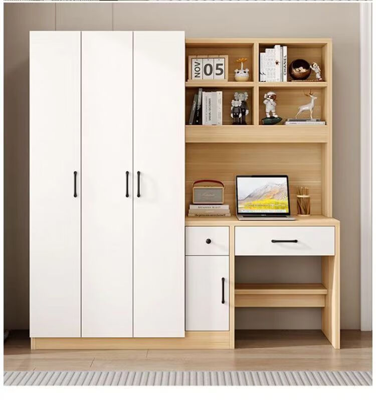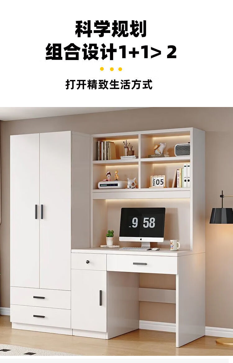 倘然之家纯实木书桌衣柜一体组合儿童电脑桌小户型学生写字台卧室书架阳台 1.3m单门书桌 自己安装【全实木】