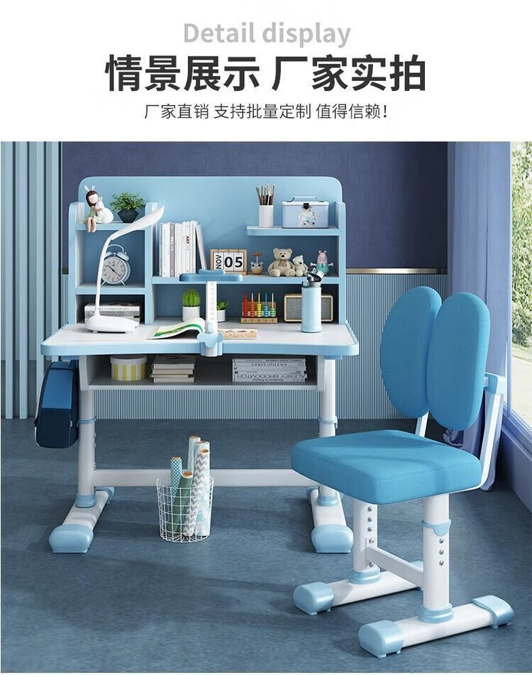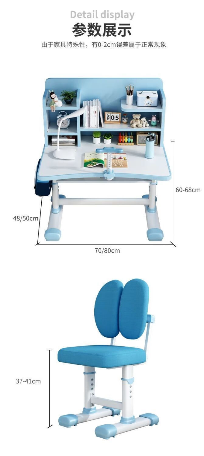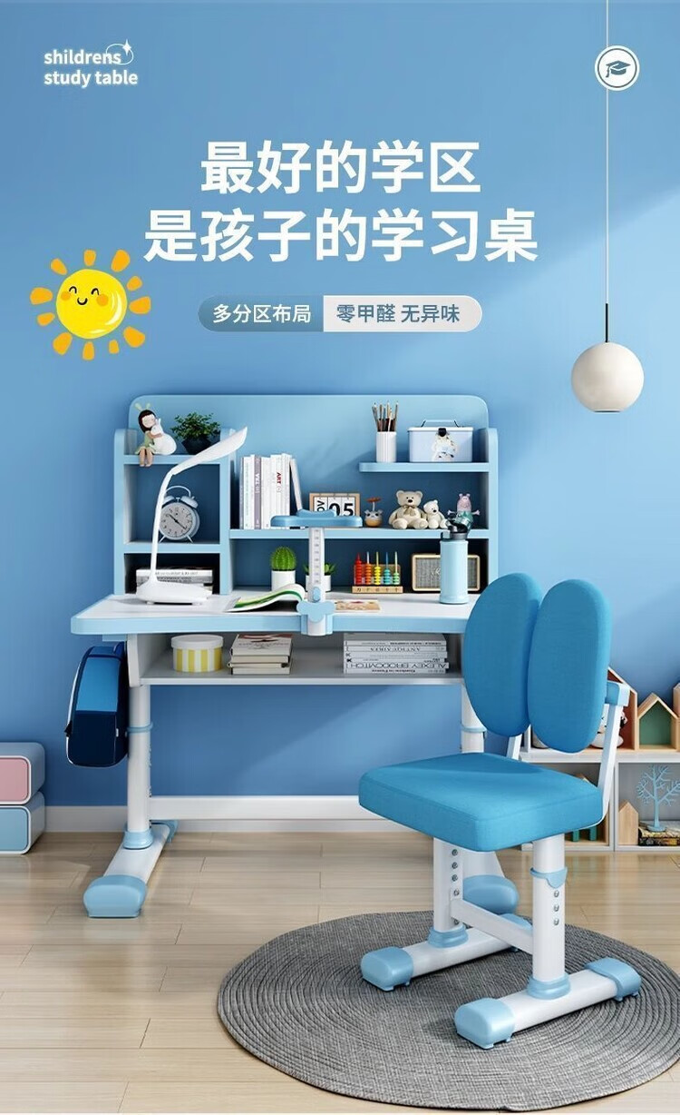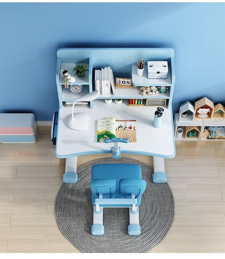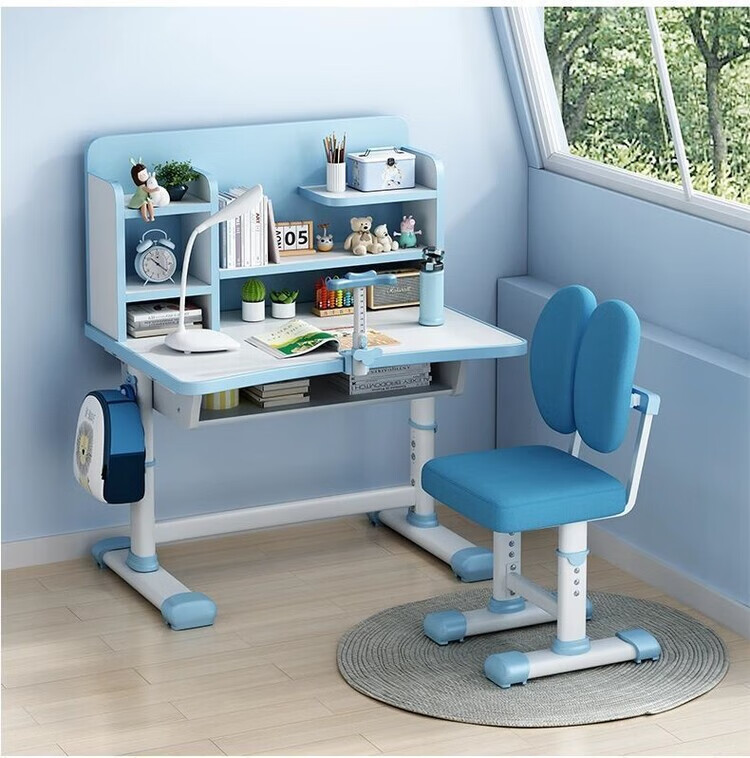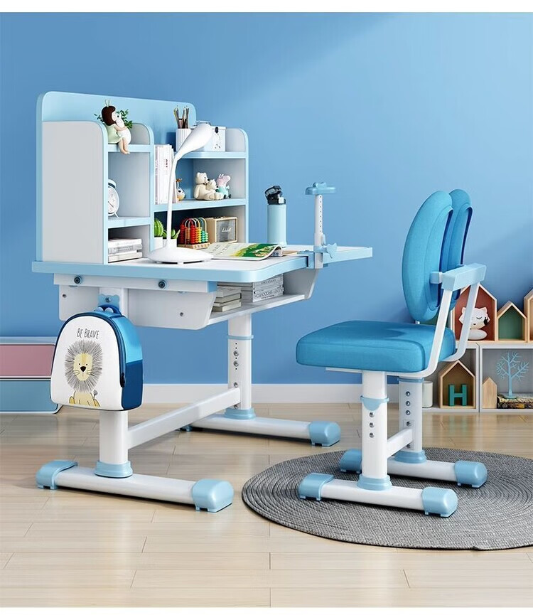 弘星隆儿童学习桌书架学生家用课桌套装可调节书桌可置物桌椅子组合桌子 B款学习蓝-软座软靠背+【桌椅一套】 70桌面+【 送矫正器+护眼灯】