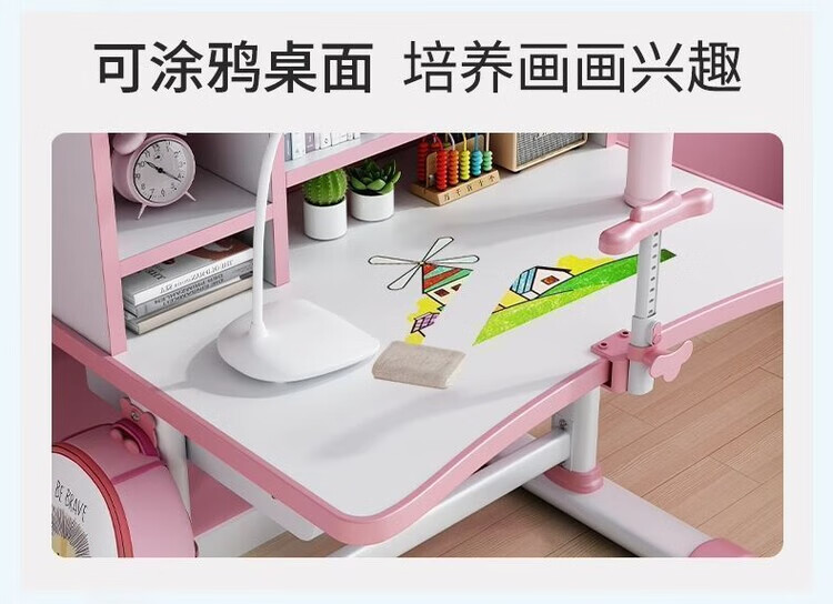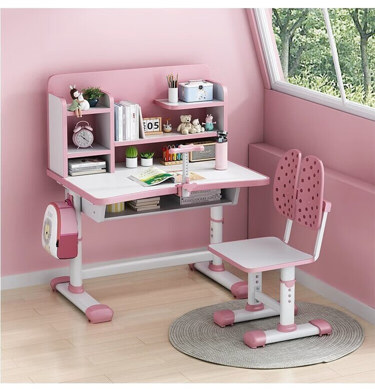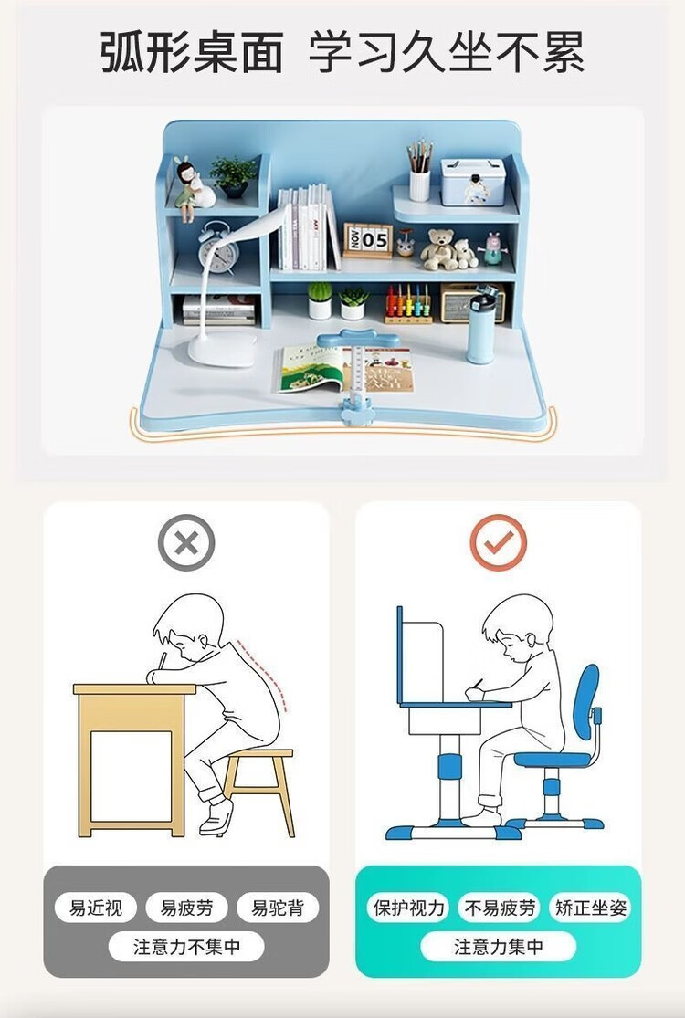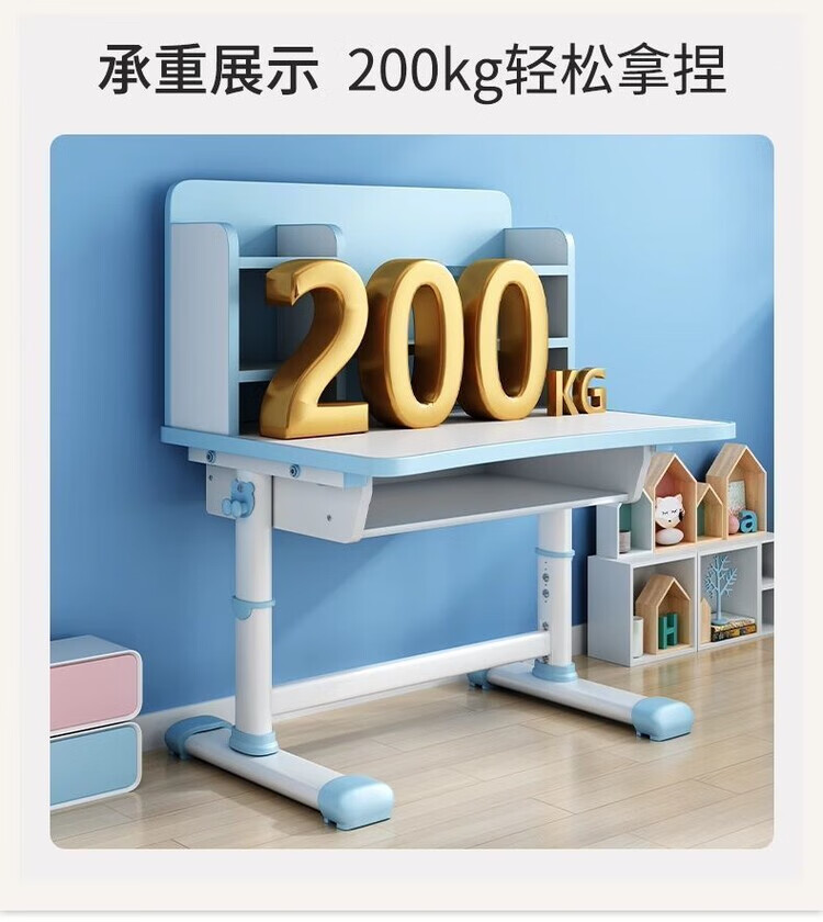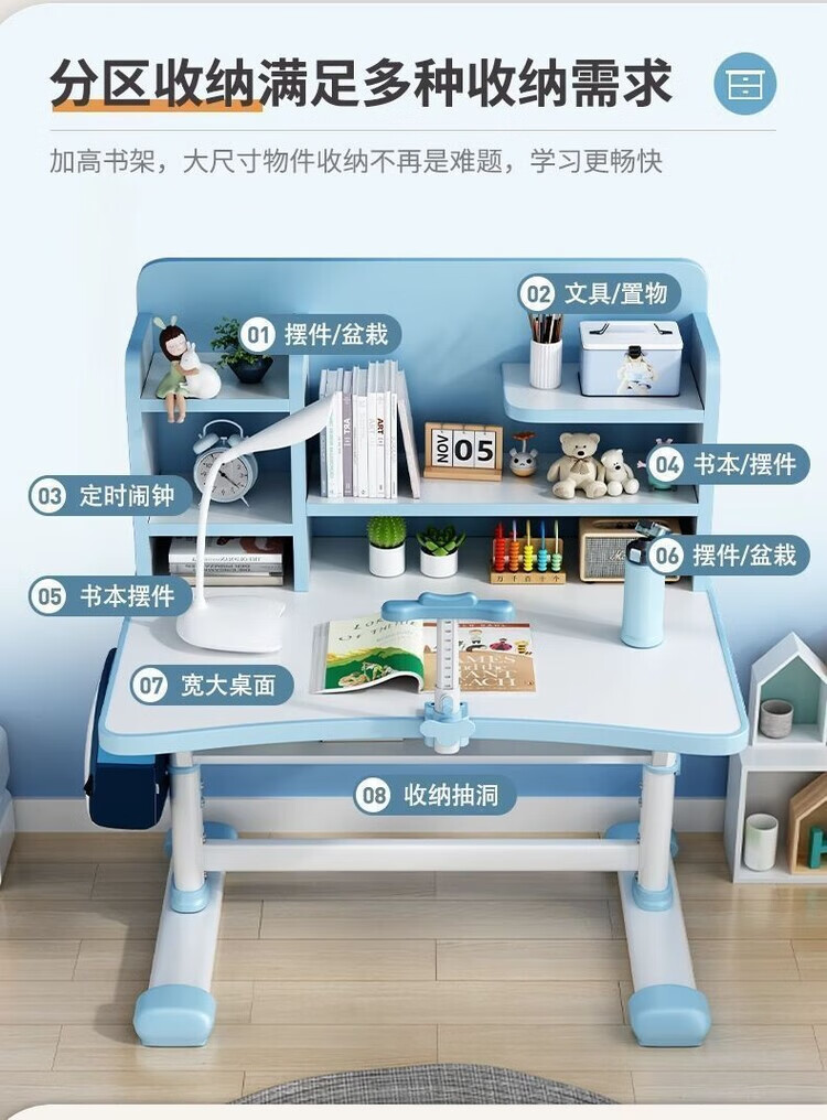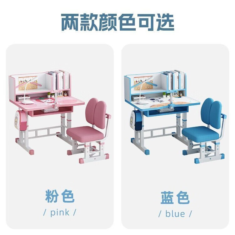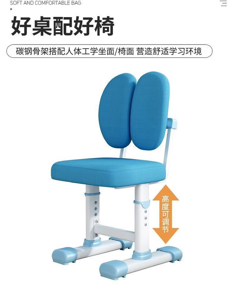 弘星隆儿童学习桌书架学生家用课桌套装可调节书桌可置物桌椅子组合桌子 B款学习蓝-软座软靠背+【桌椅一套】 70桌面+【 送矫正器+护眼灯】