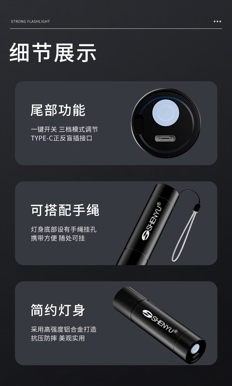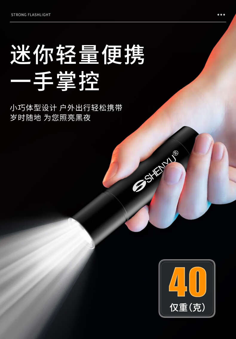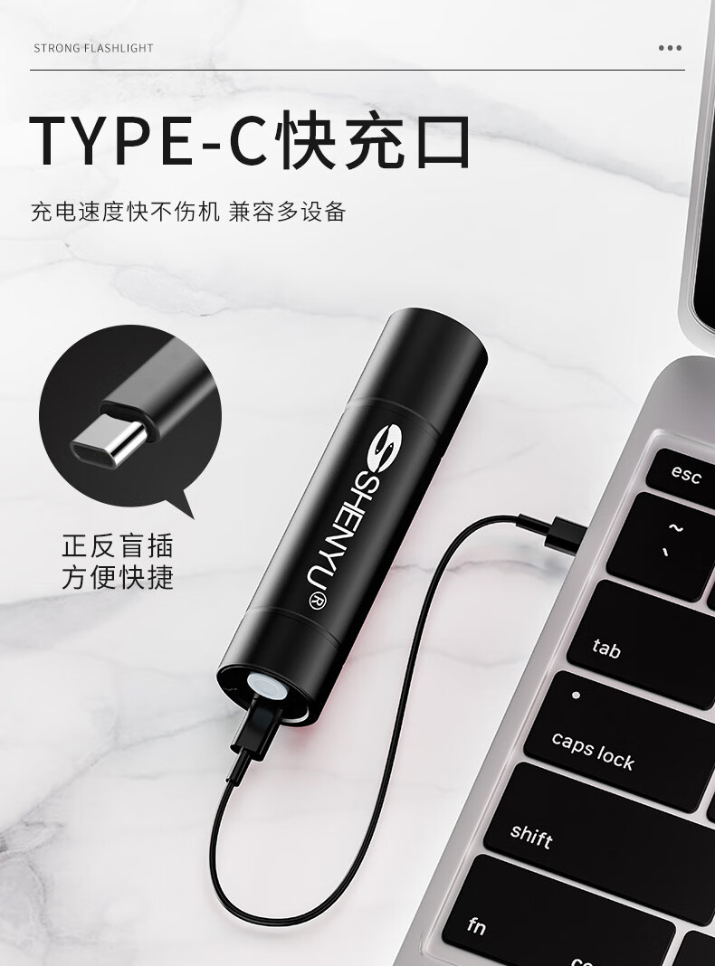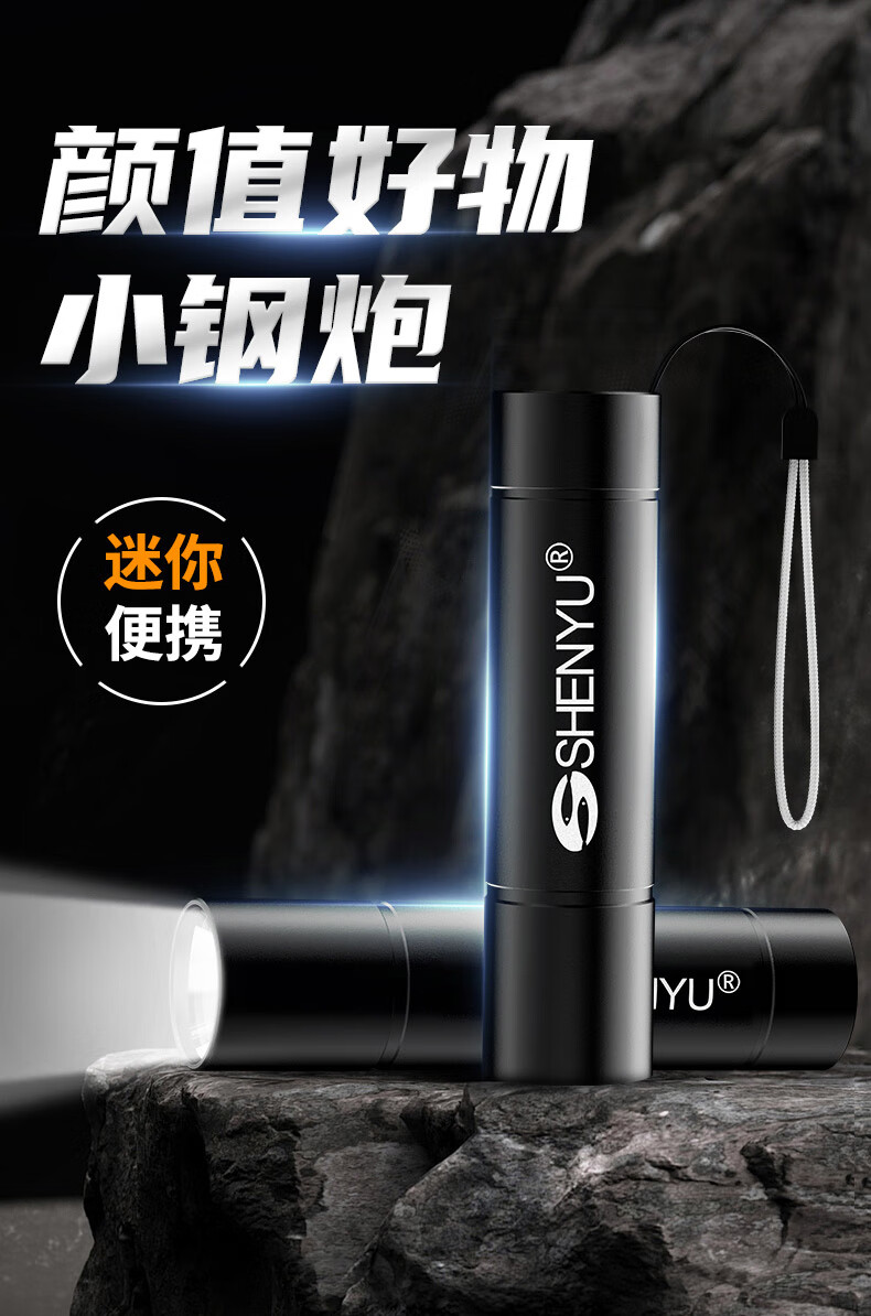 神鱼(SHENYU)手电筒强光远射小巧迷你便携多功能可充电超亮家用应急耐用灯 【小巧便携】超亮远射