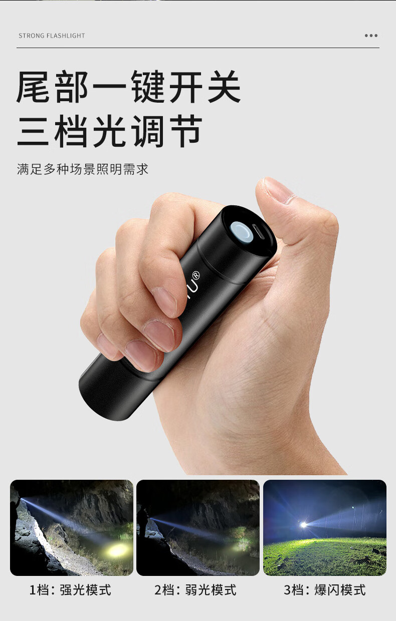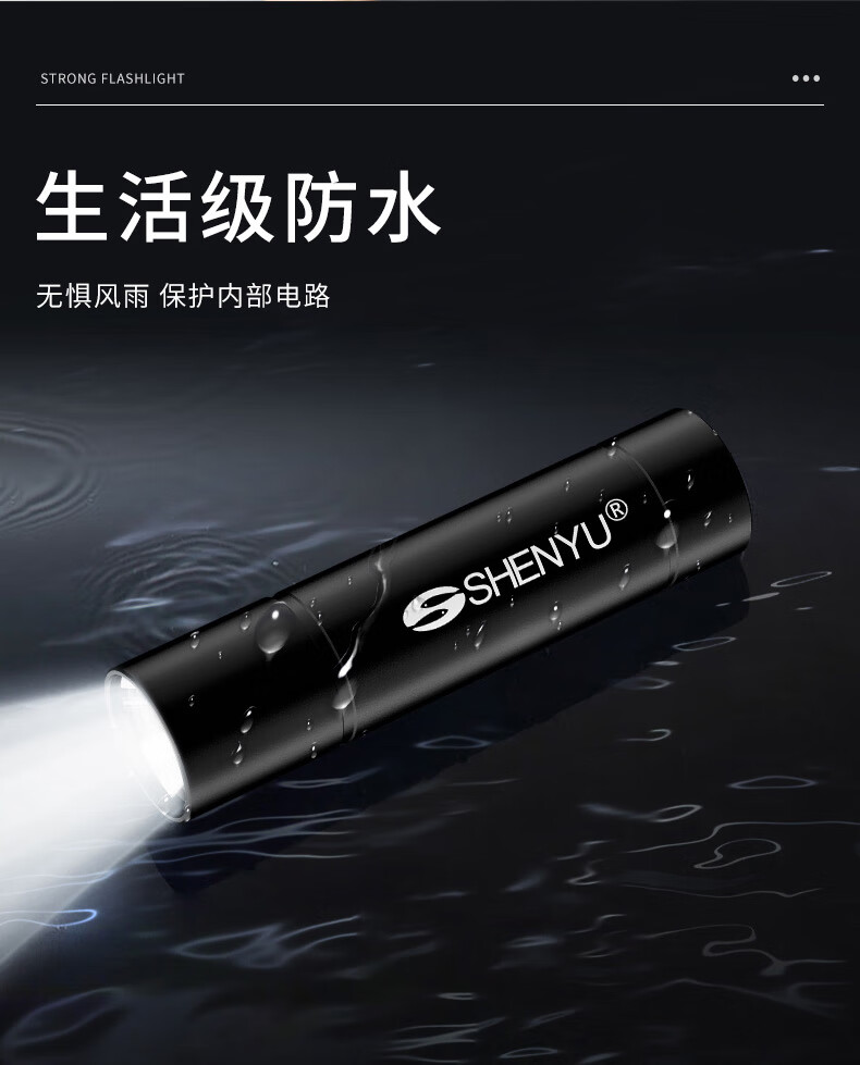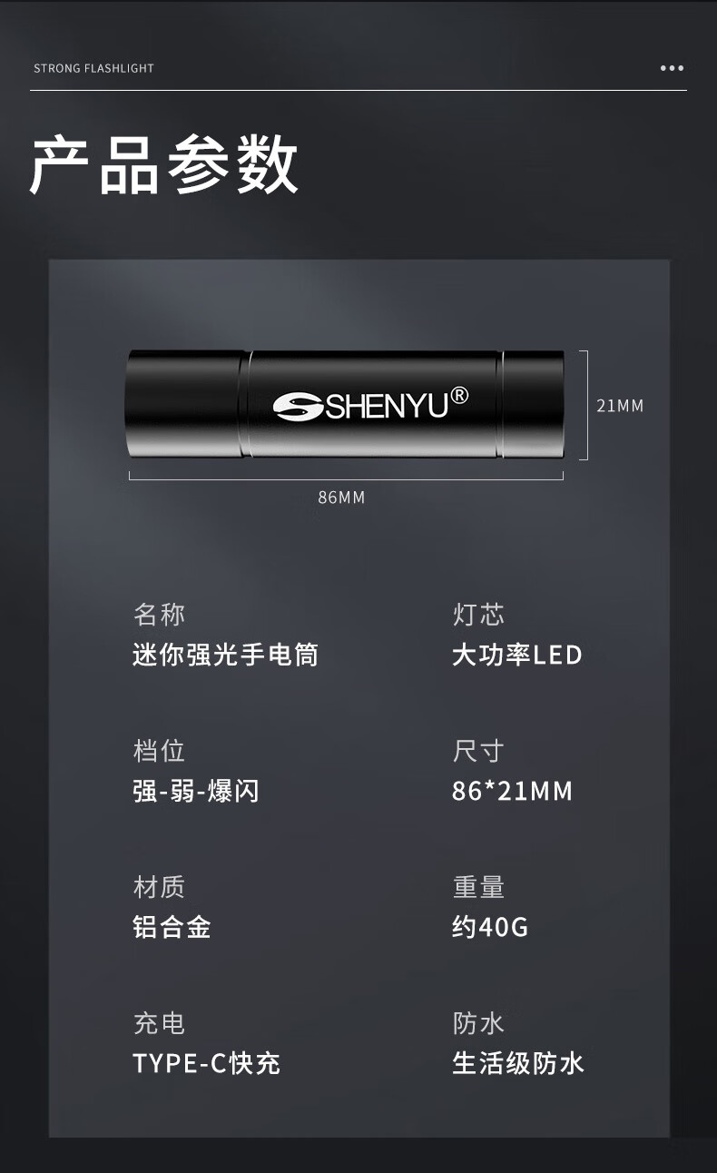 神鱼(SHENYU)手电筒强光远射小巧迷你便携多功能可充电超亮家用应急耐用灯 【小巧便携】超亮远射