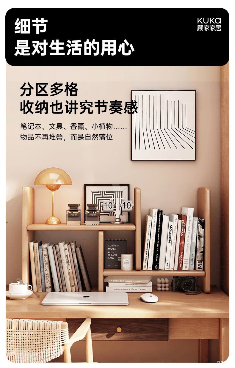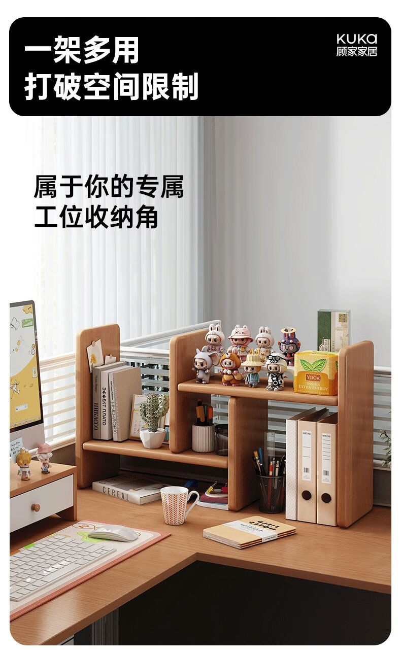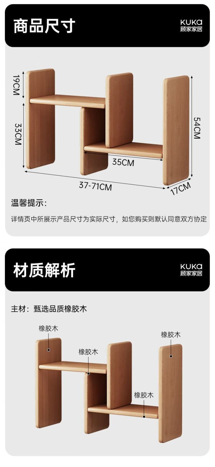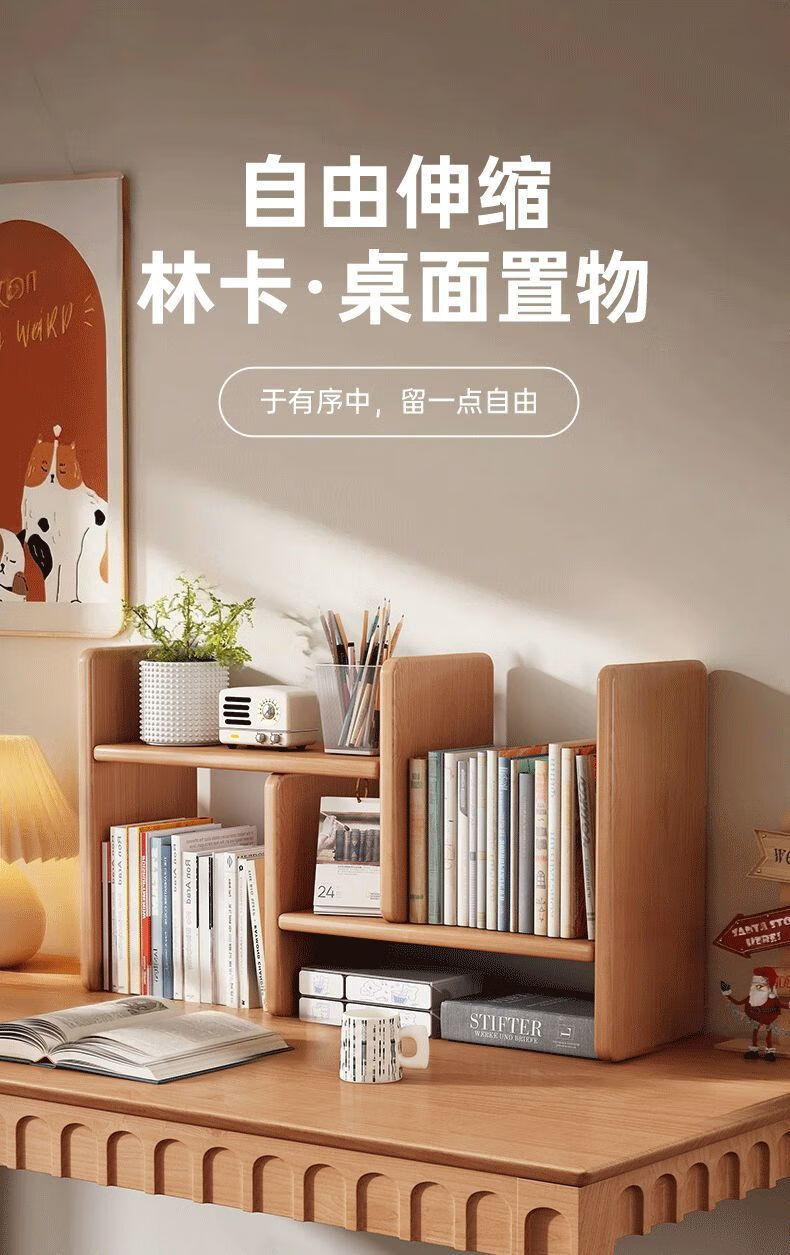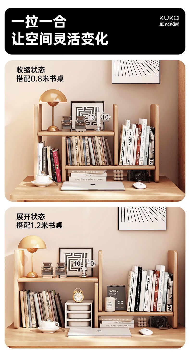 顾家家居桌面书架实木小型多层收纳架书房桌上收纳伸缩置物架立式转角书柜 橡胶木【37-71cm自由伸缩】胡桃色
