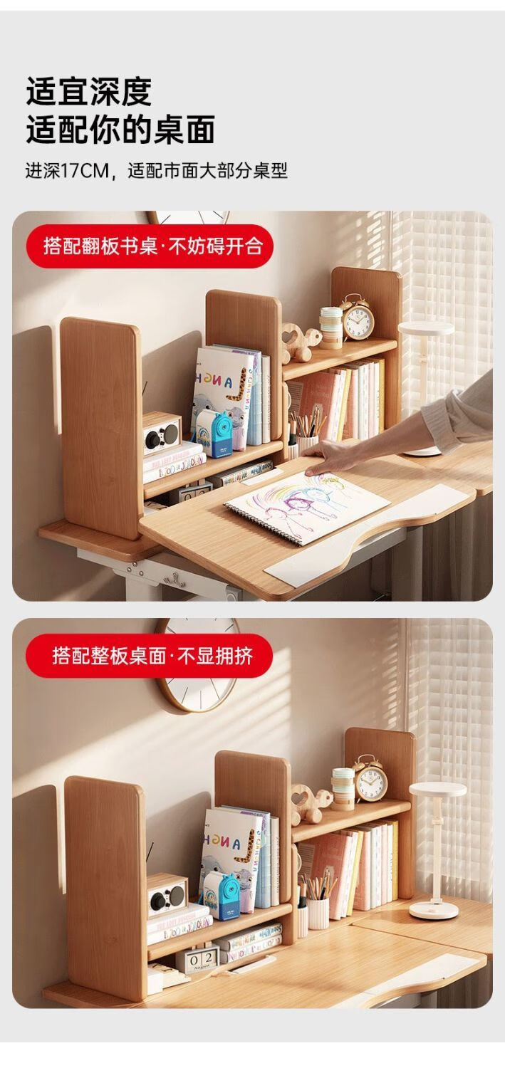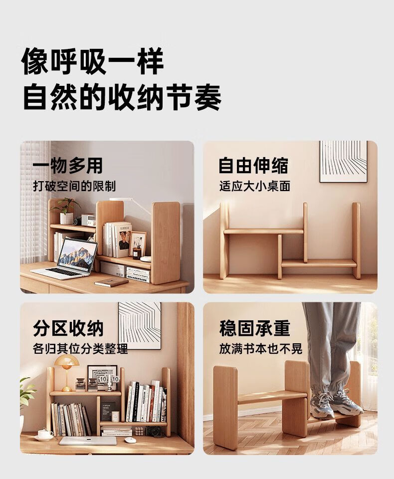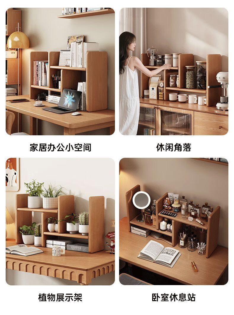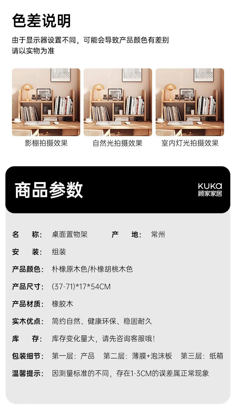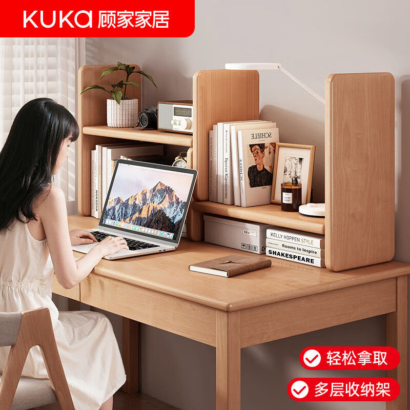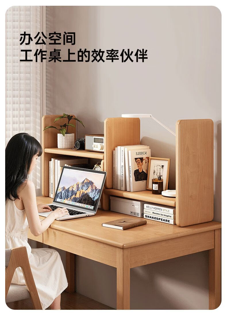 顾家家居桌面书架实木小型多层收纳架书房桌上收纳伸缩置物架立式转角书柜 橡胶木【37-71cm自由伸缩】胡桃色