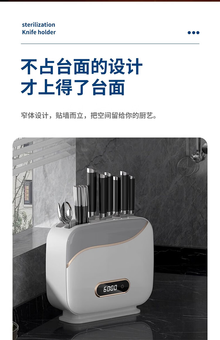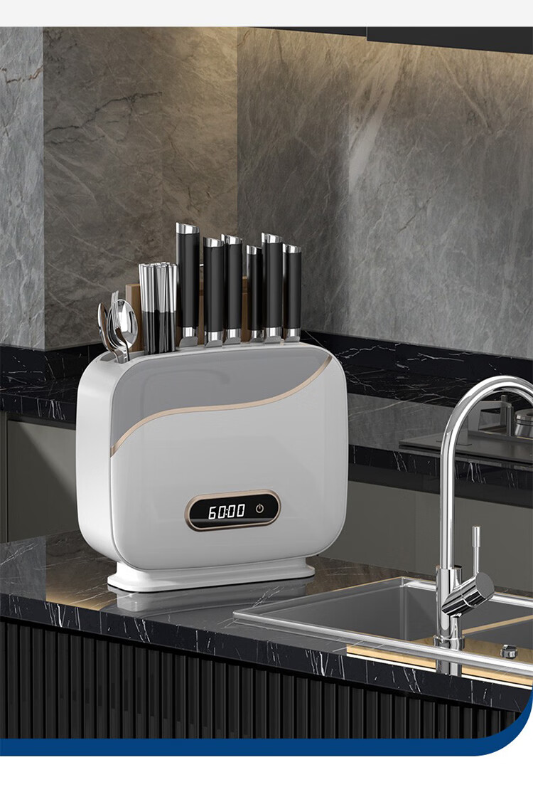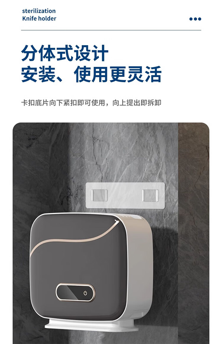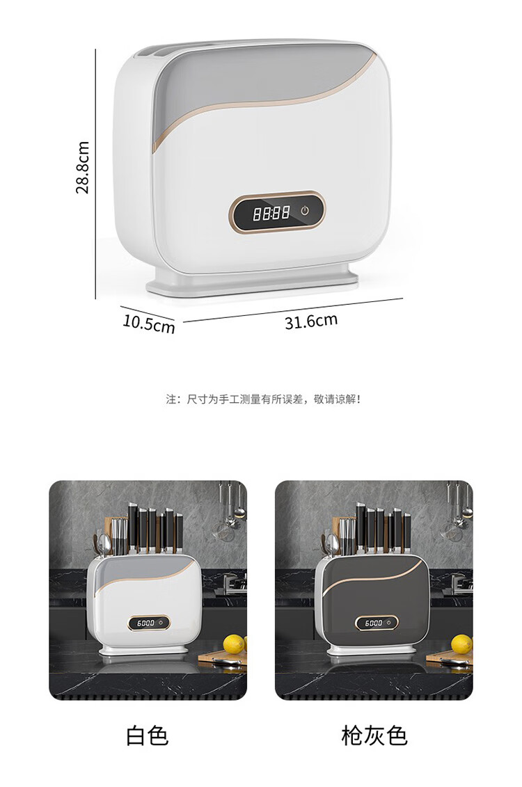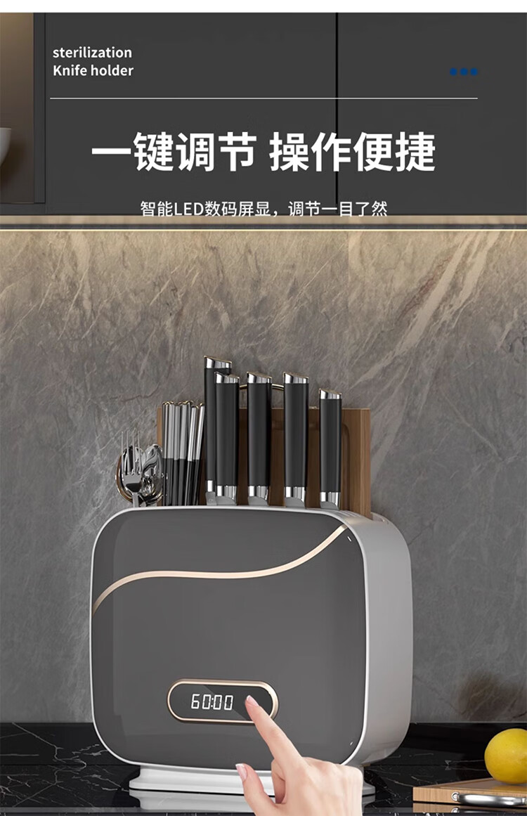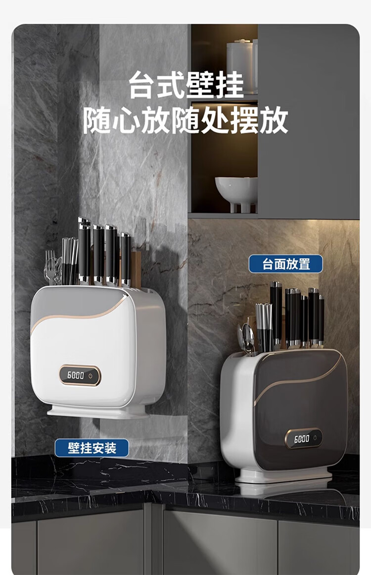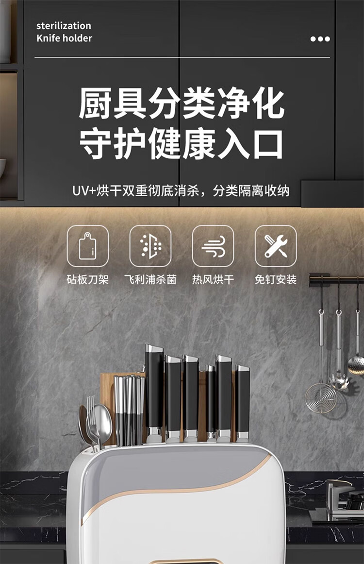 筏芯【德国】多功能壁挂式杀菌消毒刀架紫外线带烘干刀具筷子收纳消毒 枪灰色-【深紫外线杀菌+热风烘干】
