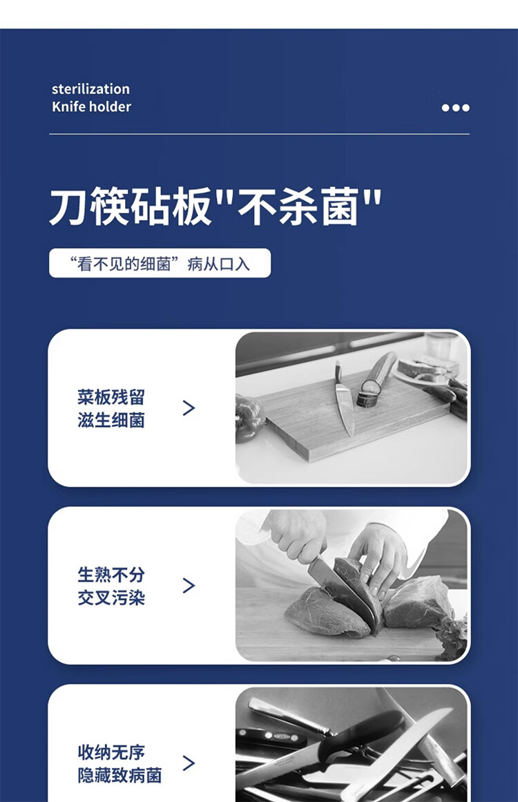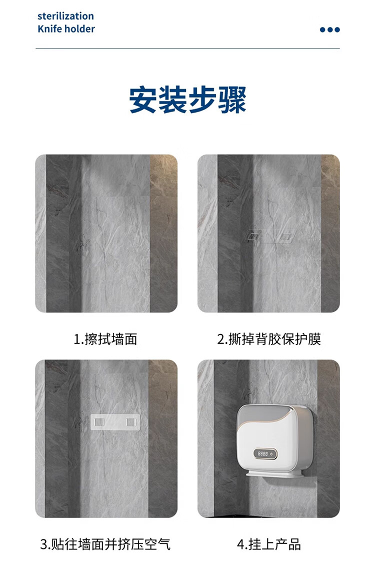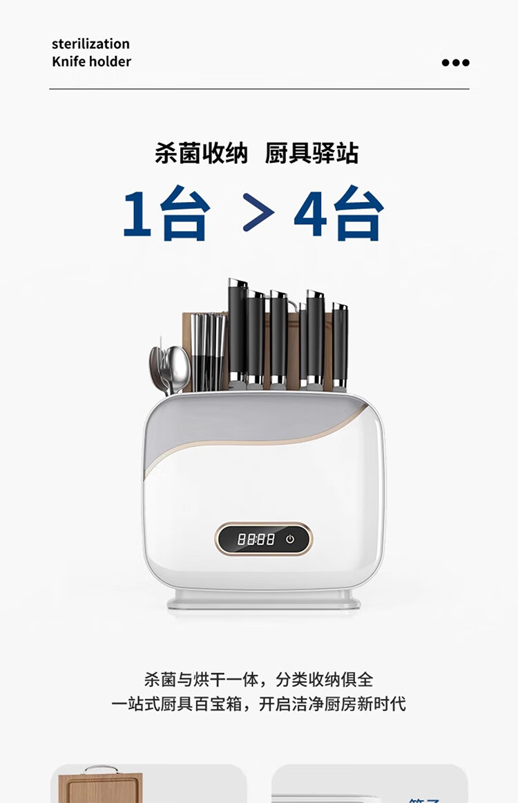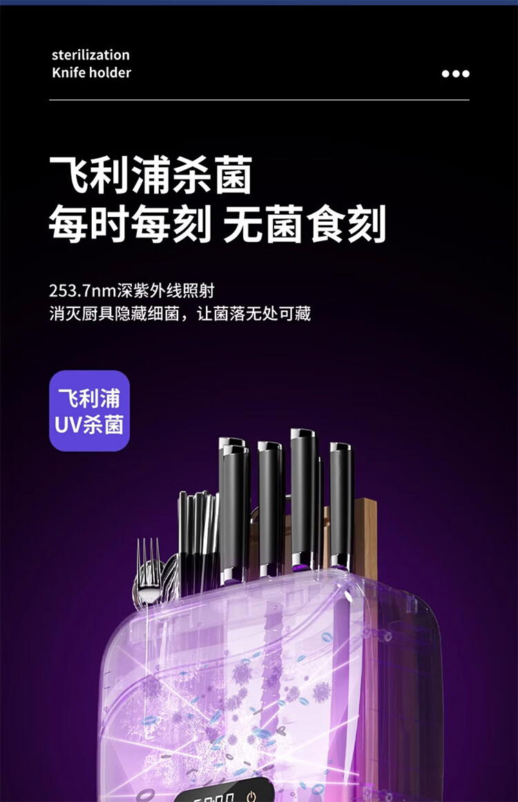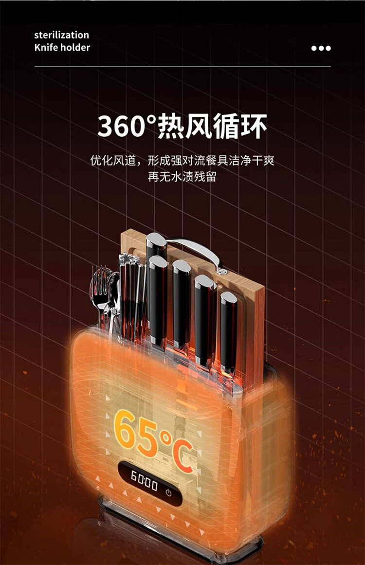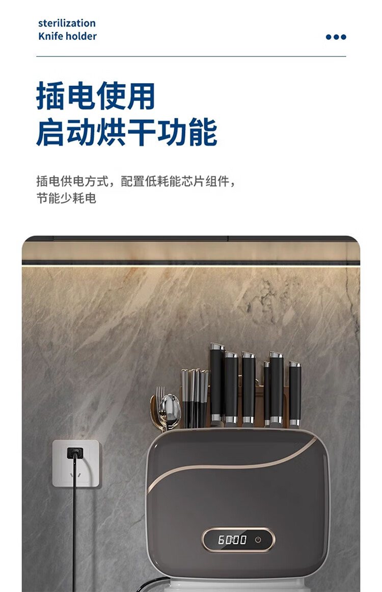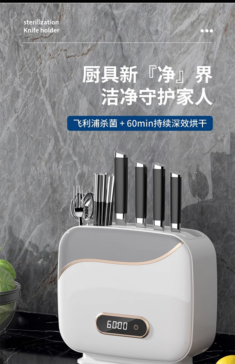 筏芯【德国】多功能壁挂式杀菌消毒刀架紫外线带烘干刀具筷子收纳消毒 枪灰色-【深紫外线杀菌+热风烘干】