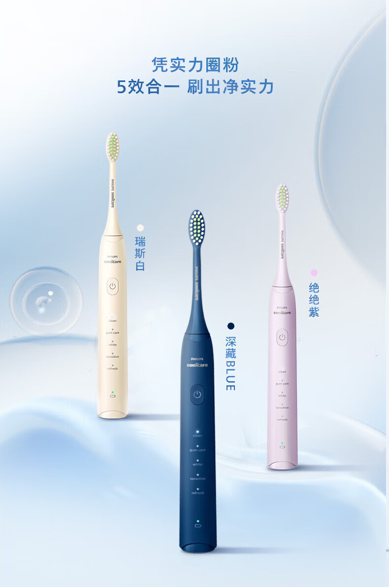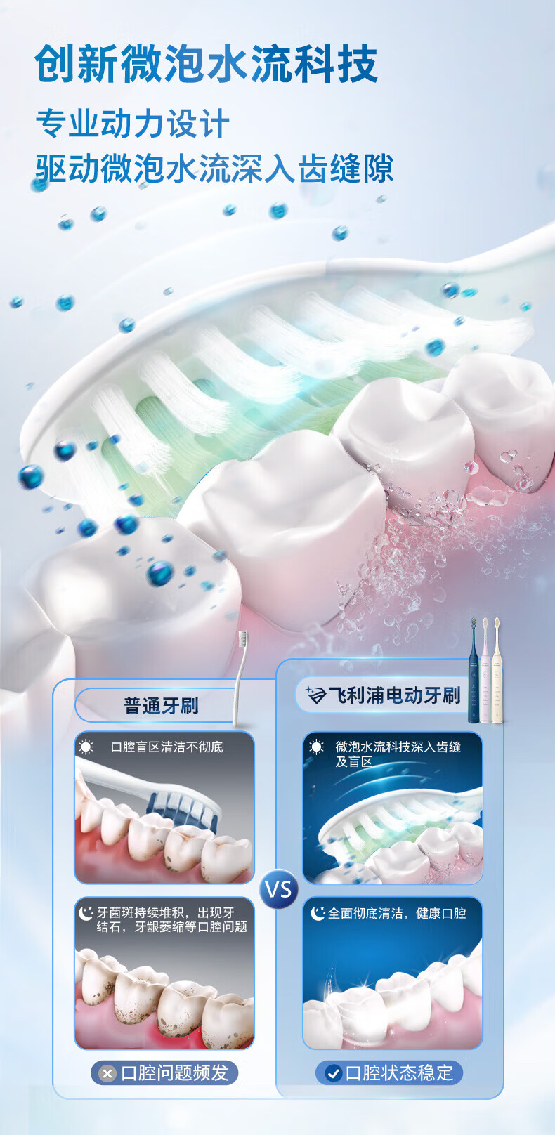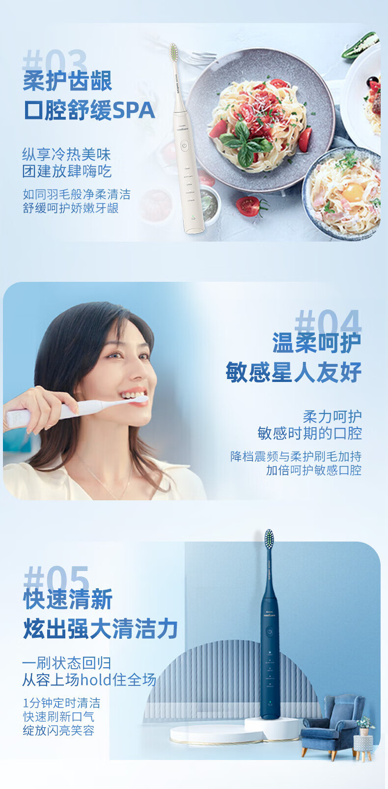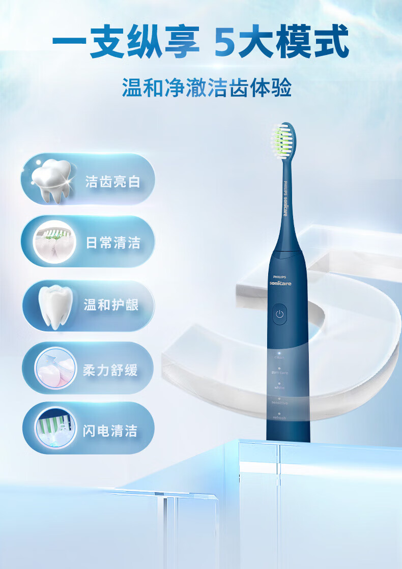 飞利浦(PHILIPS)电动牙刷牙医推荐声波震动牙刷情侣款护龈软毛清洁成人自动牙刷送男友送女友礼物 【买1送1】深藏BLUE