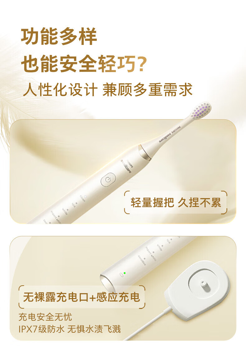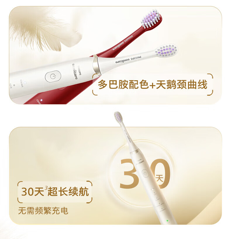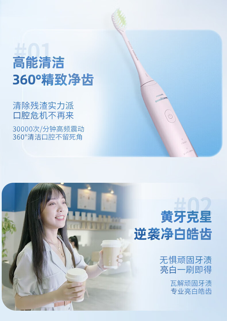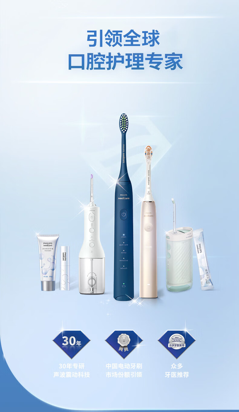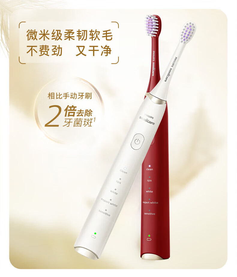 飞利浦(PHILIPS)电动牙刷牙医推荐声波震动牙刷情侣款护龈软毛清洁成人自动牙刷送男友送女友礼物 【买1送1】深藏BLUE