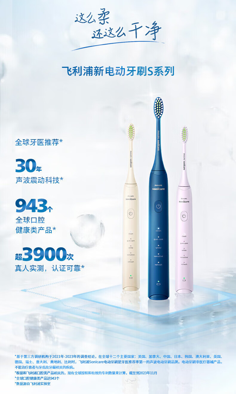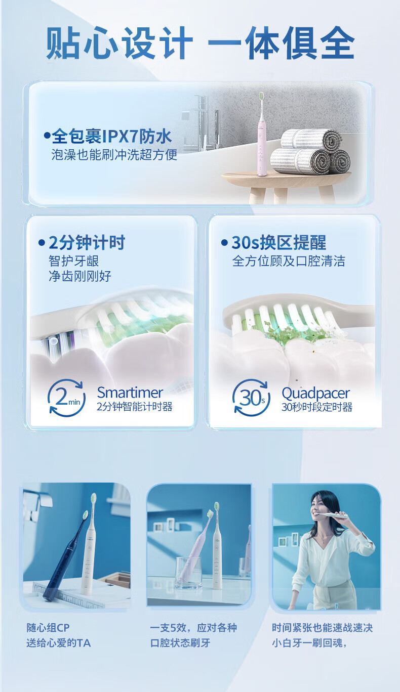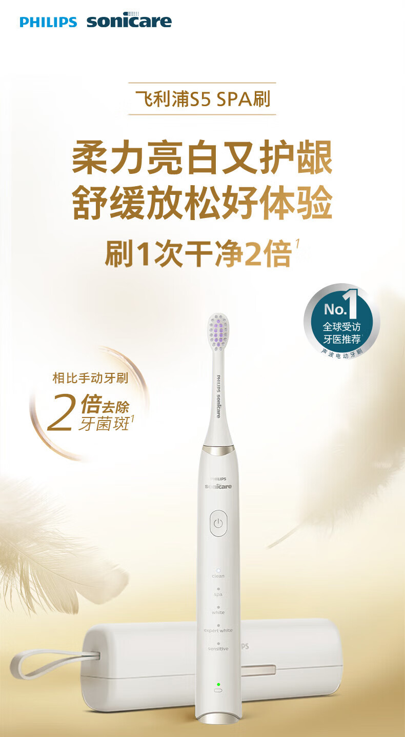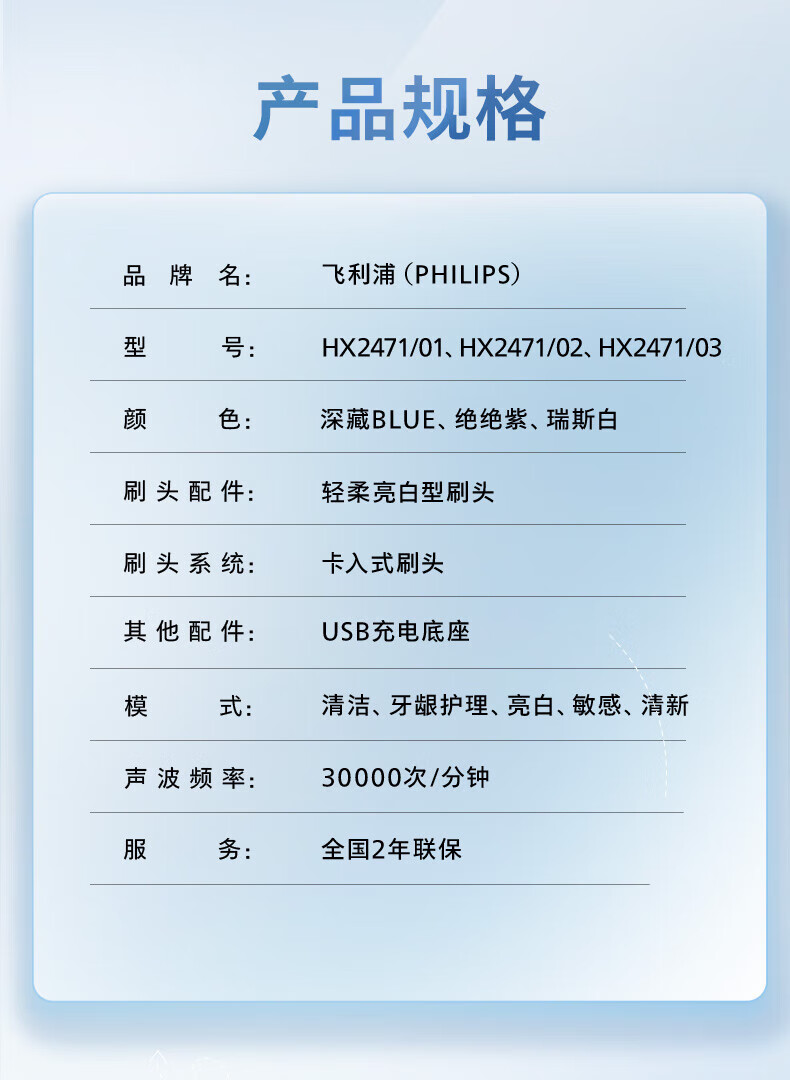 飞利浦(PHILIPS)电动牙刷牙医推荐声波震动牙刷情侣款护龈软毛清洁成人自动牙刷送男友送女友礼物 【买1送1】深藏BLUE