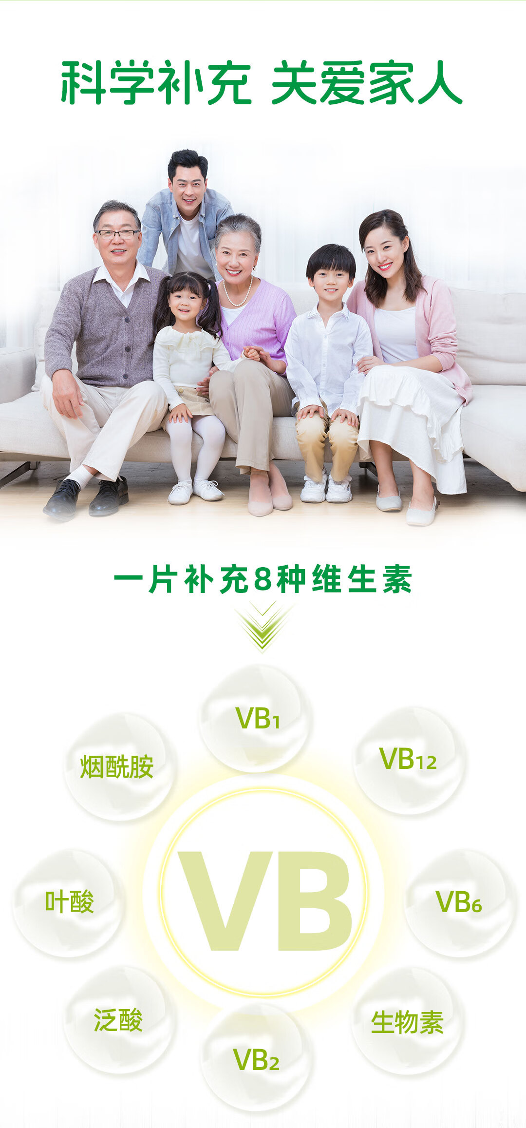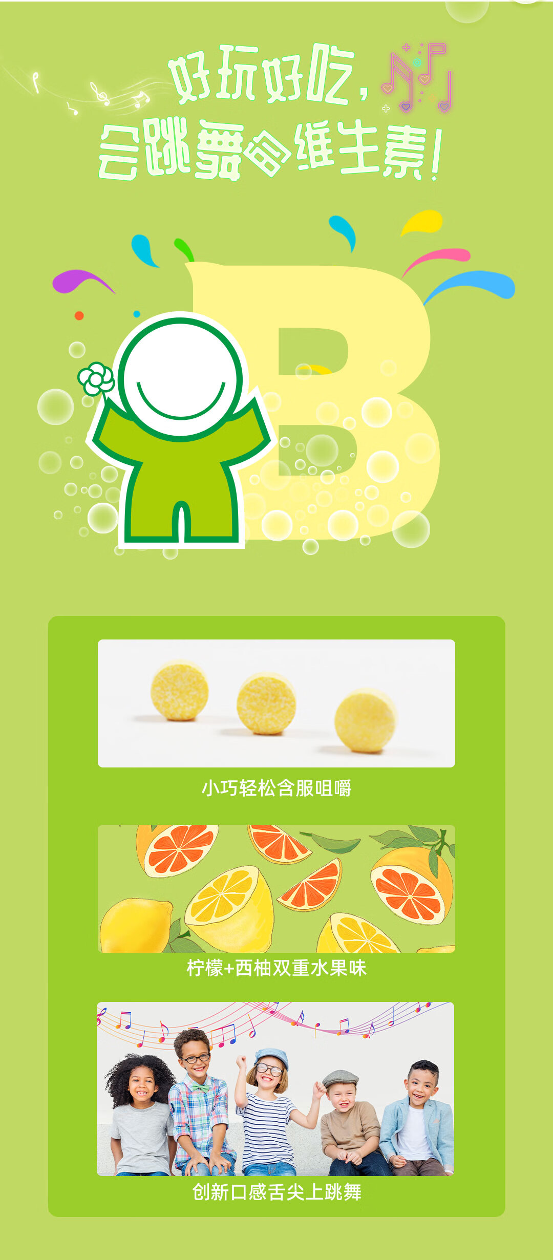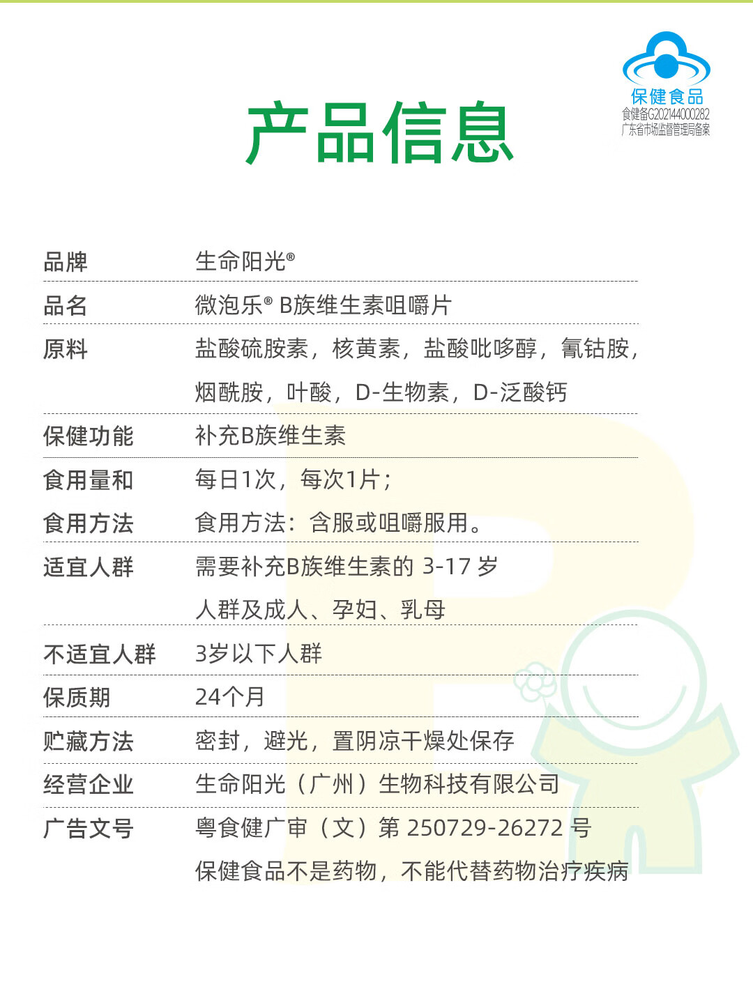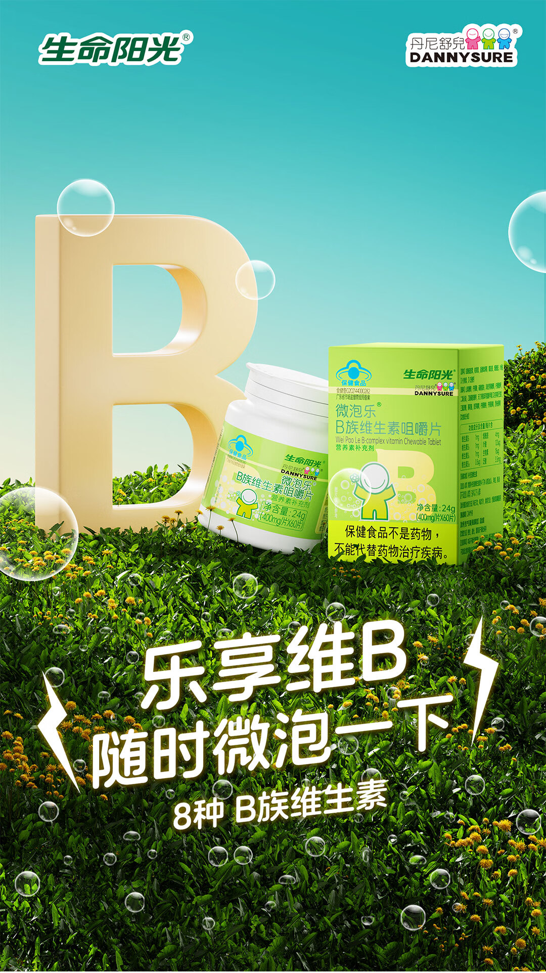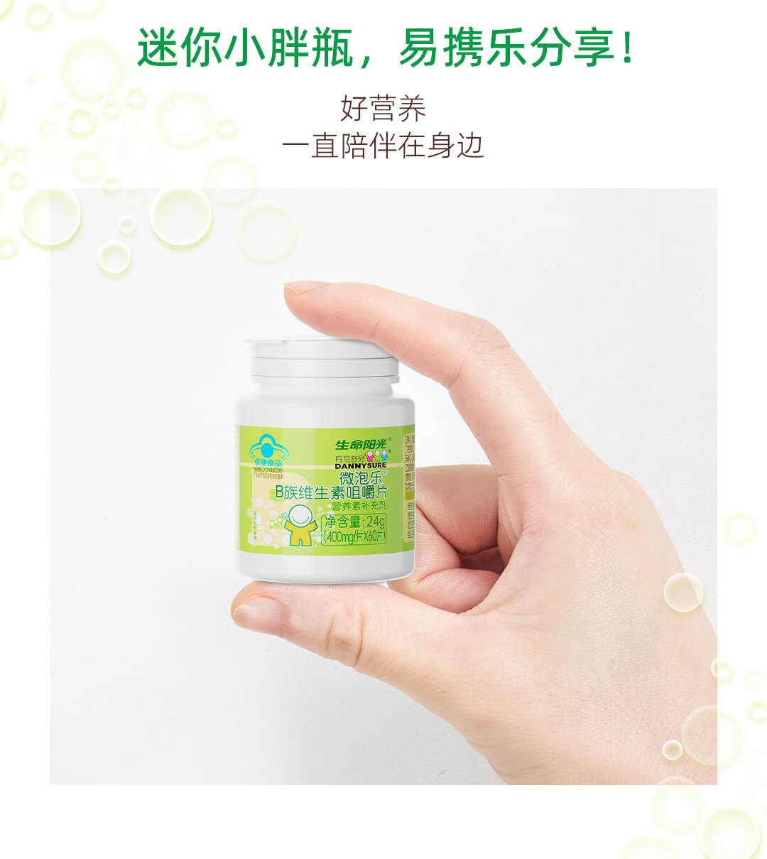 生命阳光儿童成人维乐泡8种复合维生素B族咀嚼片400mg*60片