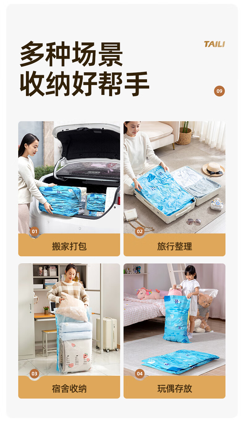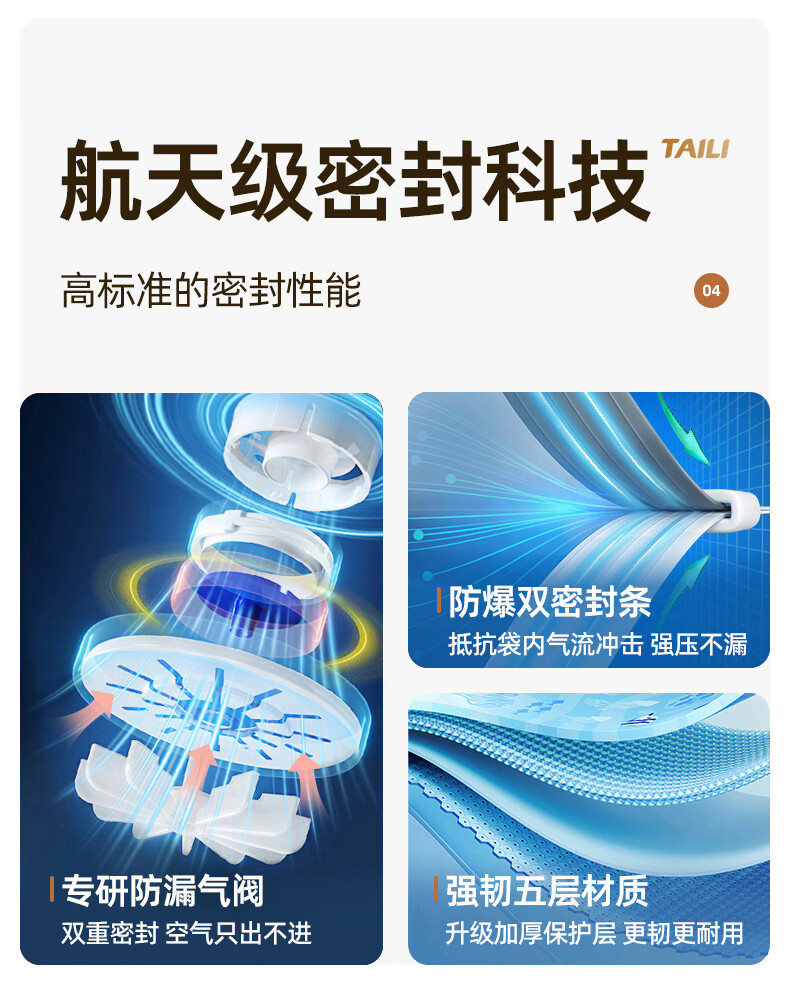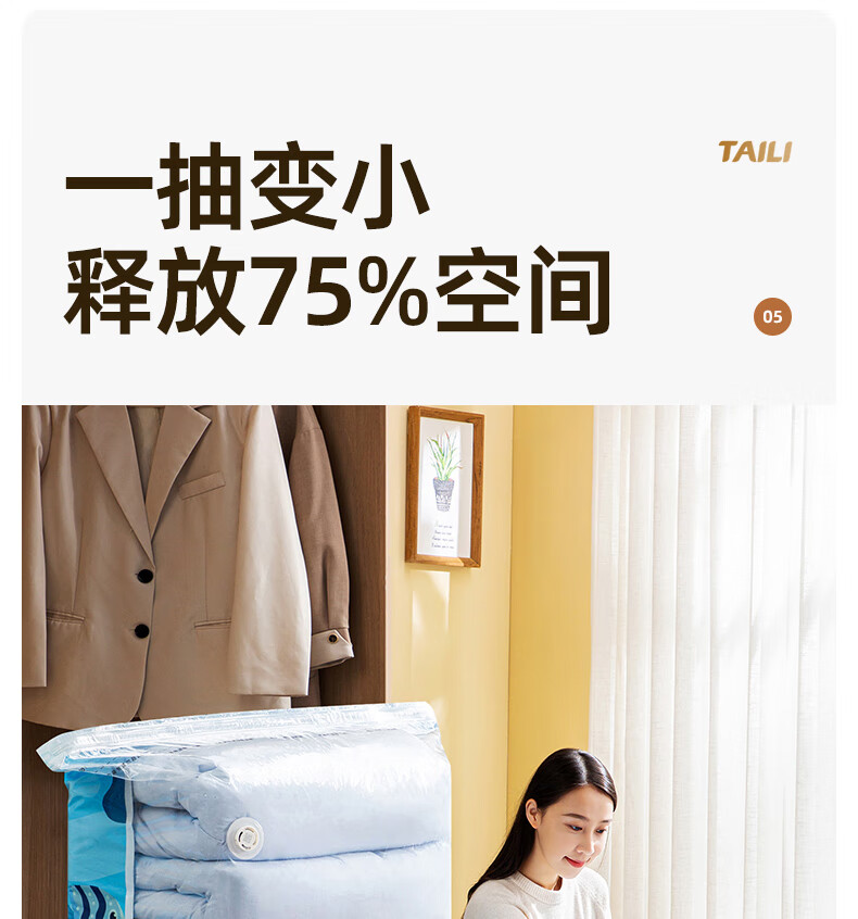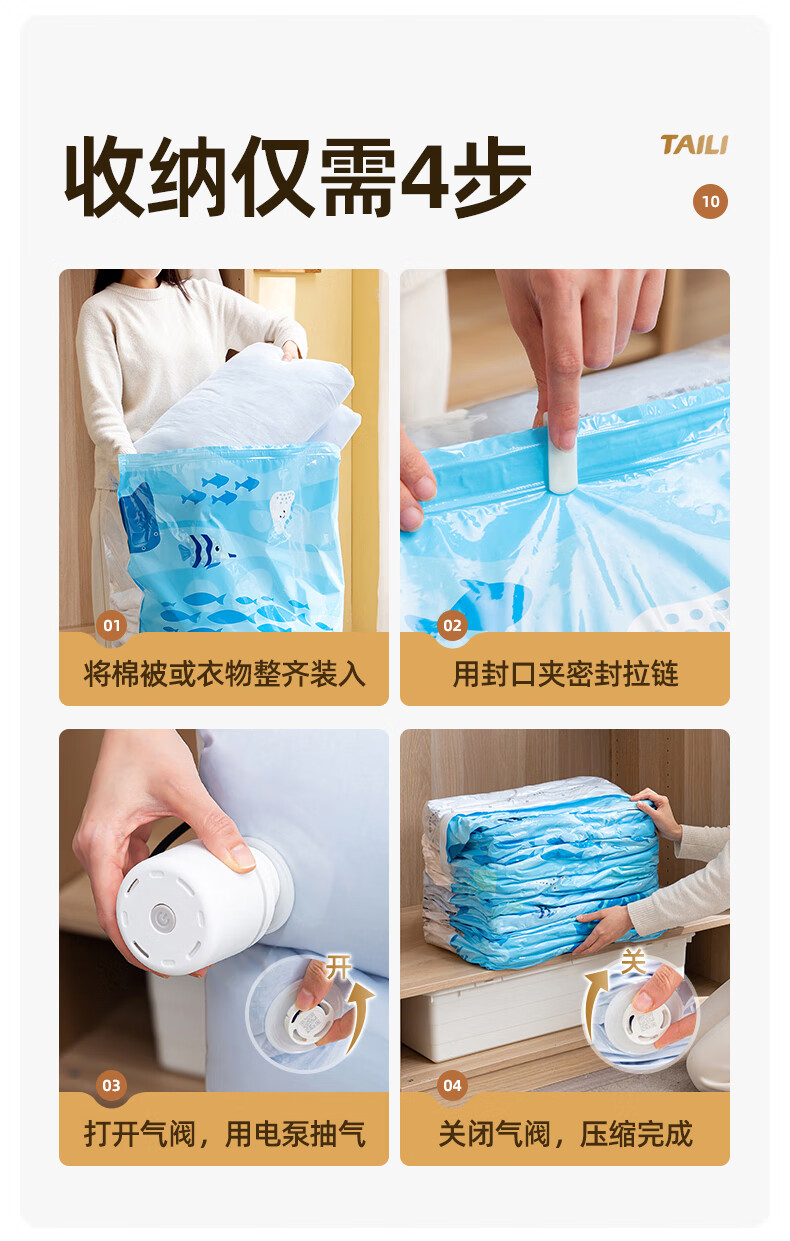 太力(TAILI)真空压缩收纳袋电动气泵抽真空被子羽绒衣服抽压两用 2特大立体5中立体【7件套】