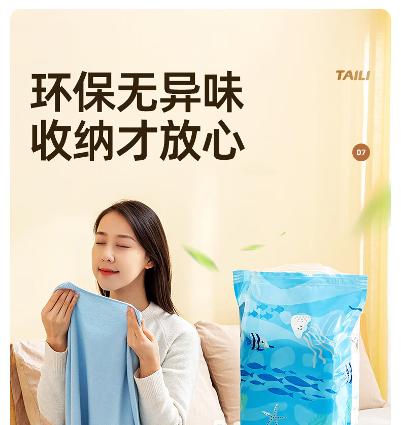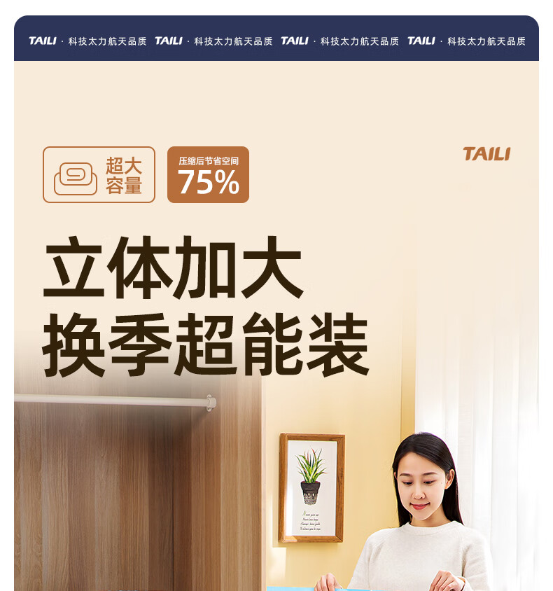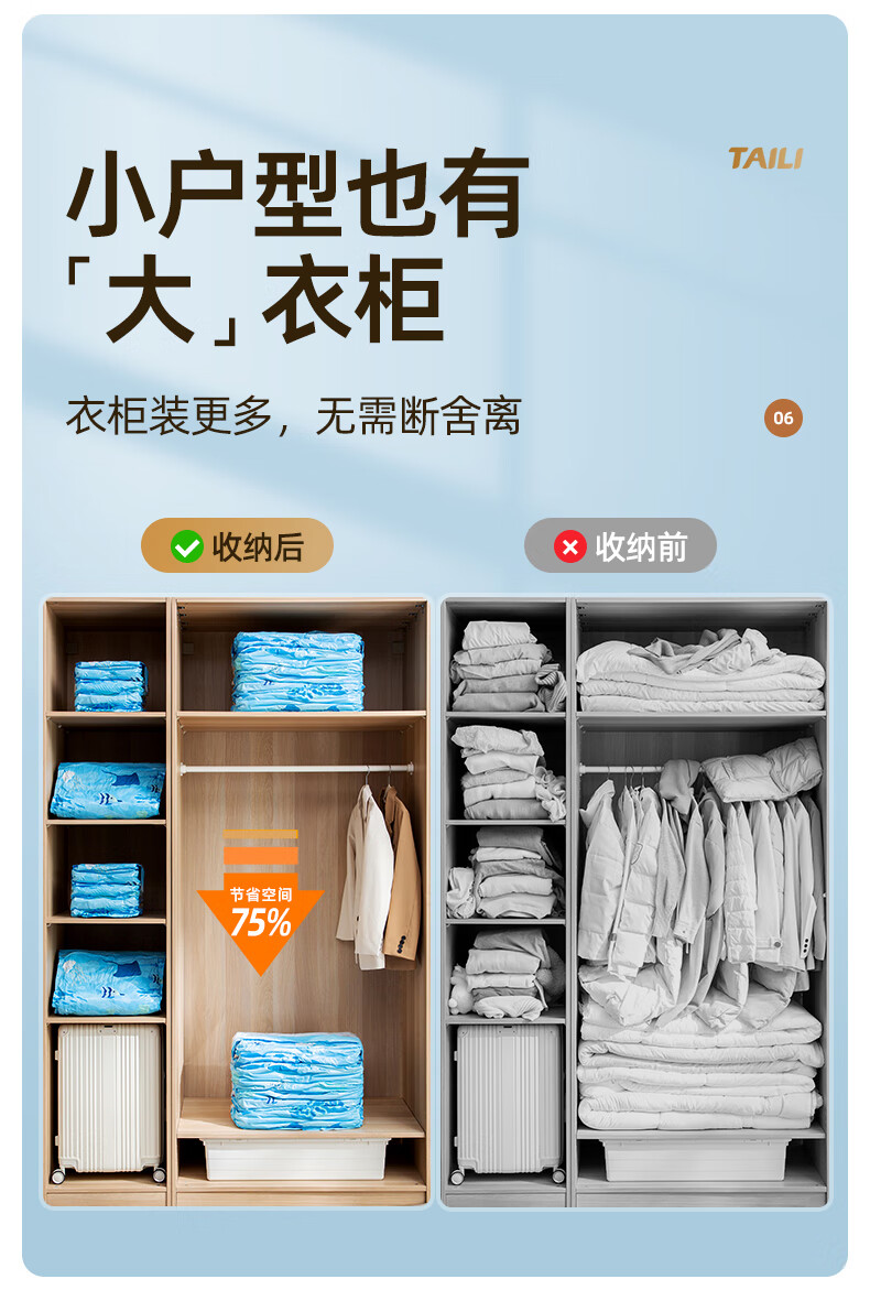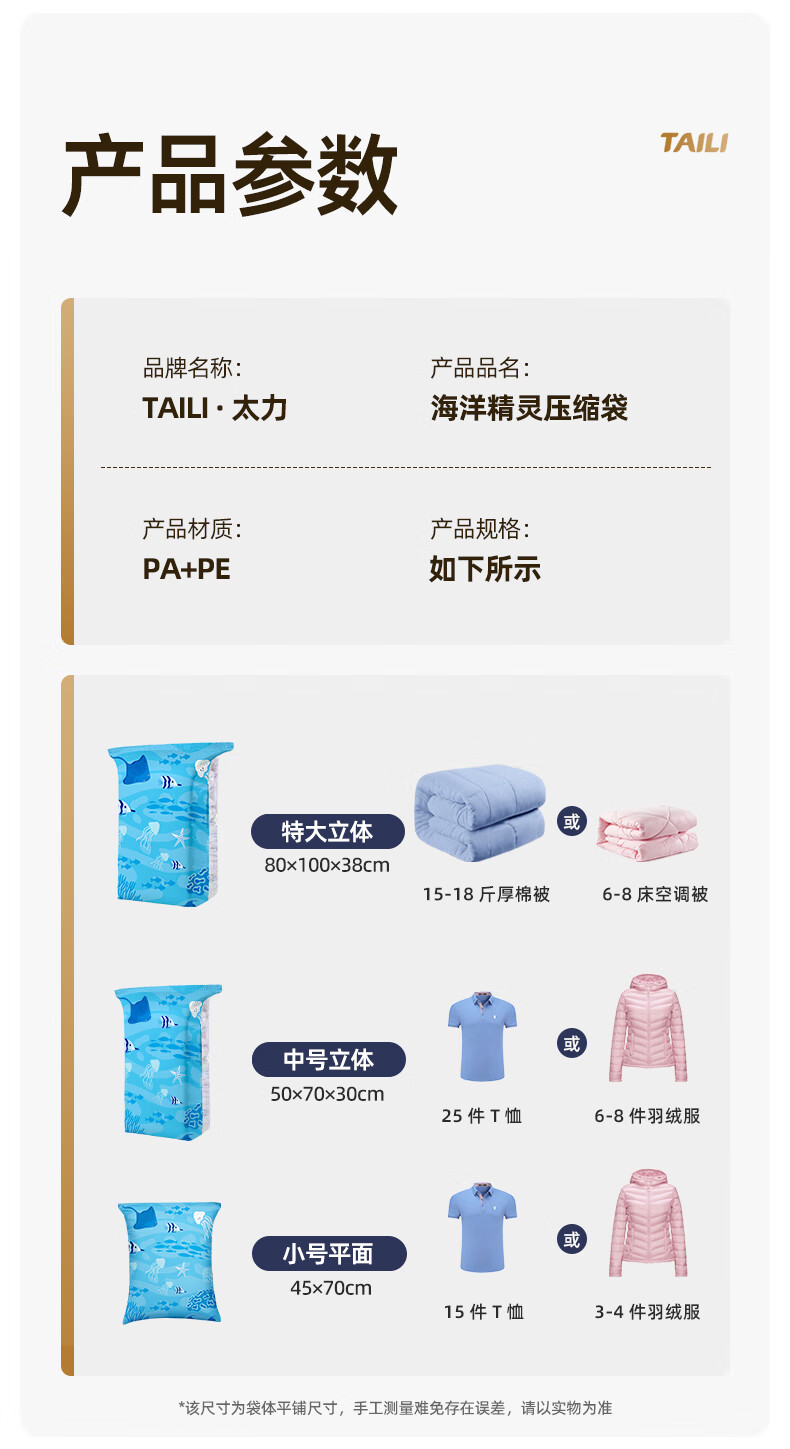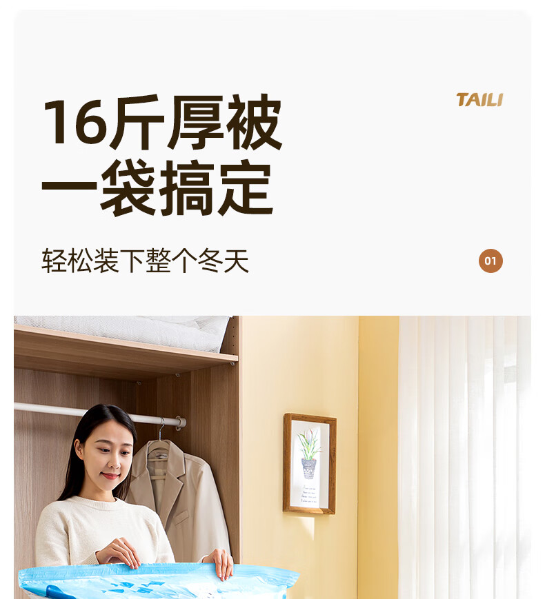 太力(TAILI)真空压缩收纳袋电动气泵抽真空被子羽绒衣服抽压两用 2特大立体5中立体【7件套】
