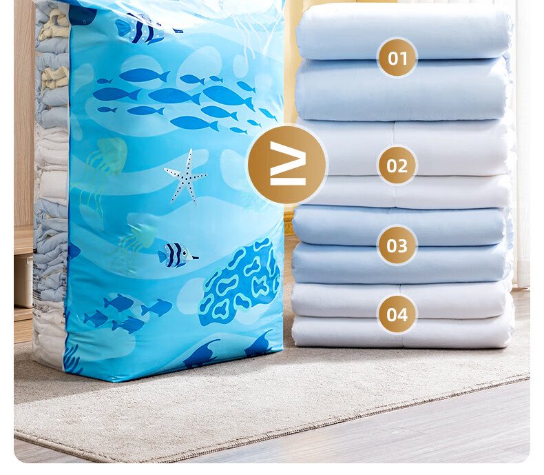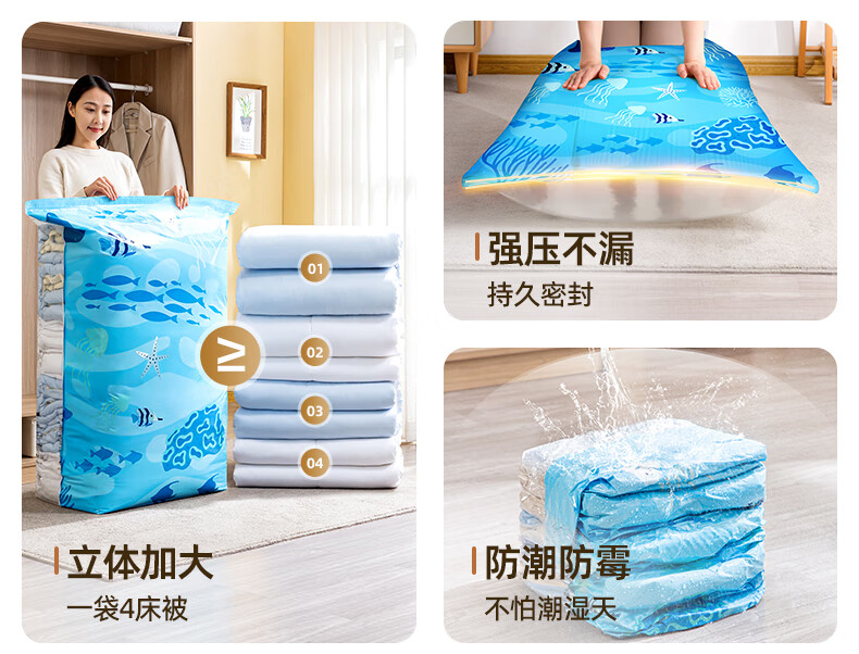 太力 真空压缩收纳袋免抽气真空衣服大号衣物棉被加厚立体整理袋 【8件套】2特大4中立体2大手卷