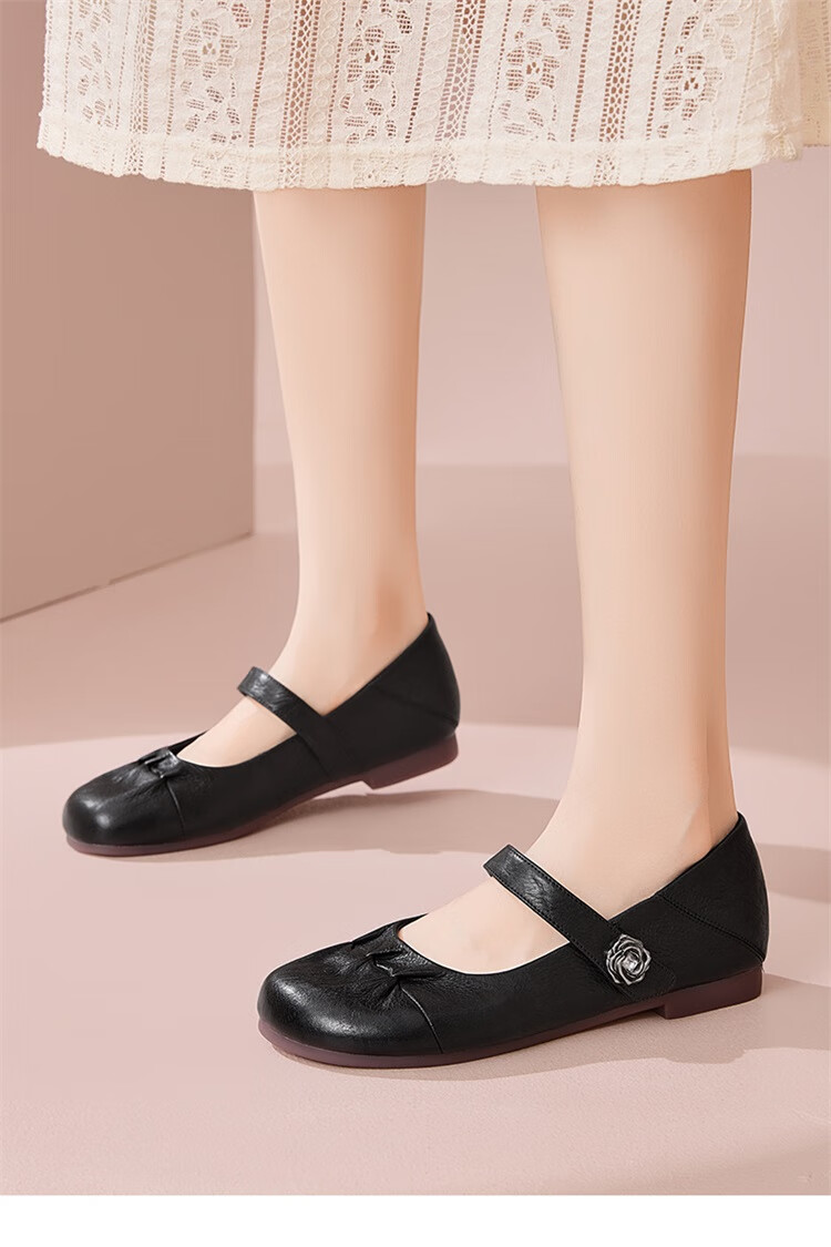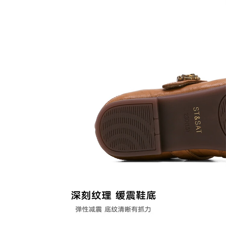 森达乐福鞋女鞋春秋新款商场同款通勤一脚蹬小皮鞋XCA01CA4 经典款-黑色 37