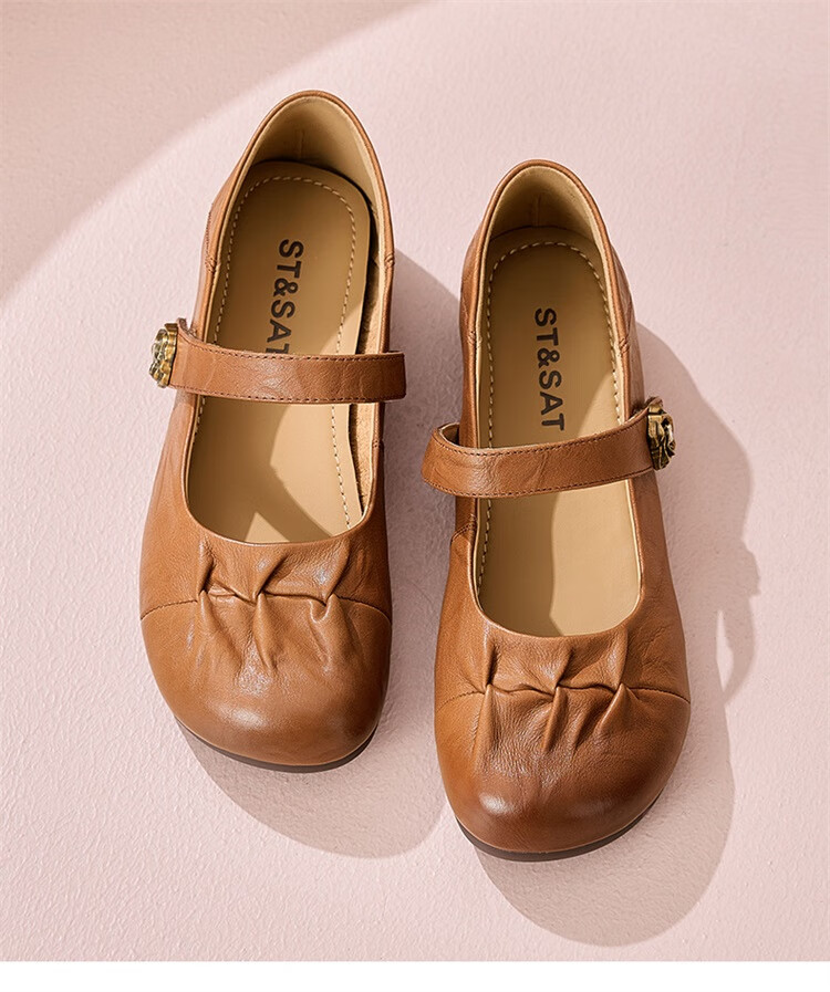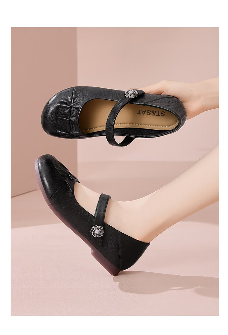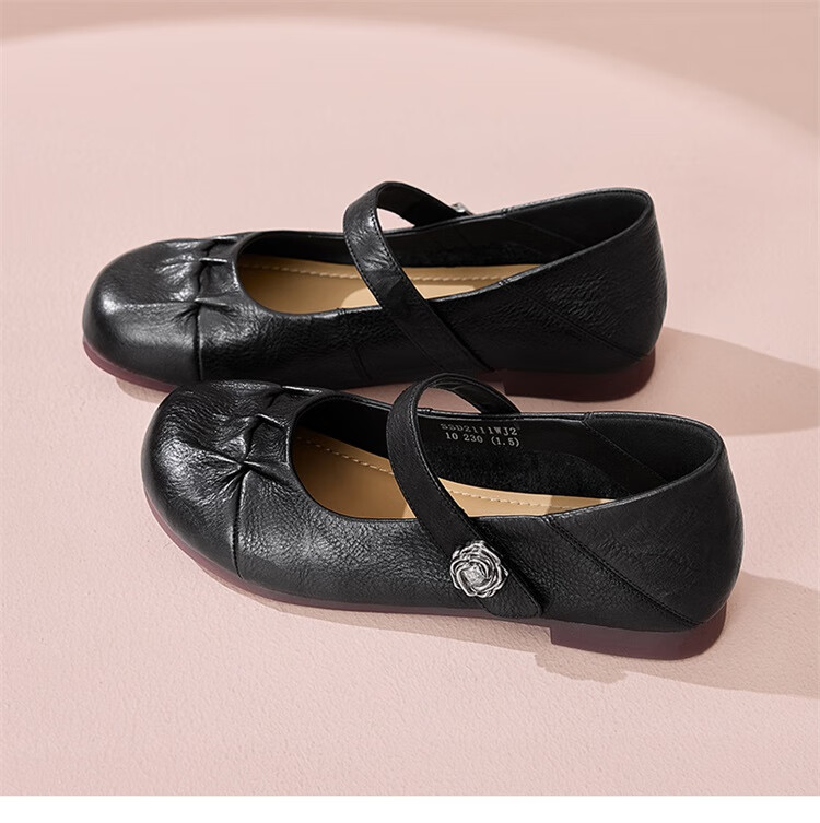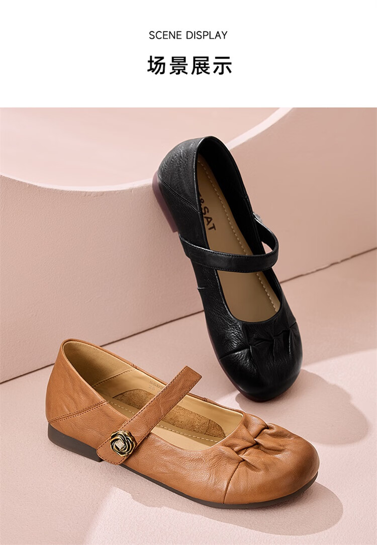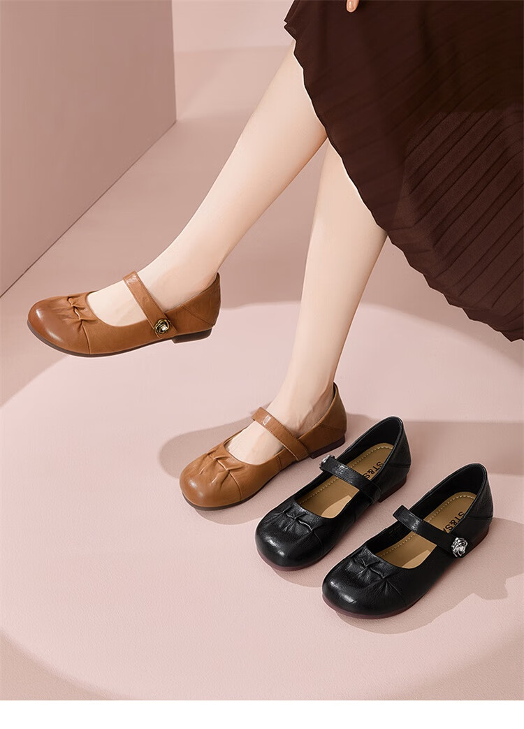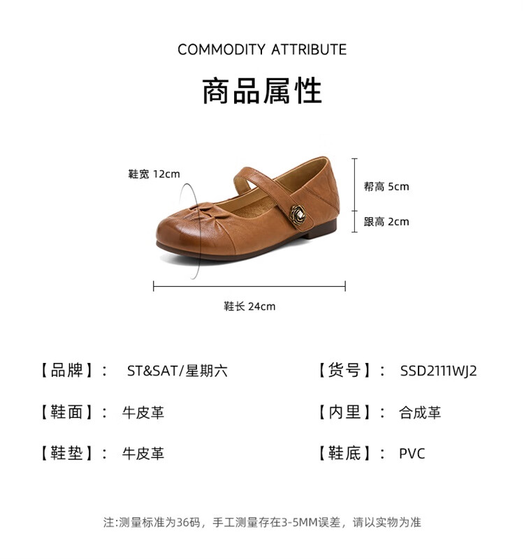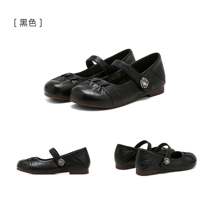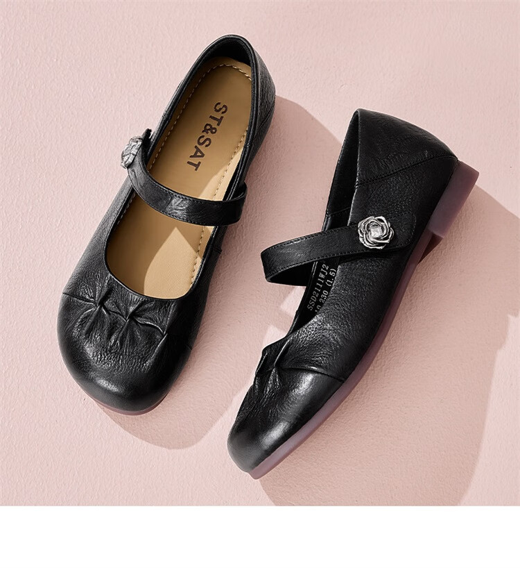 星期六时尚圆头一字带单鞋2025夏季新款百搭女鞋MTSSD2111WJ2 黑色 35
