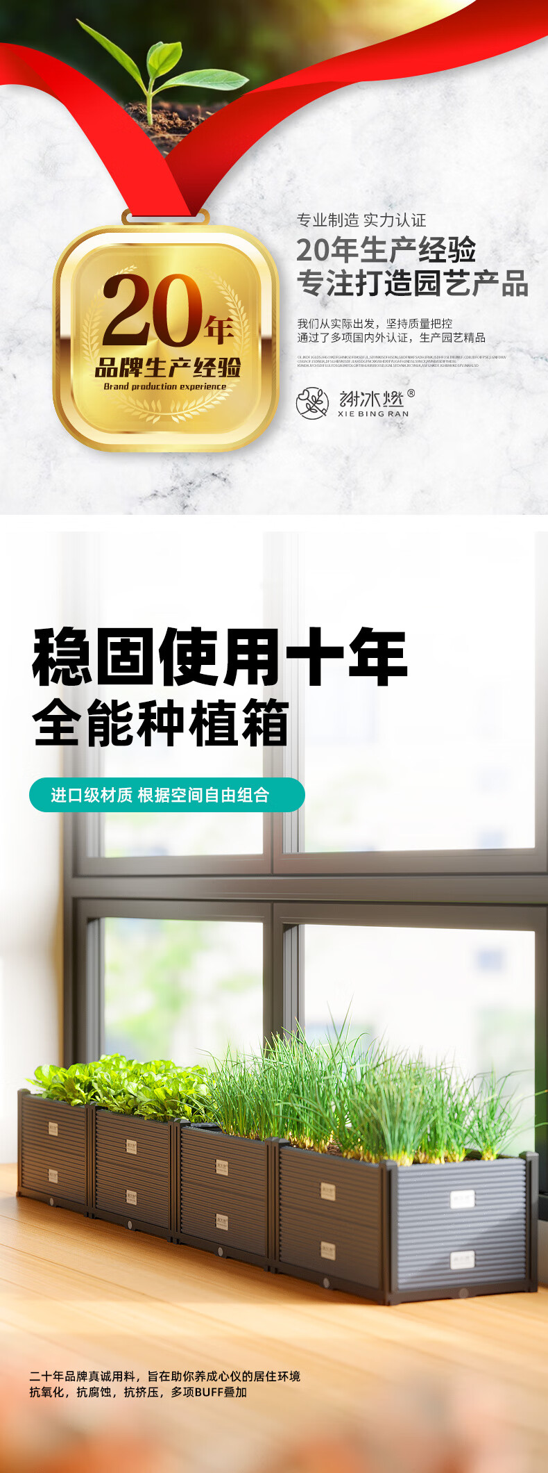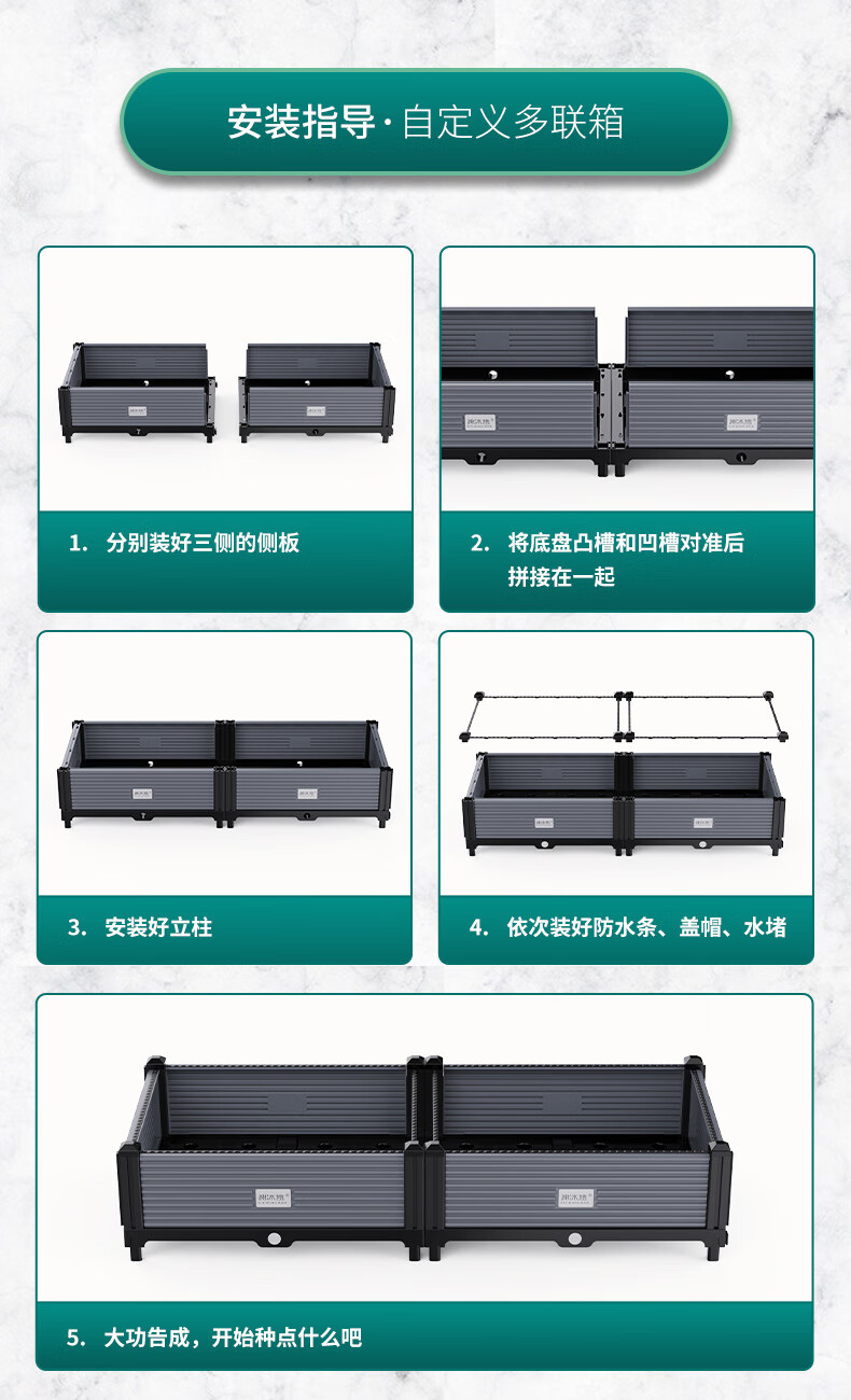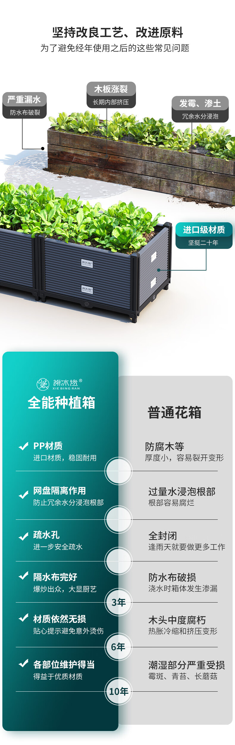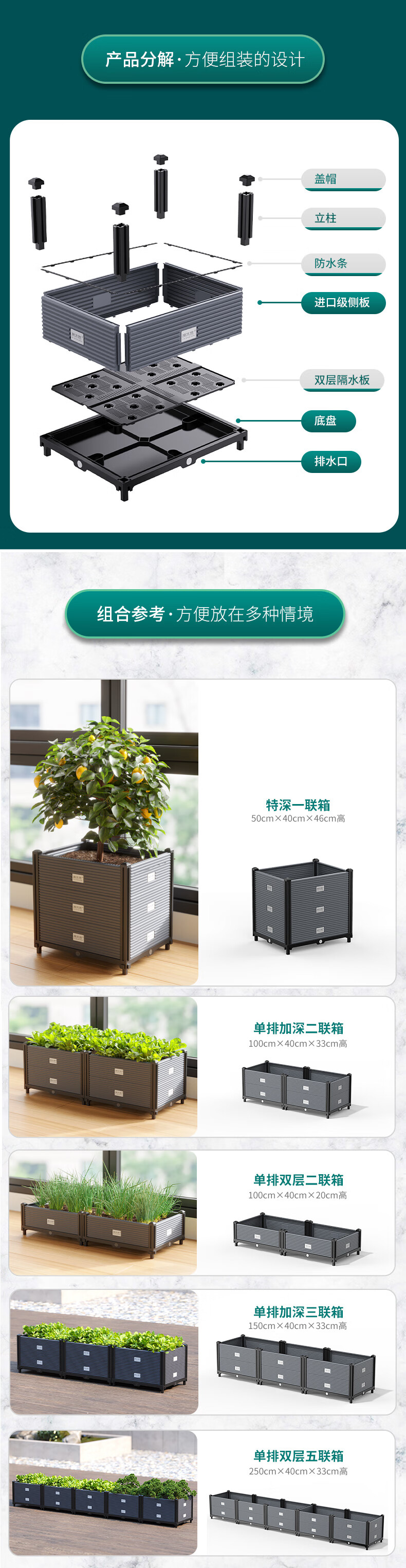 谢冰燃种植箱塑料花盆大号花箱户外长方形阳台种菜蔬菜盆种植神器 特深1联箱