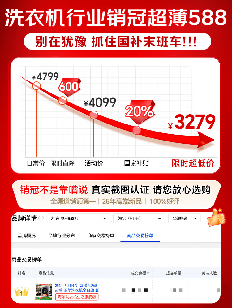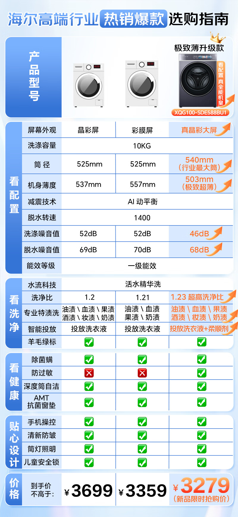 海尔(Haier)云溪4.0极致超薄款 滚筒洗衣机全自动 真正纯平嵌懒人大容量588 一级能效540大筒精华洗 国家补贴 10KG单洗+双智投+540大筒+1.23高洗净比