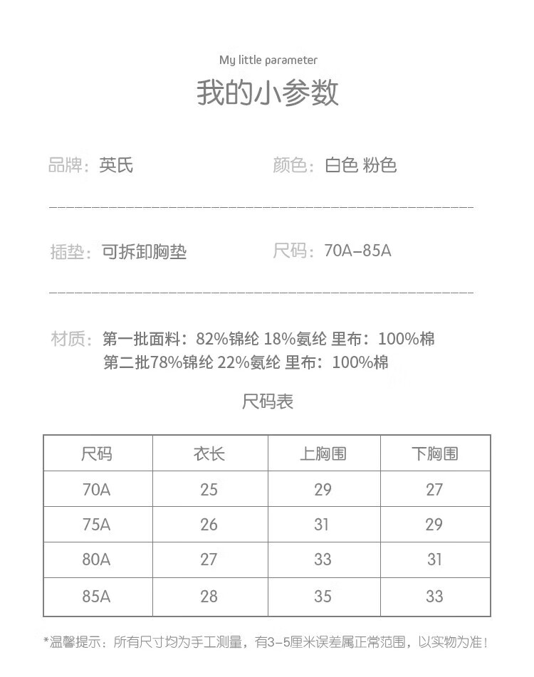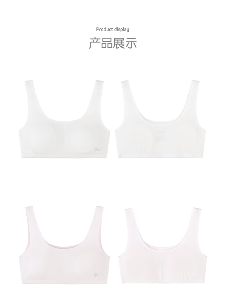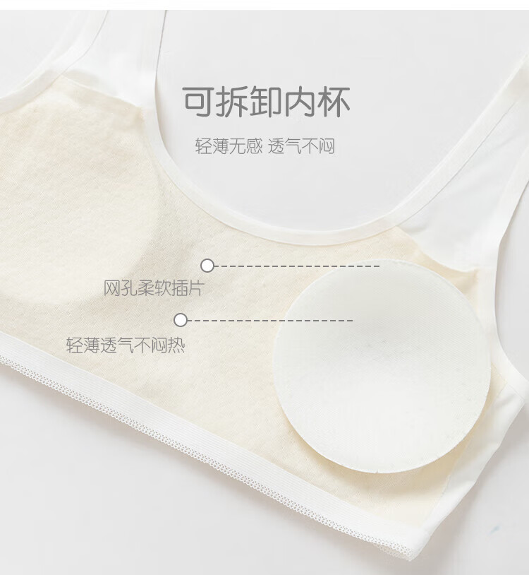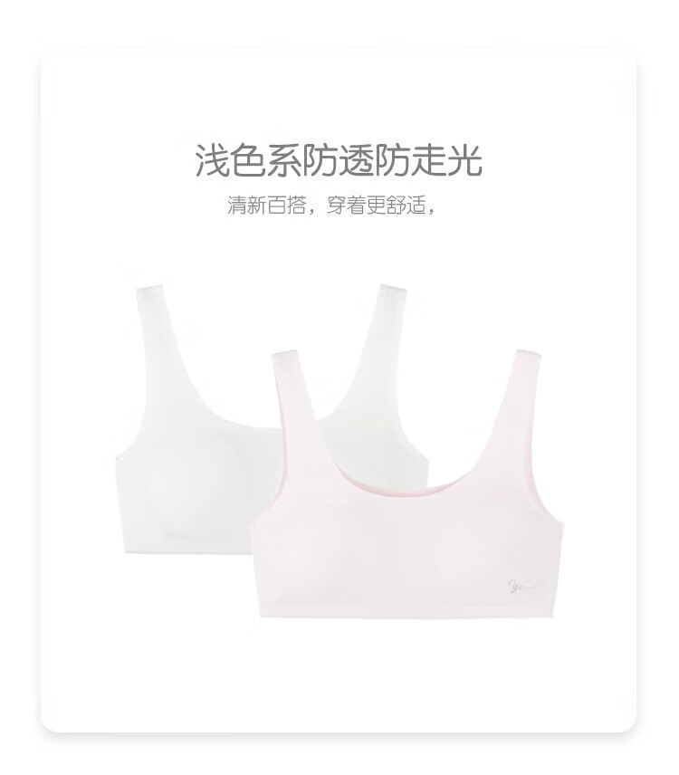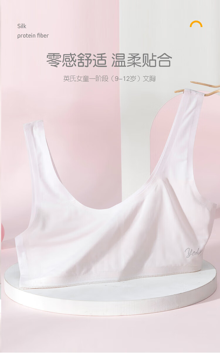 英氏儿童内衣女发育期9-12岁学生透气内衣女童无痕贴合少女文胸背心 白色无痕文胸 160 【80A】