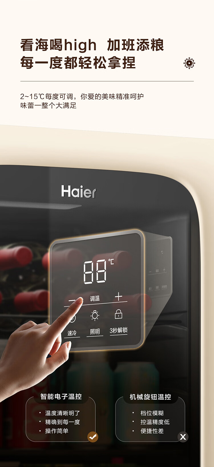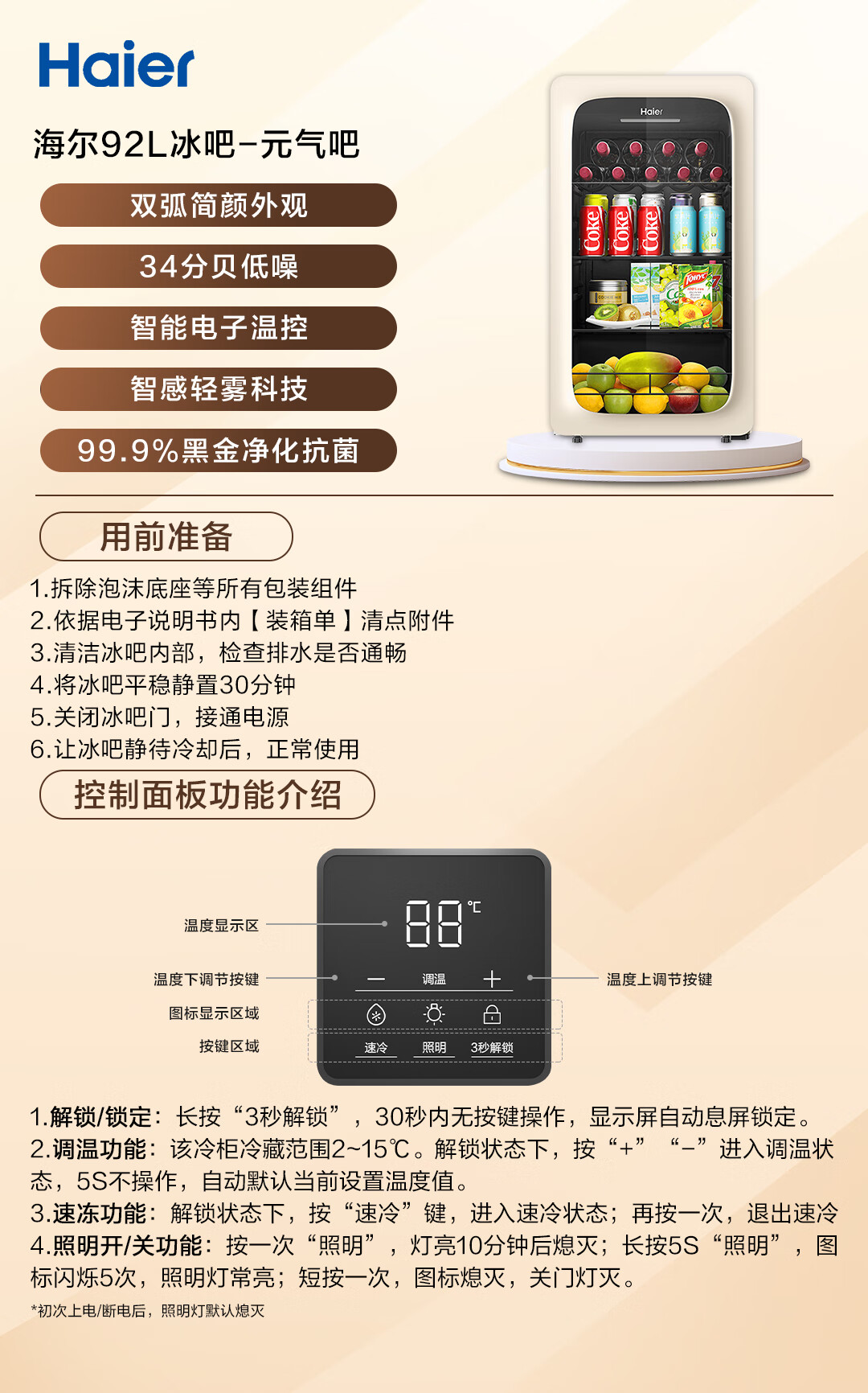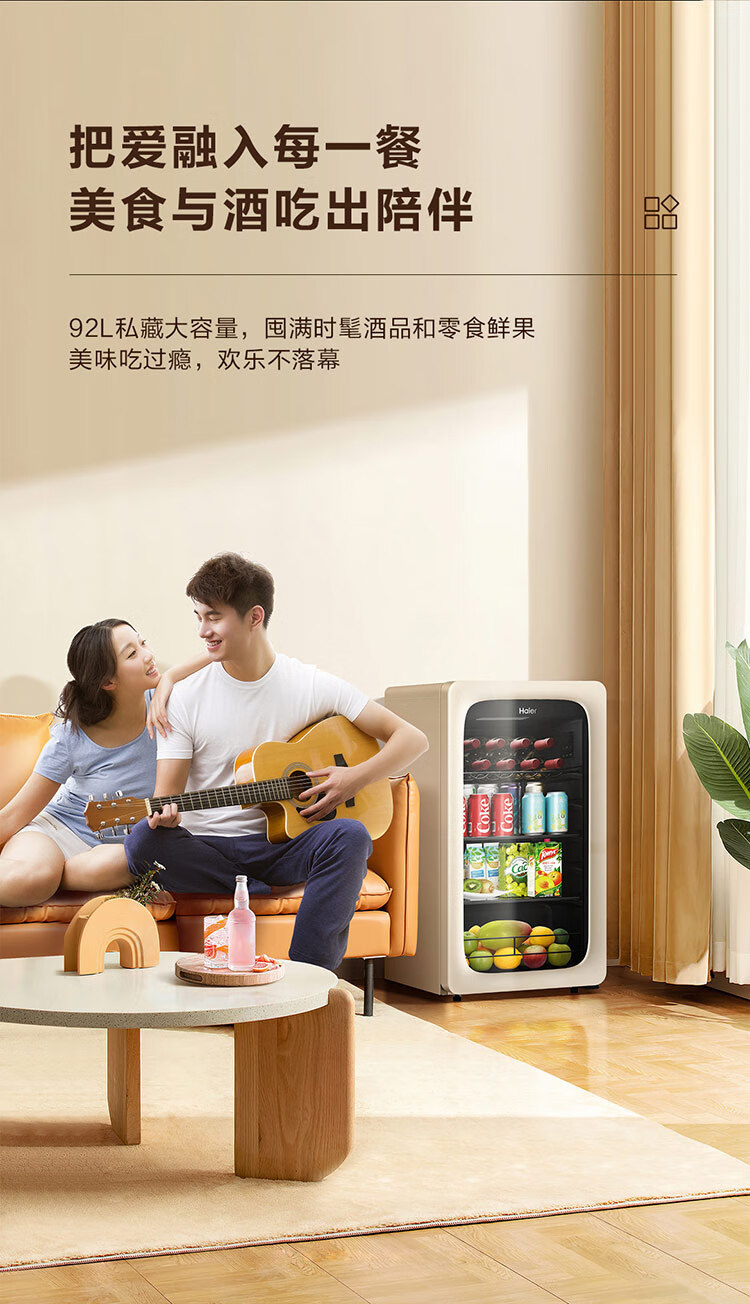 海尔(Haier)92升元气冰吧家用 客厅茶叶冷藏柜保鲜柜办公室小冰箱小型迷你饮料水果展示柜LC-92LH9EY1国家补贴