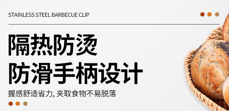 LZJV加粗铆钉不锈钢食品夹面包夹烧烤夹烘培防烫厨房夹子烤鱼商用 9寸/21.7厘米 一支装