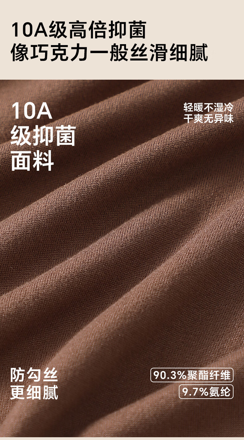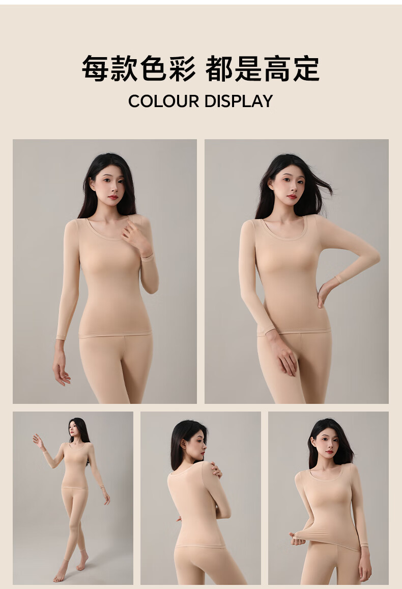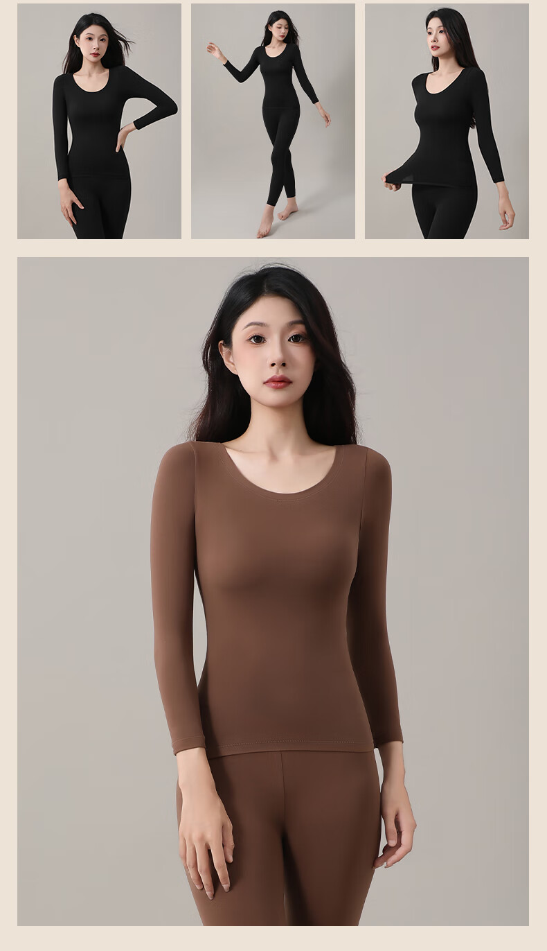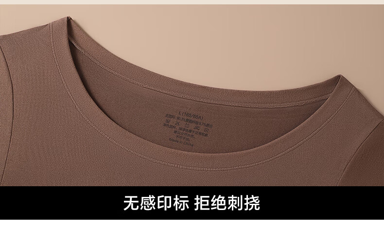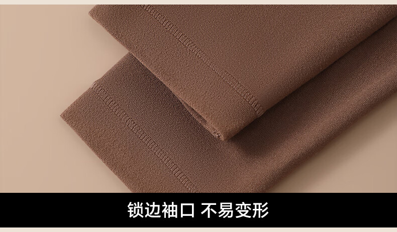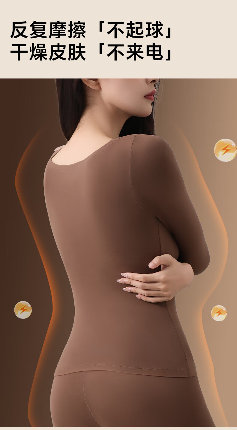 ROVO超薄保暖内衣女亲肤防静电隐形肌底美肤衣发热孕秋衣秋裤套装 可可棕+粉底肤【10A抗菌 适用于5℃~15℃】 L【适用于90-120斤】