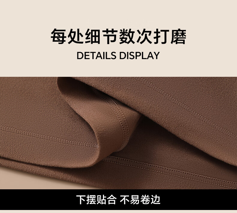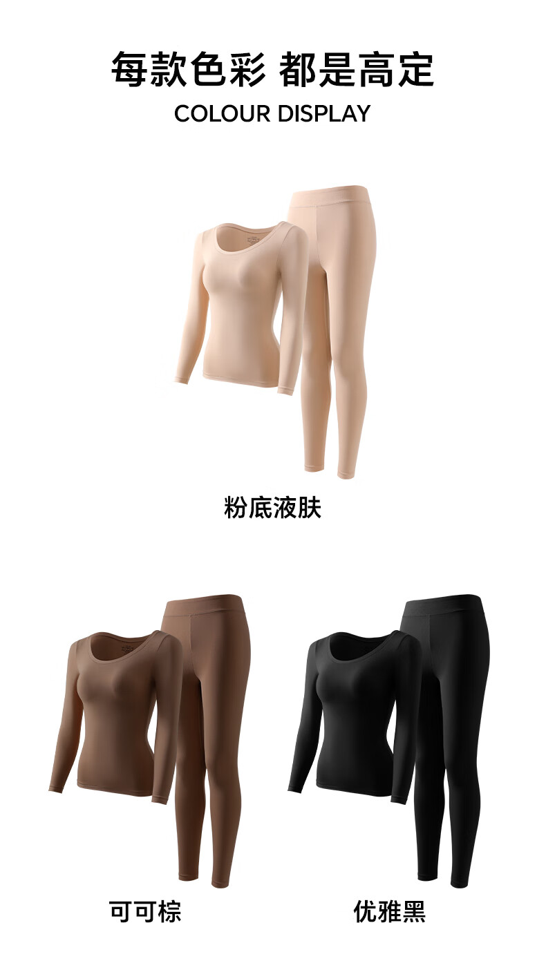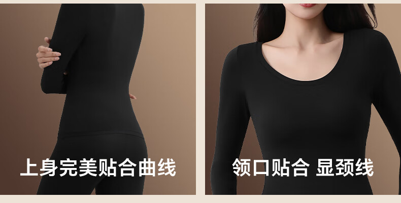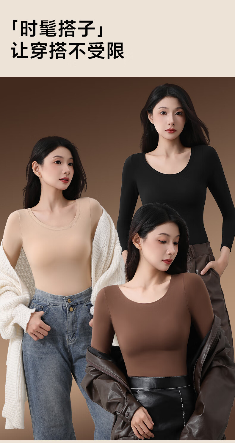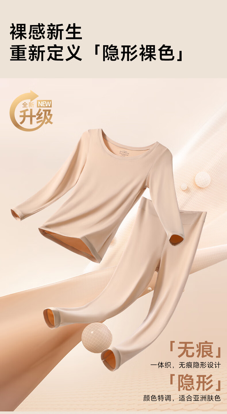 ROVO超薄保暖内衣女亲肤防静电隐形肌底美肤衣发热孕秋衣秋裤套装 可可棕+粉底肤【10A抗菌 适用于5℃~15℃】 L【适用于90-120斤】
