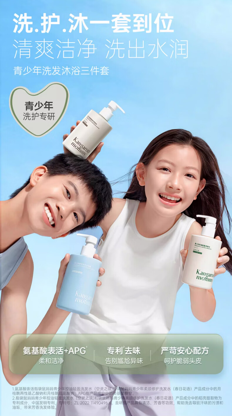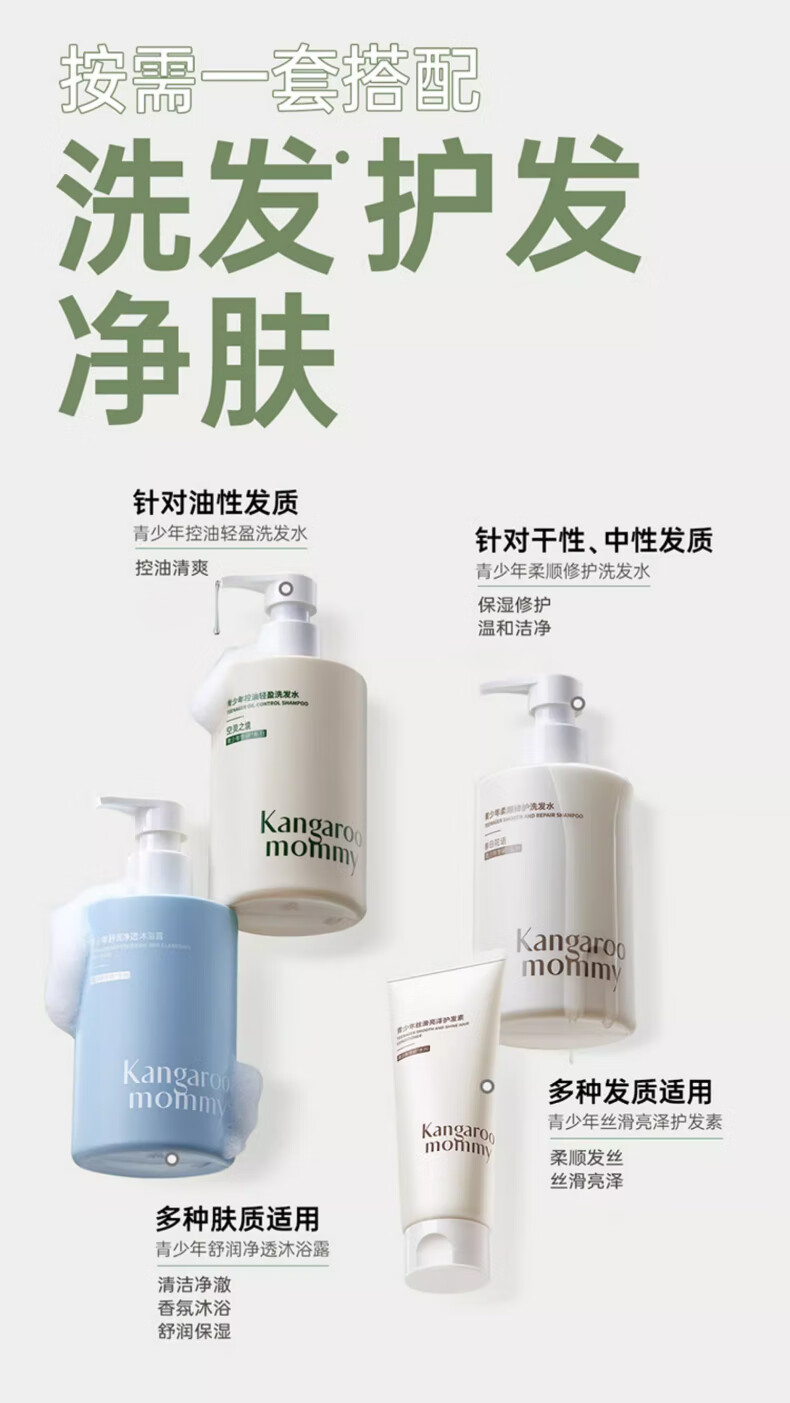 袋鼠妈妈青少年洗发水控油去屑柔顺青春期洗发水 【控油去屑】洗发水大容量