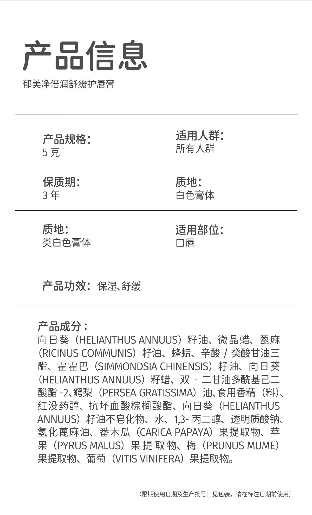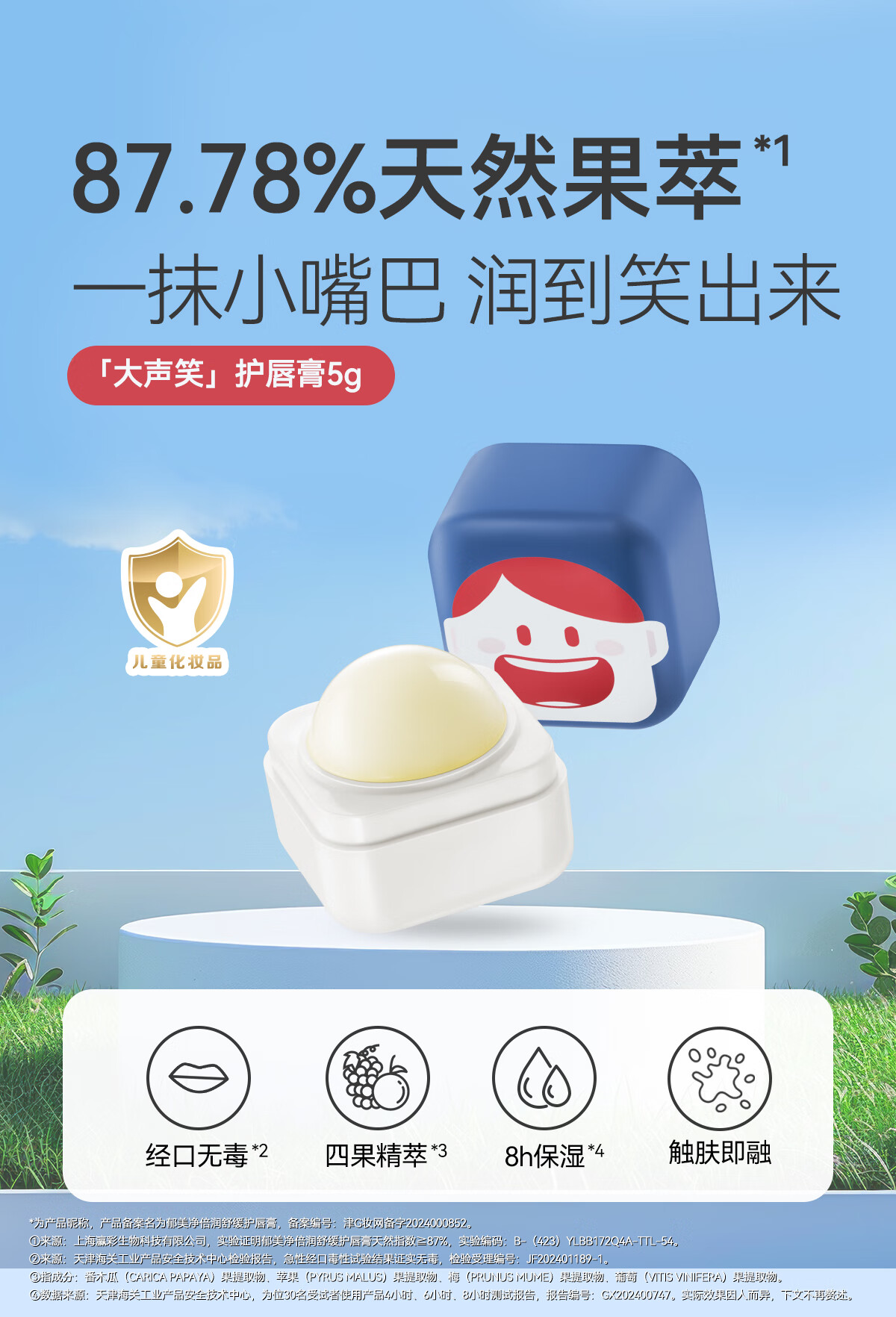 郁美净儿童倍润唇膏5g高保湿滋润嘴唇改善起皮防干裂婴儿唇膏宝宝唇膏