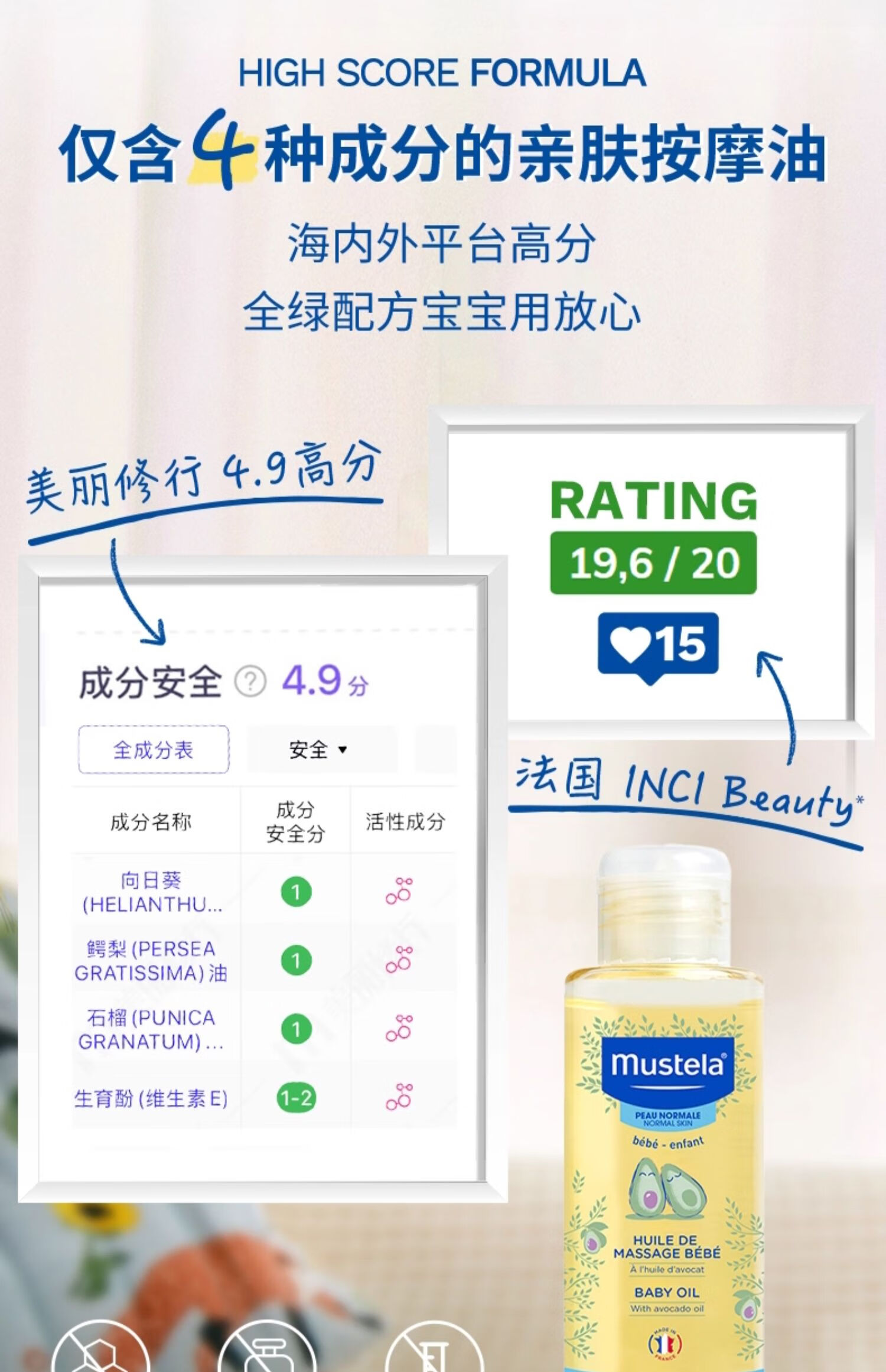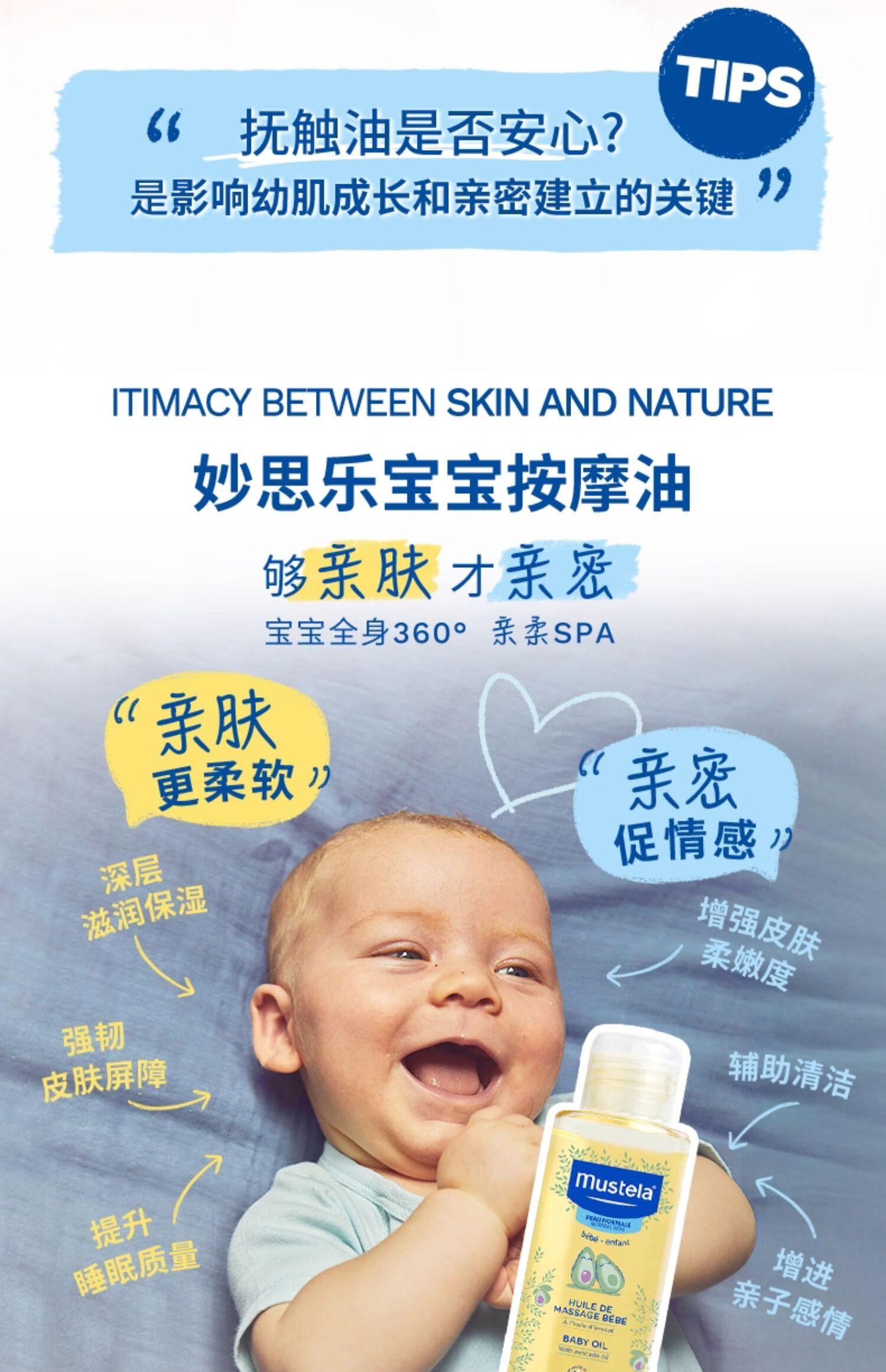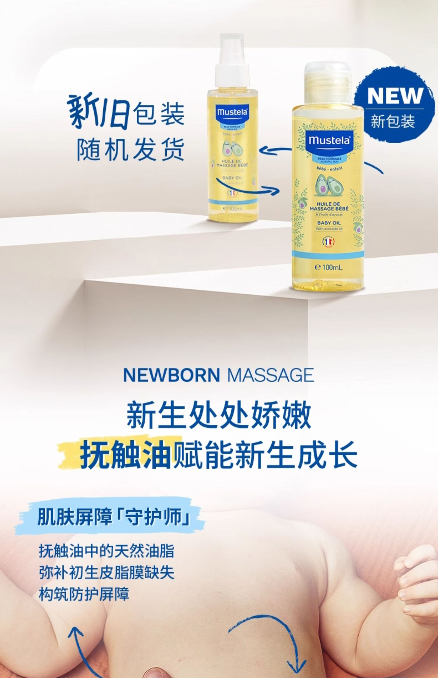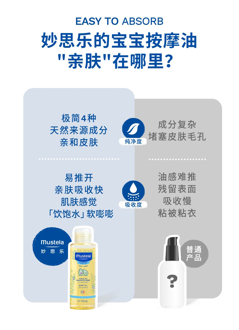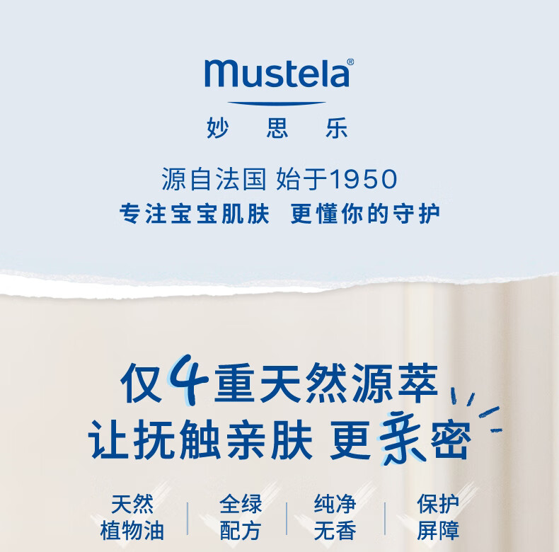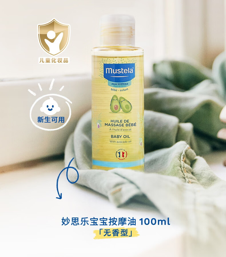 妙思乐(MUSTELA)儿童润肤油宝宝按摩油100ml 新生儿按摩油抚触油无香型 法国进口 【植萃专利】宝宝按摩油100ml