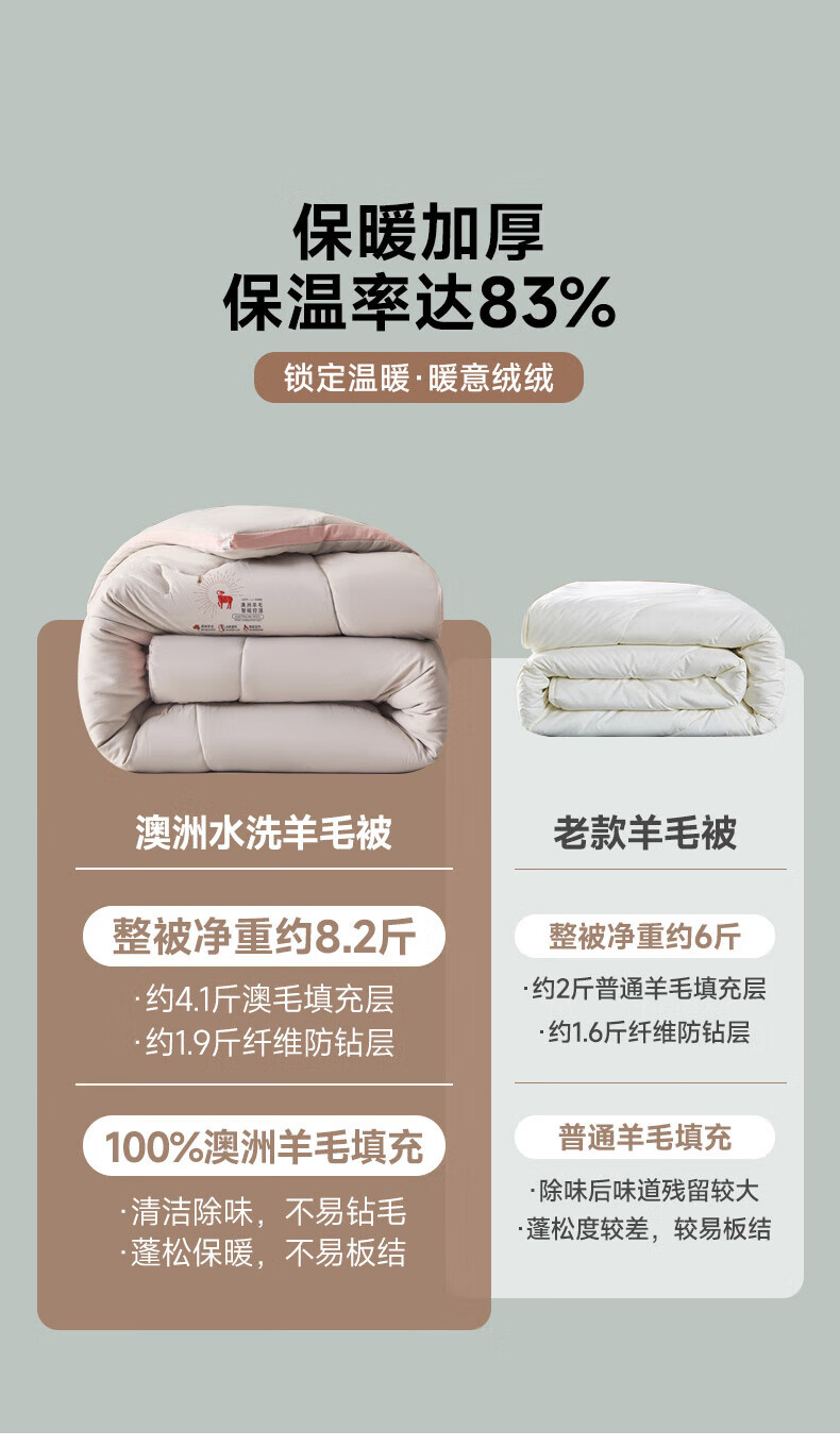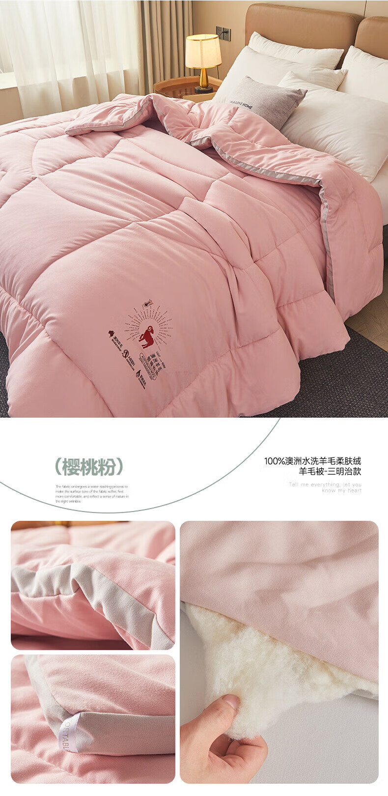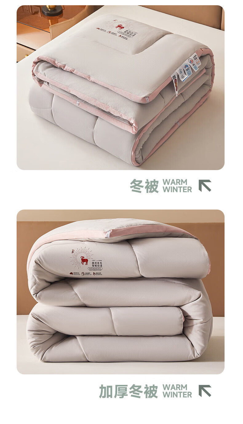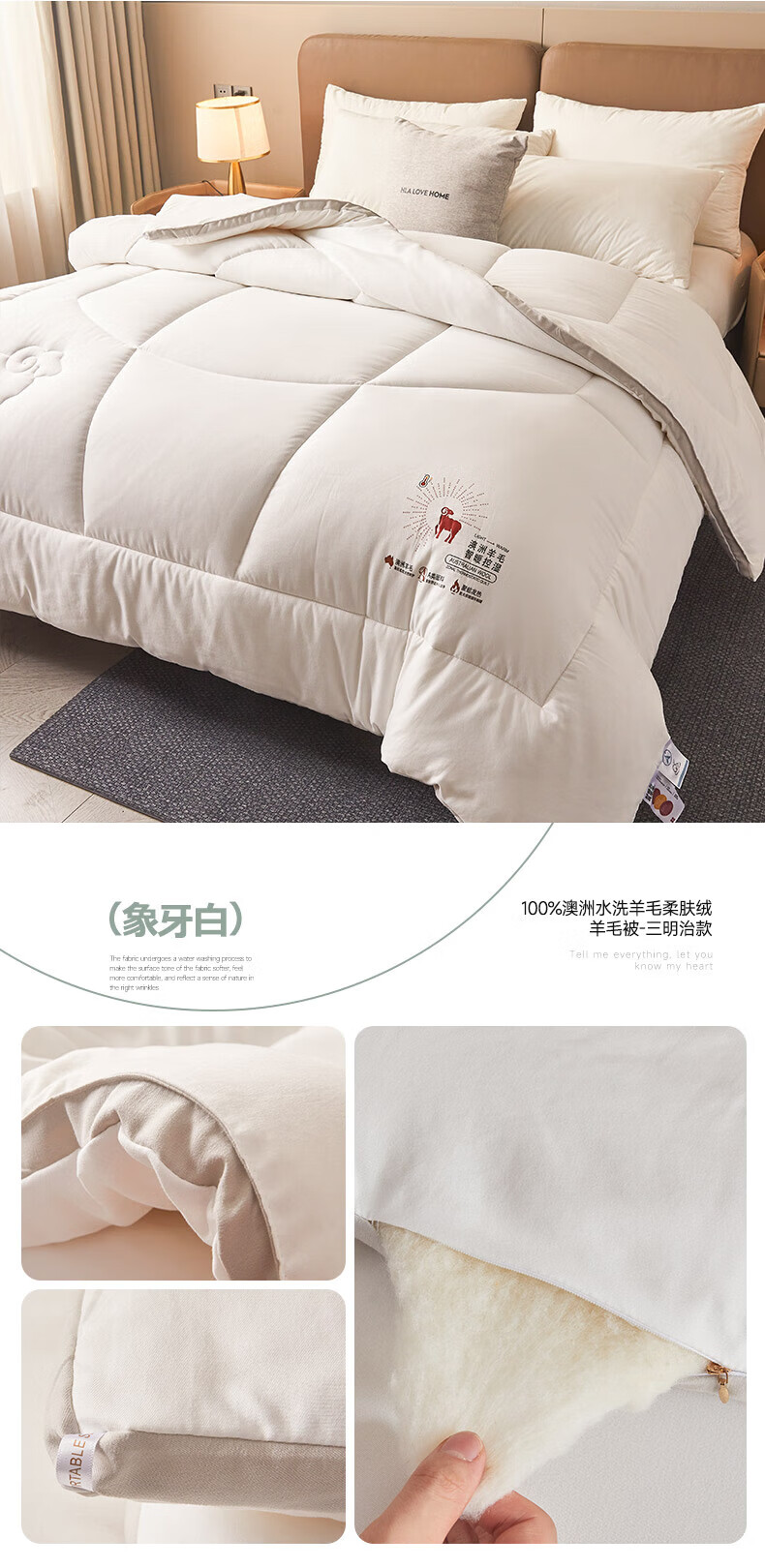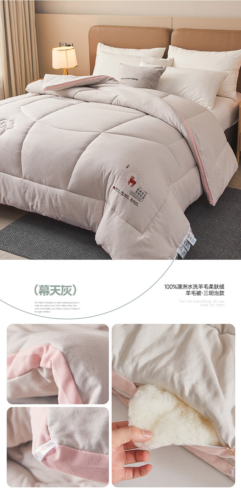 恒源祥羊毛被100澳洲纯羊毛被春秋被8斤冬被芯加厚保暖6斤单人被四季被 幕天灰 220*240cm-10斤厚冬被加厚冬被