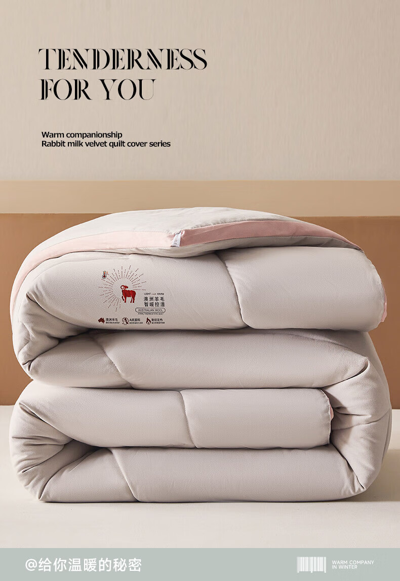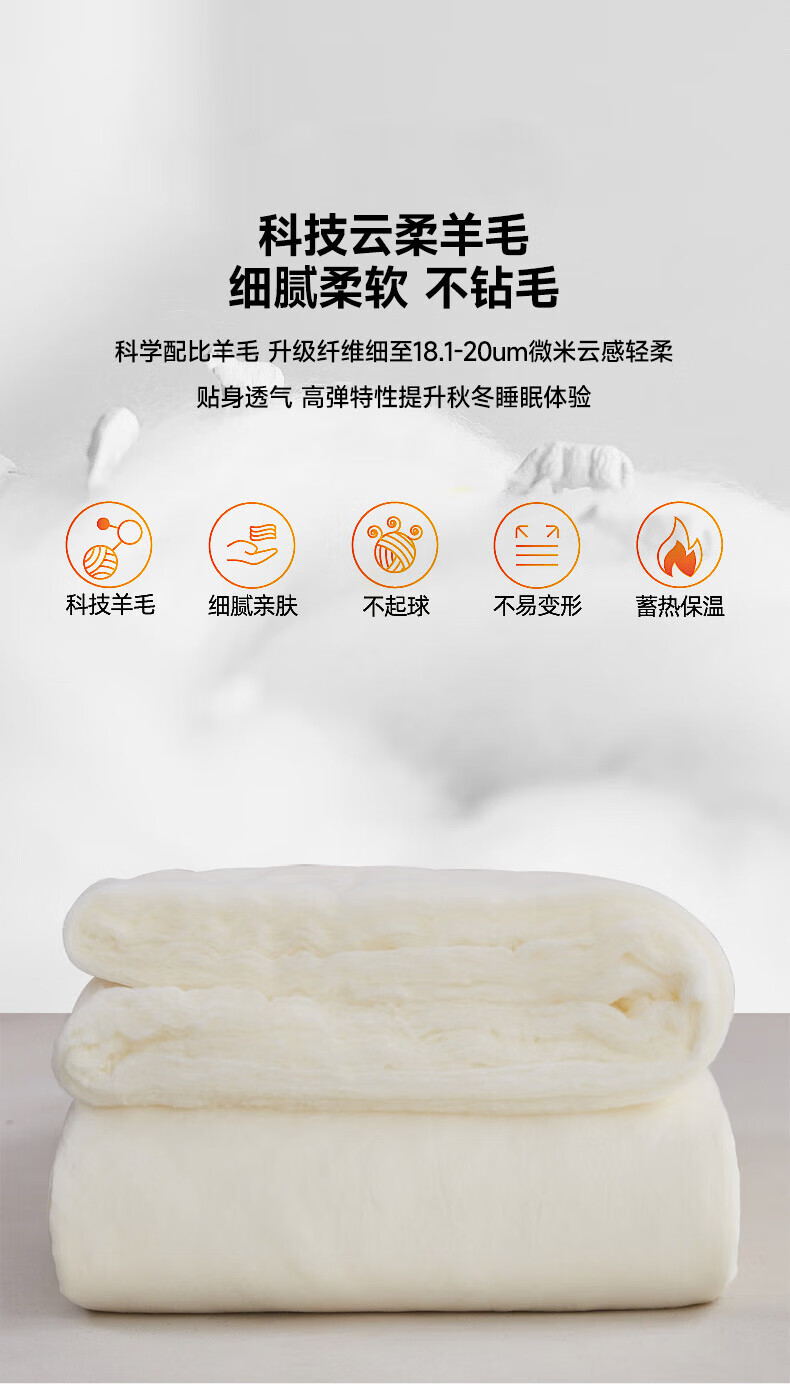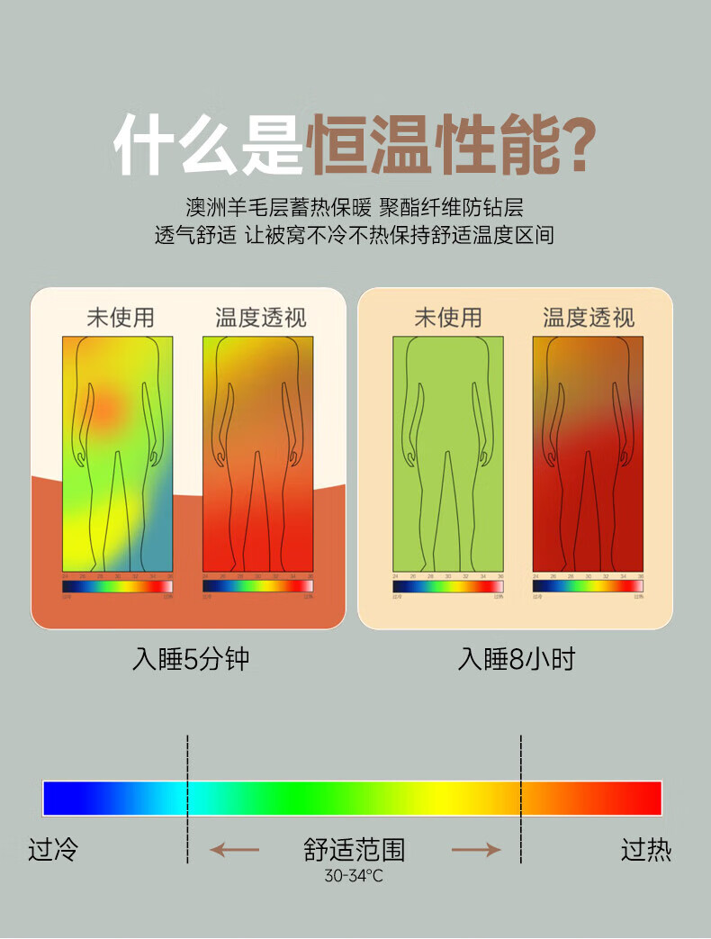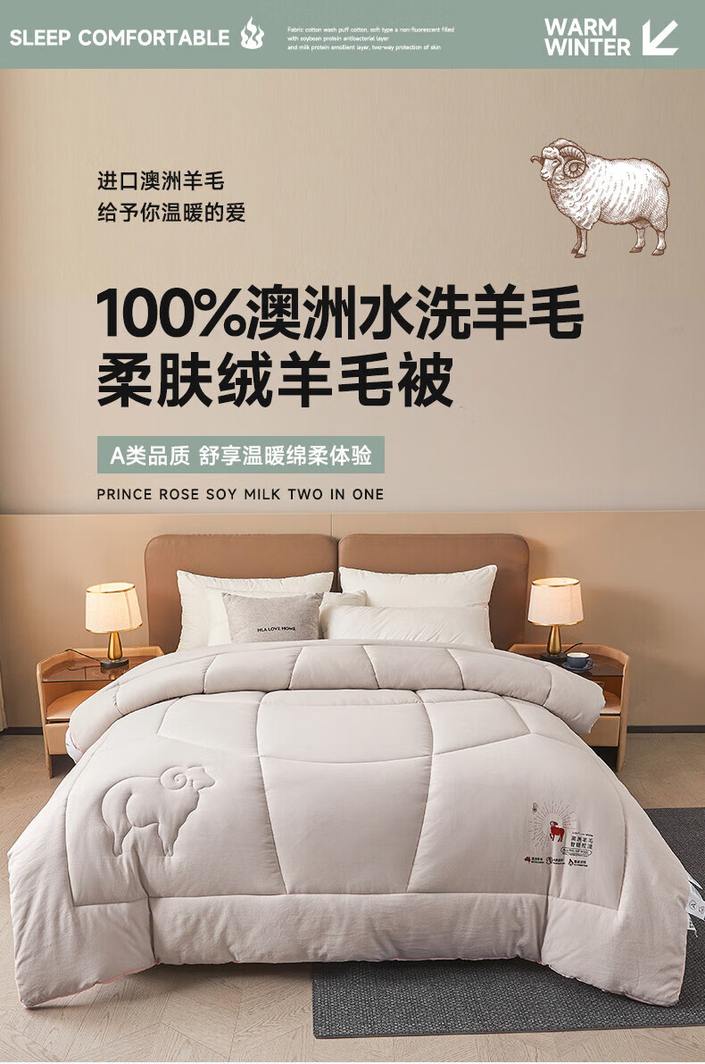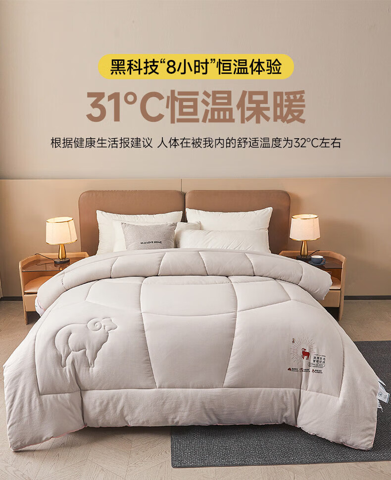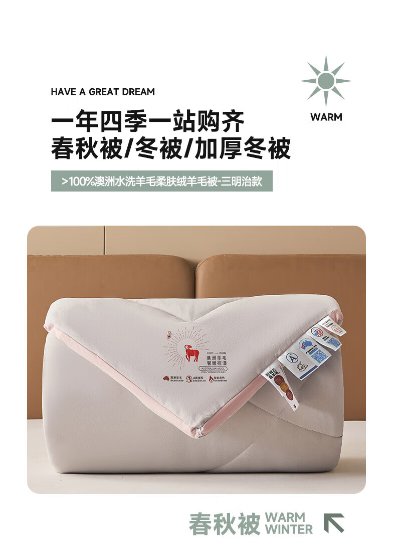 恒源祥羊毛被100澳洲纯羊毛被春秋被8斤冬被芯加厚保暖6斤单人被四季被 幕天灰 220*240cm-10斤厚冬被加厚冬被