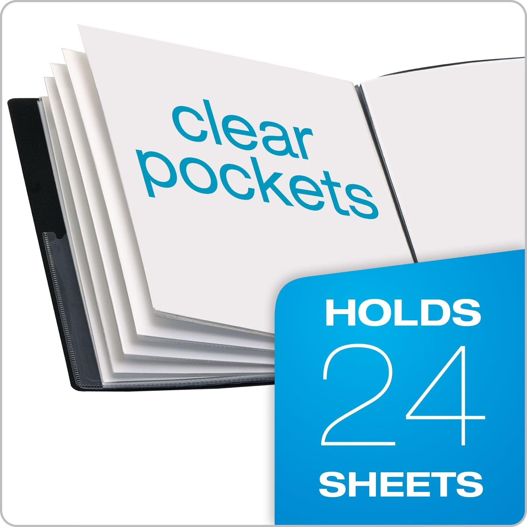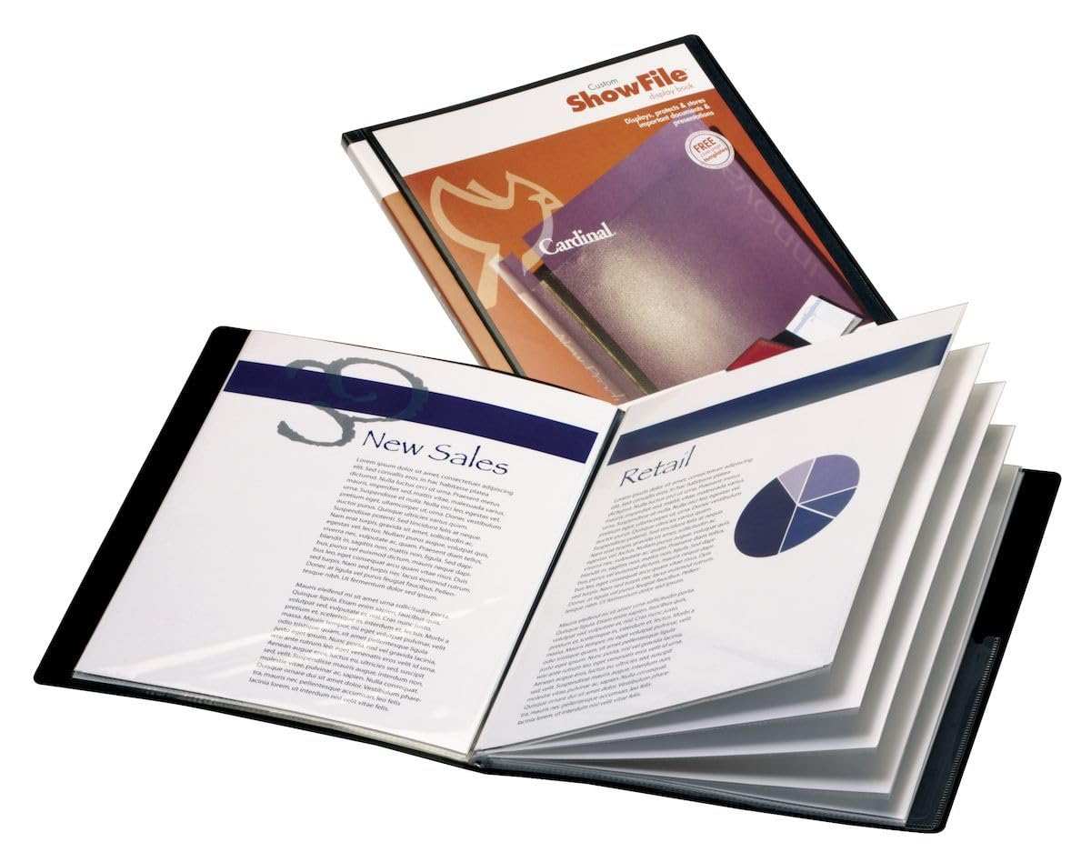 CARDINALCardinal Custom ShowFile 演示书,12 个口袋,可容纳 24 张信纸大小,可定制封面,黑色 (50132CB)