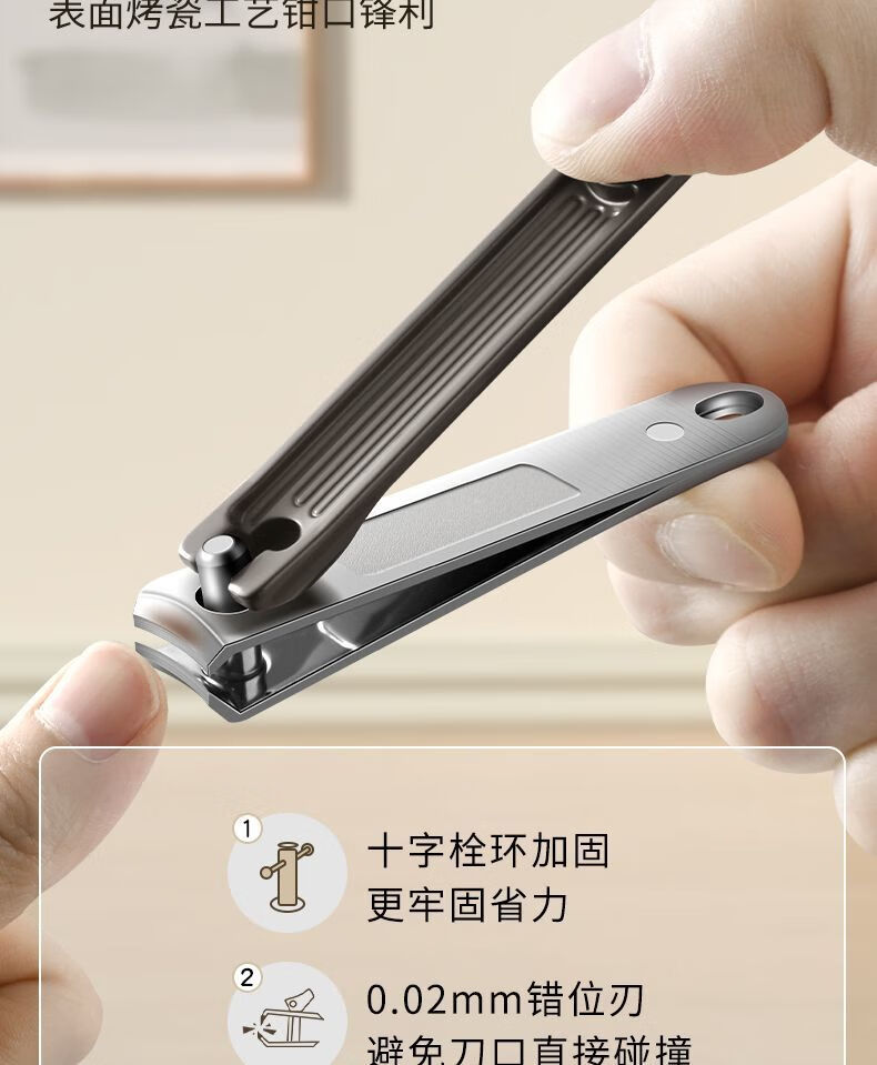 金达日美指甲刀单个家用指甲剪甲沟炎专用指甲刀斜口指甲钳指甲套装工具 雅致银-大号平口指甲刀